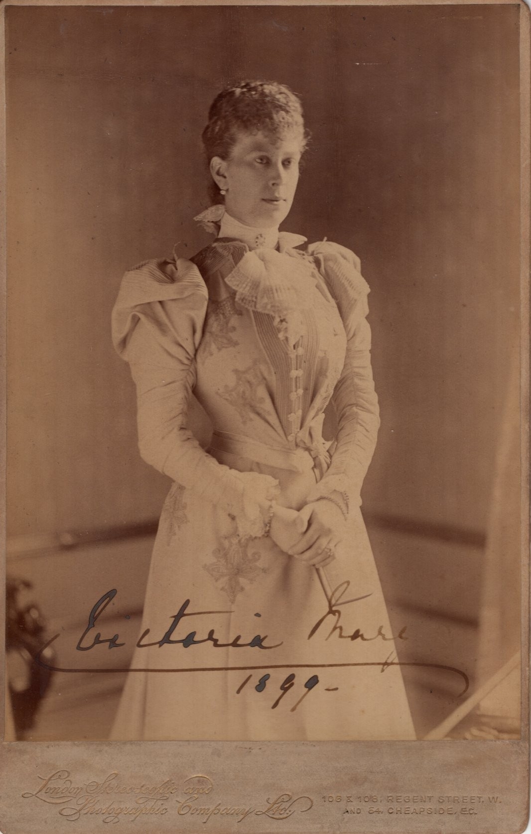 Queen Mary, wife of King George V signed 8x5.5 inch photograph dated 1899 Mary of Teck (Victoria Mary Augusta Louise Olga Pauline Claudine Agnes; 26 May 1867 24 March 1953) was Queen of the United Kingdom and the British Dominions, and Empress of India, from 6 May 1910 until 20 January 1936 as the wife of King George V
