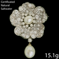ANTIQUE CERTIFICATED NATURAL SALTWATER PEARL AND DIAMOND FLORAL BROOCH,