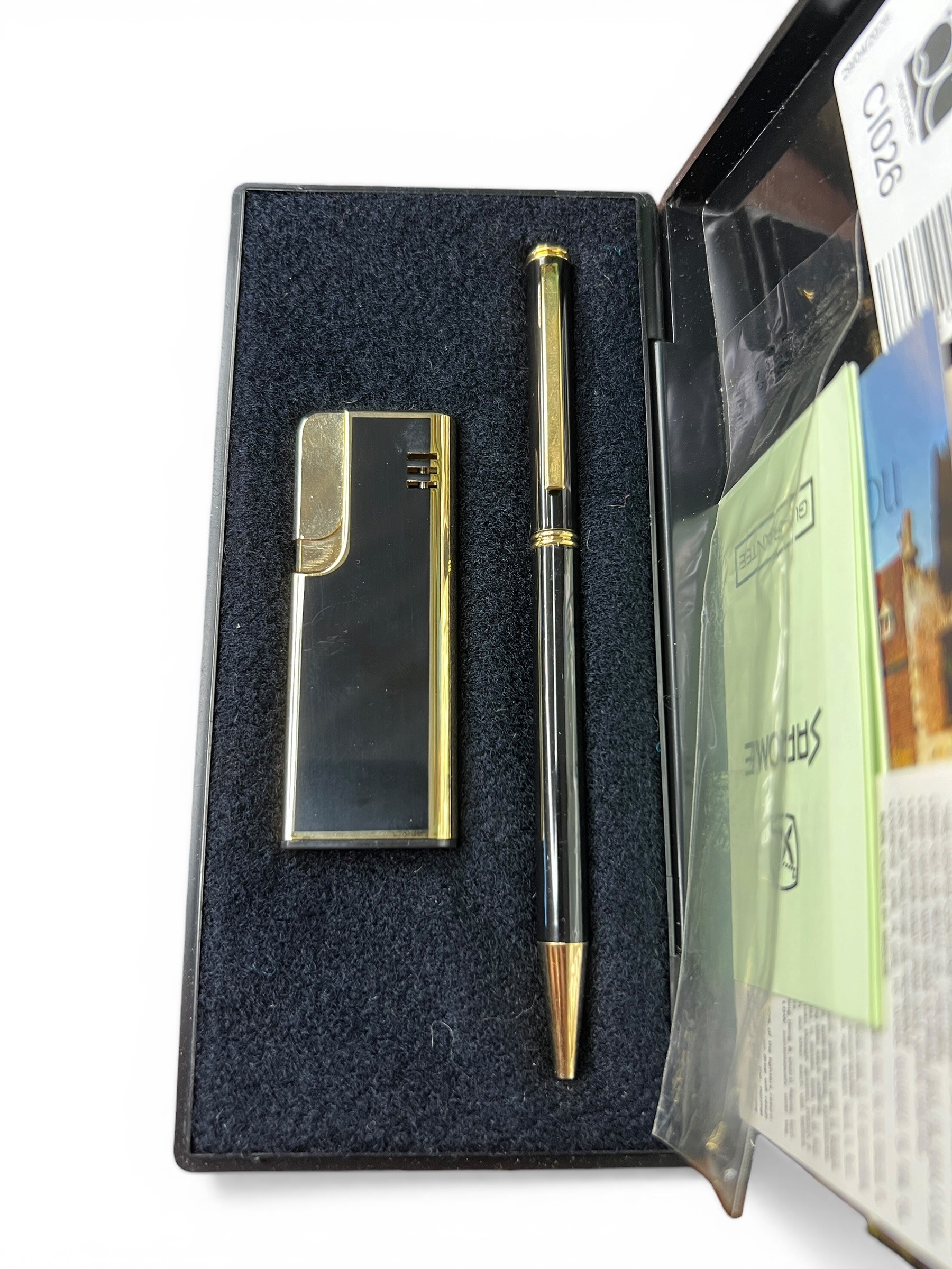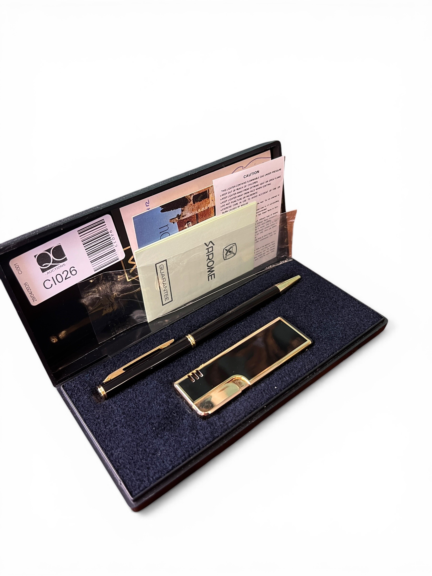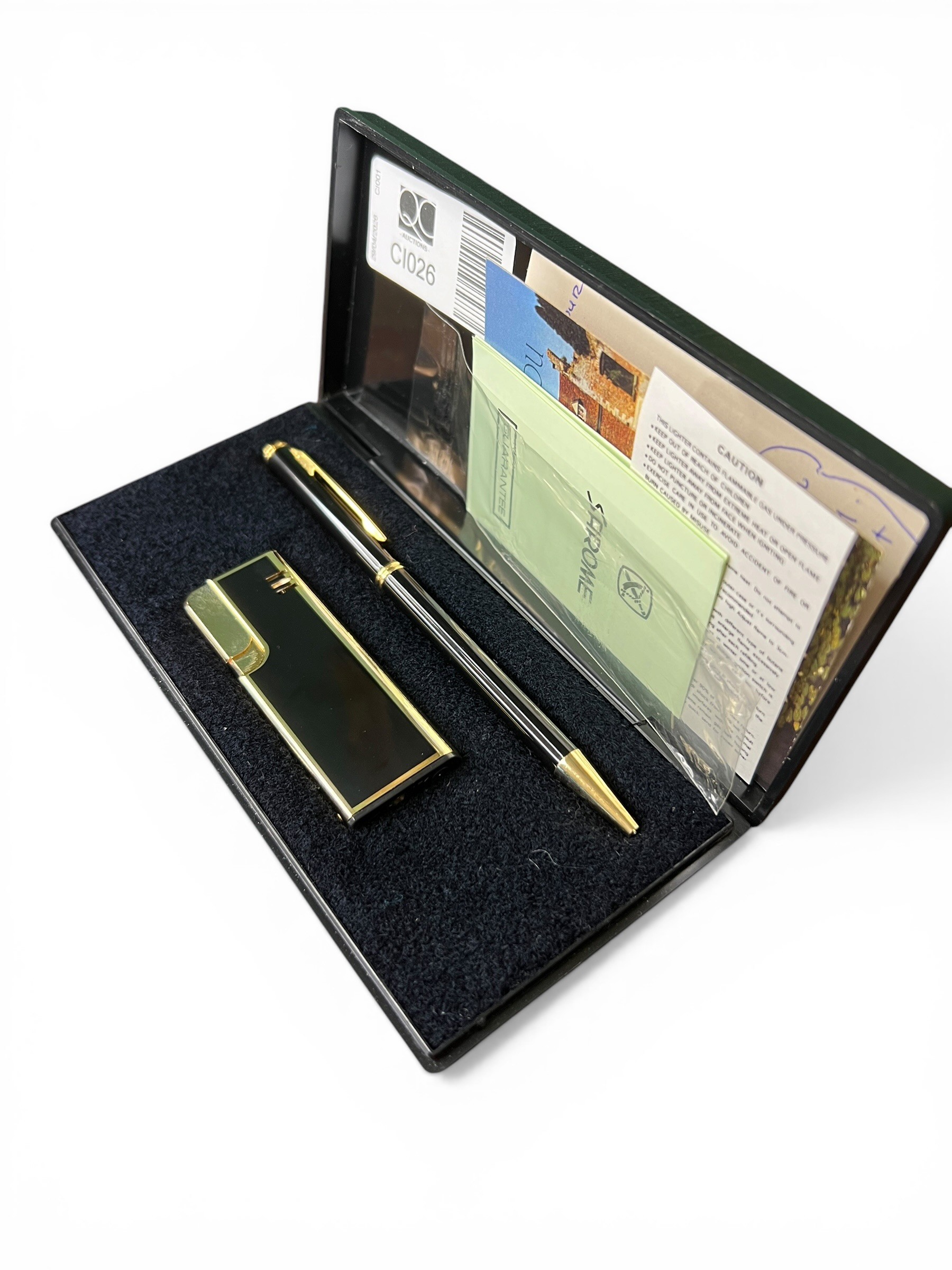 Cased Chrome Ballpoint Pen and Cigarette Lighter in Original...