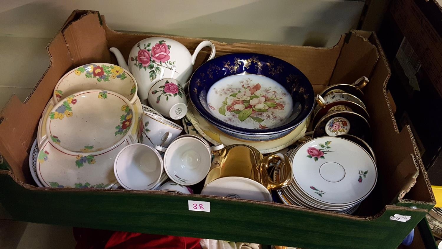 Box of Assorted China Including Royal Doulton, Aynsley, Floral etc.