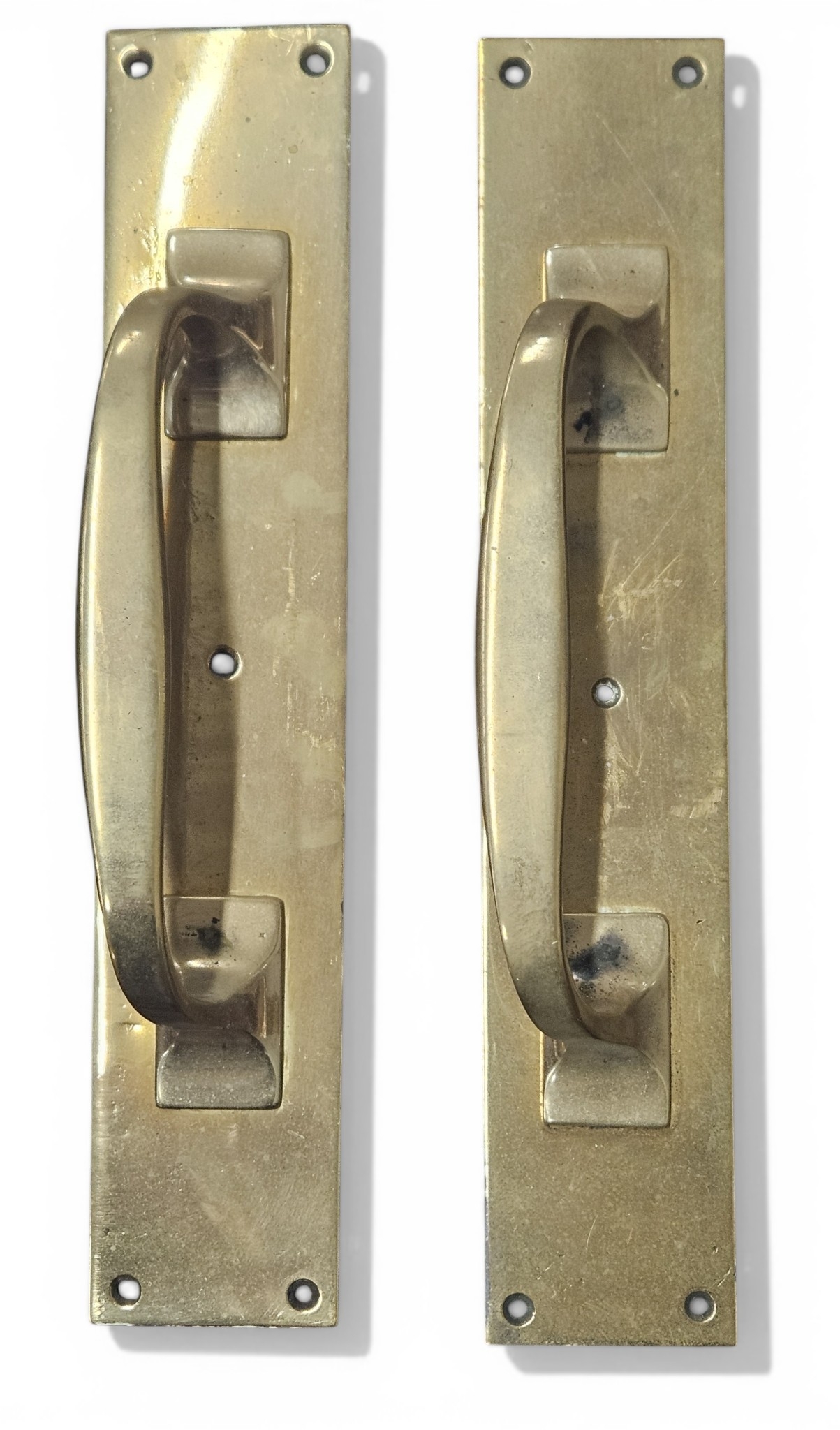 A good pair of early 20th Century heavy Brass/Bronze door Handles. L 30 cm approx.