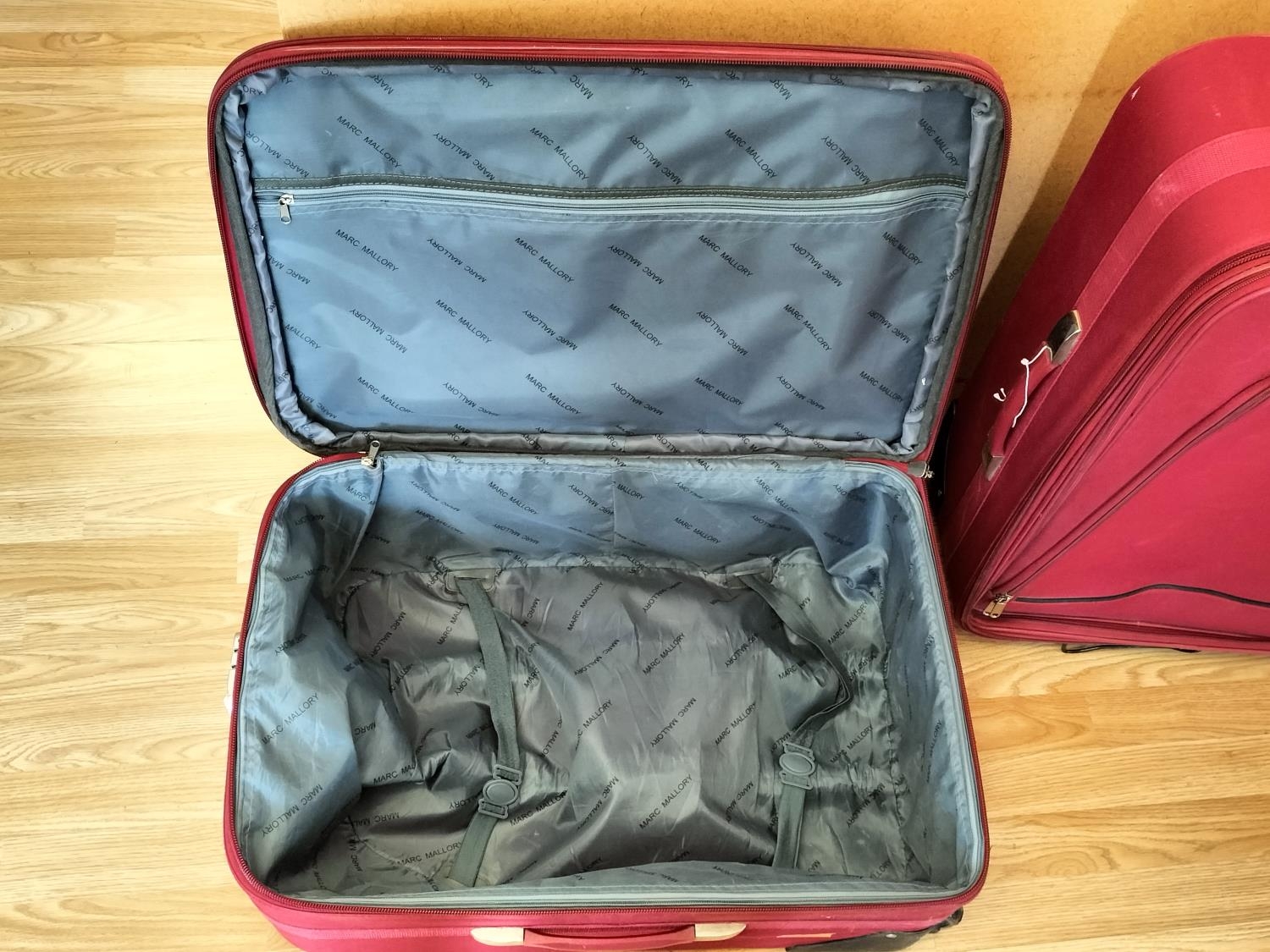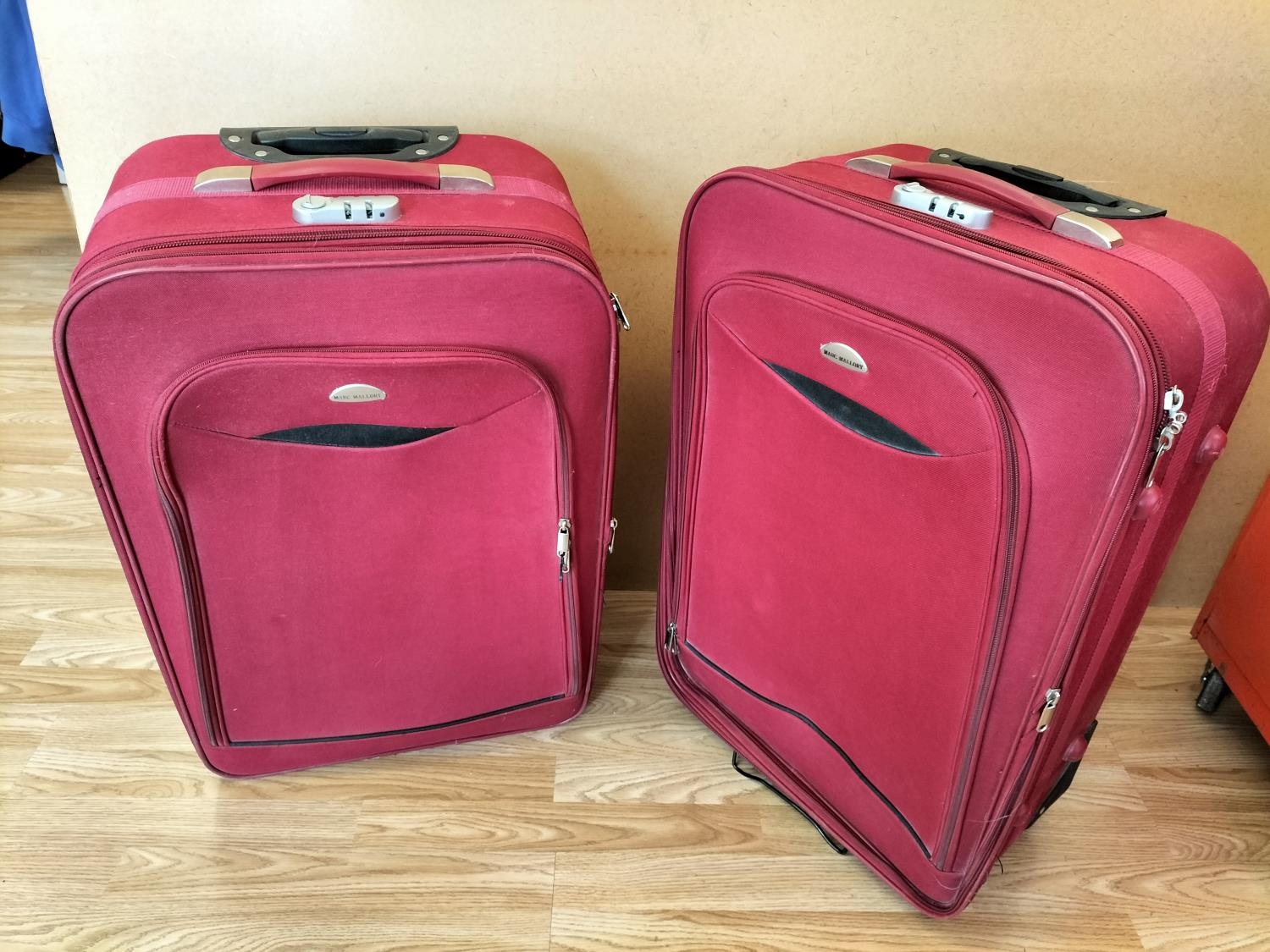 2 x Red Suitcases by Marc Mallory with Telescopic Handles and Wheels. 67cm x 43cm x 29cm. Collection Only.