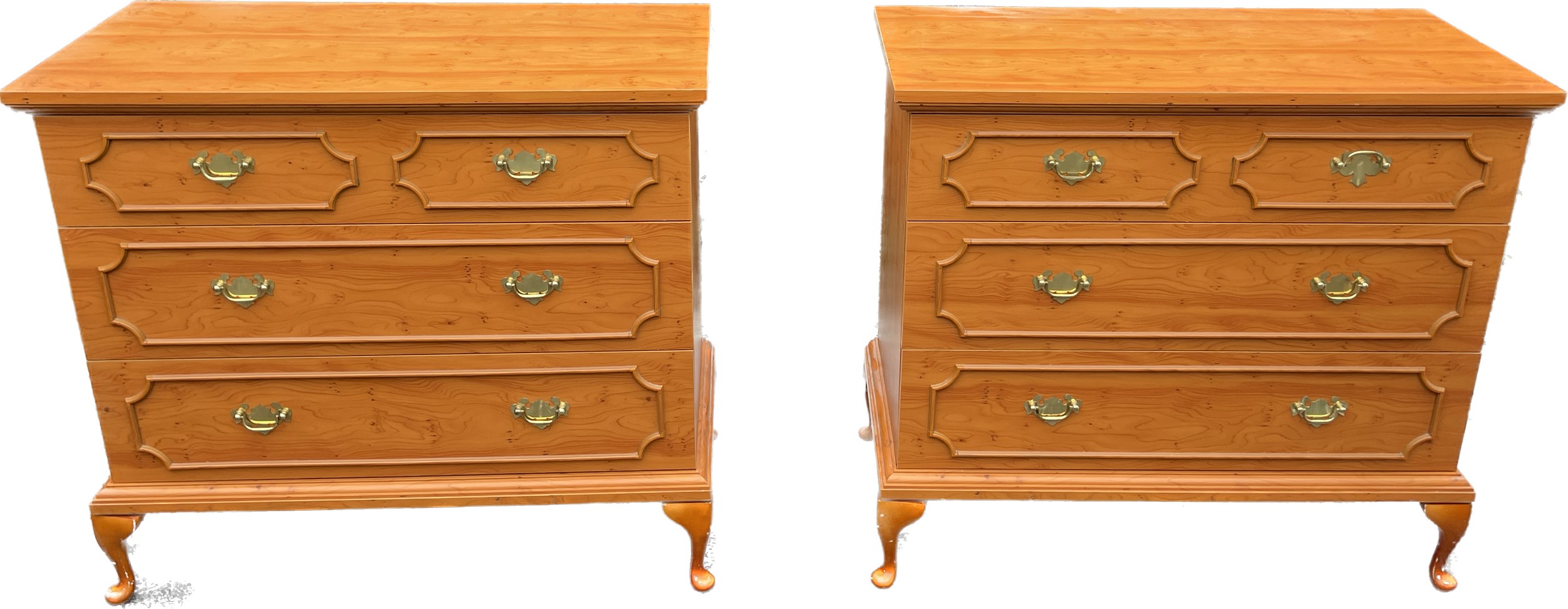 Pair of three drawer small chests measures approx 28 inches tall by 32 inches wide and 16 inches depth