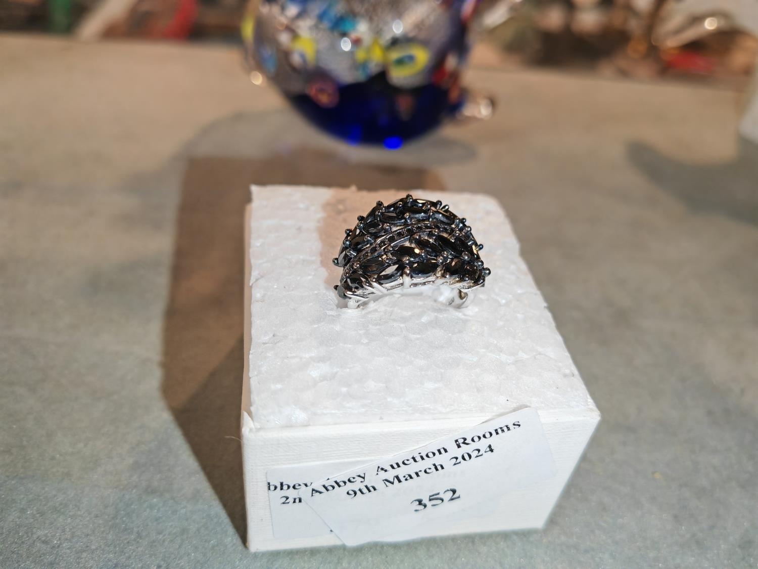Silver Large Ring With Black Stone Cluster Ring Size P