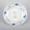 A CHINESE BLUE AND WHITE PORCELAIN DISH bearing a six-chara...