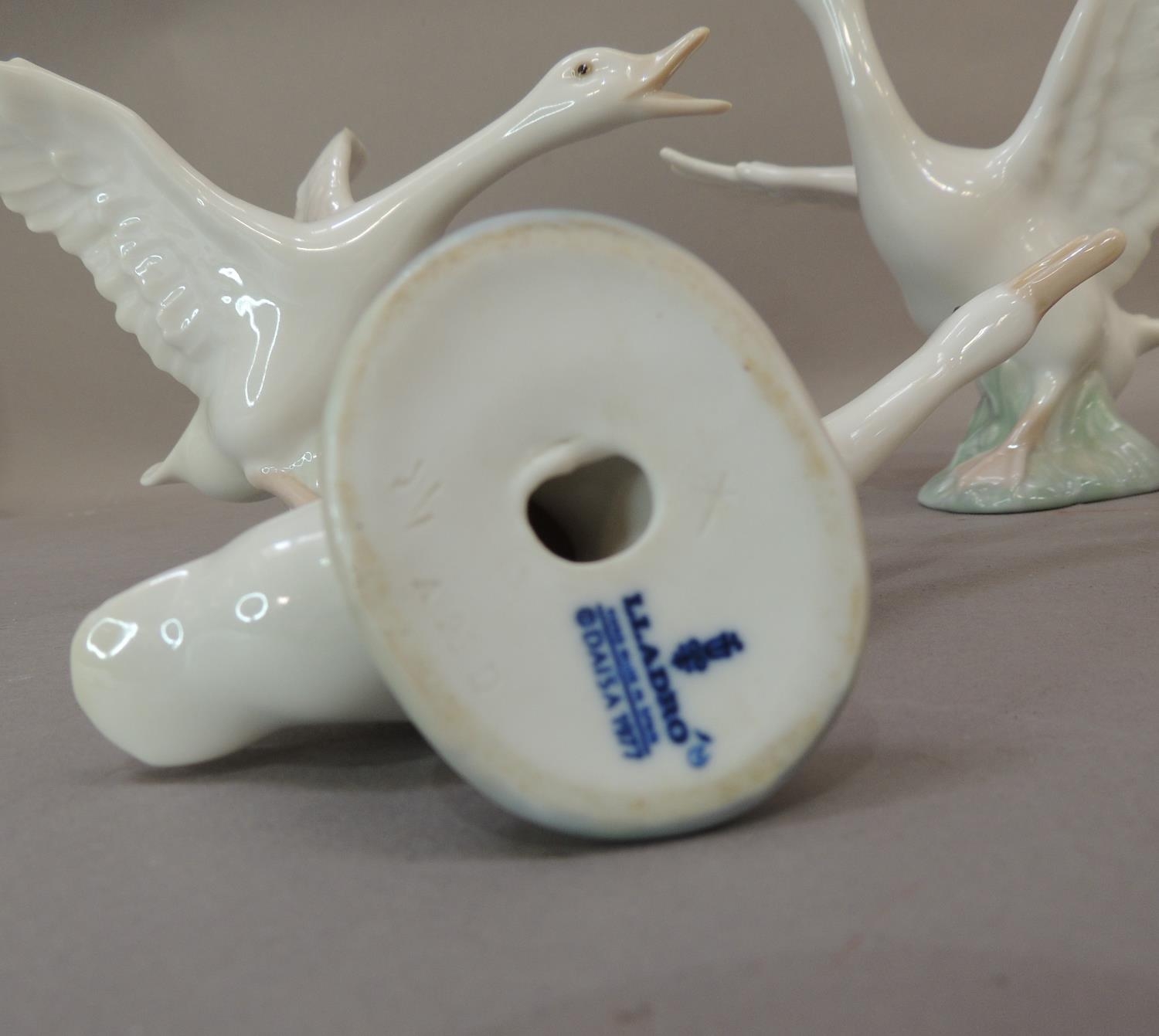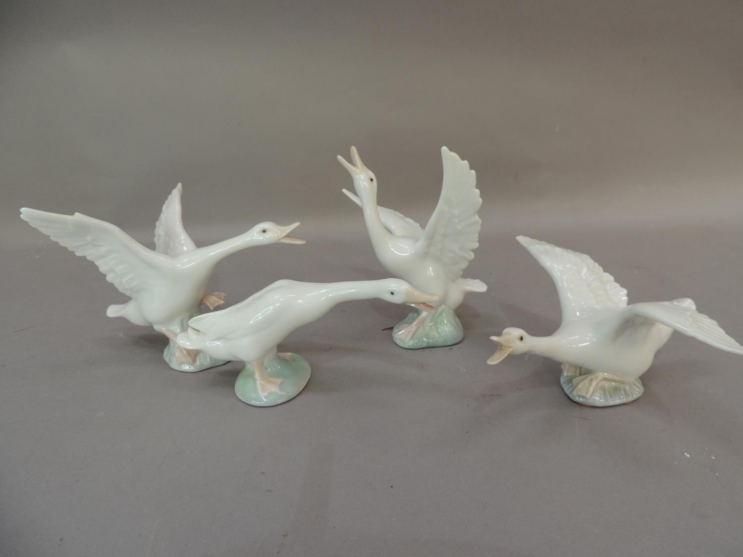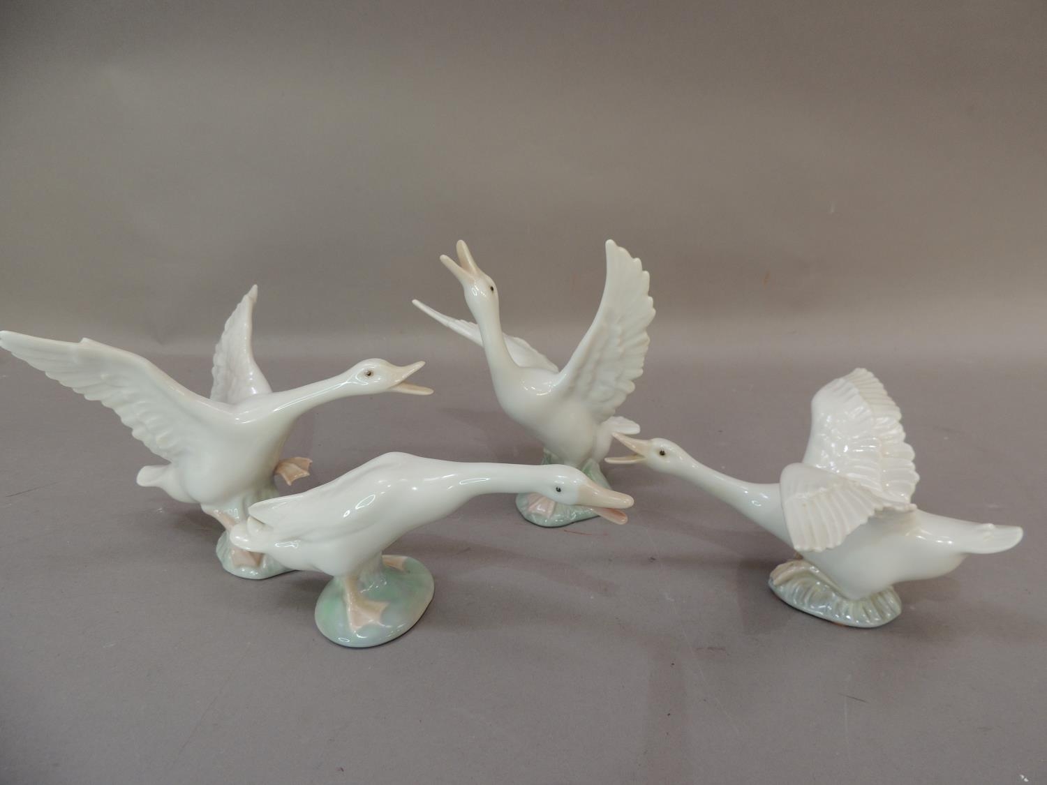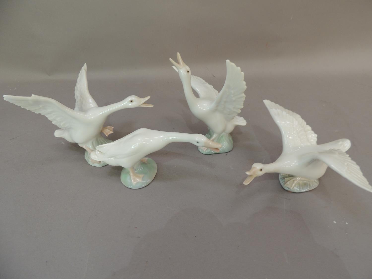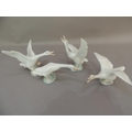 Four Lladro porcelain goose figures, various sizes