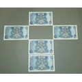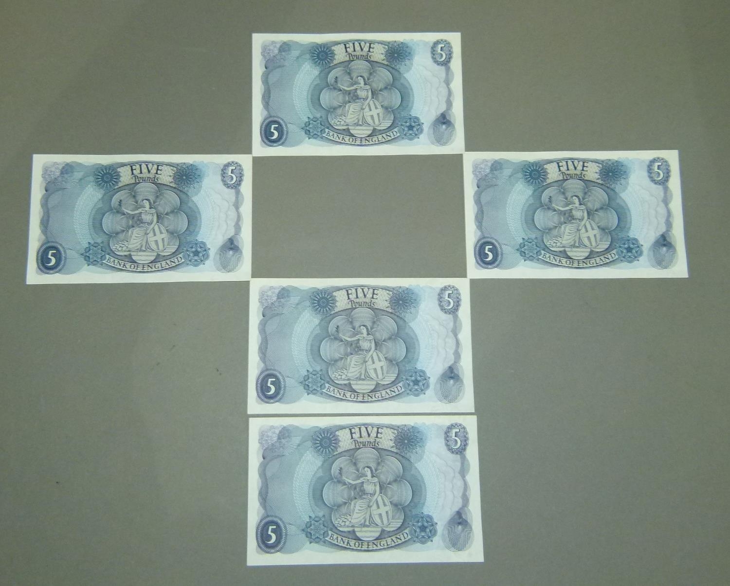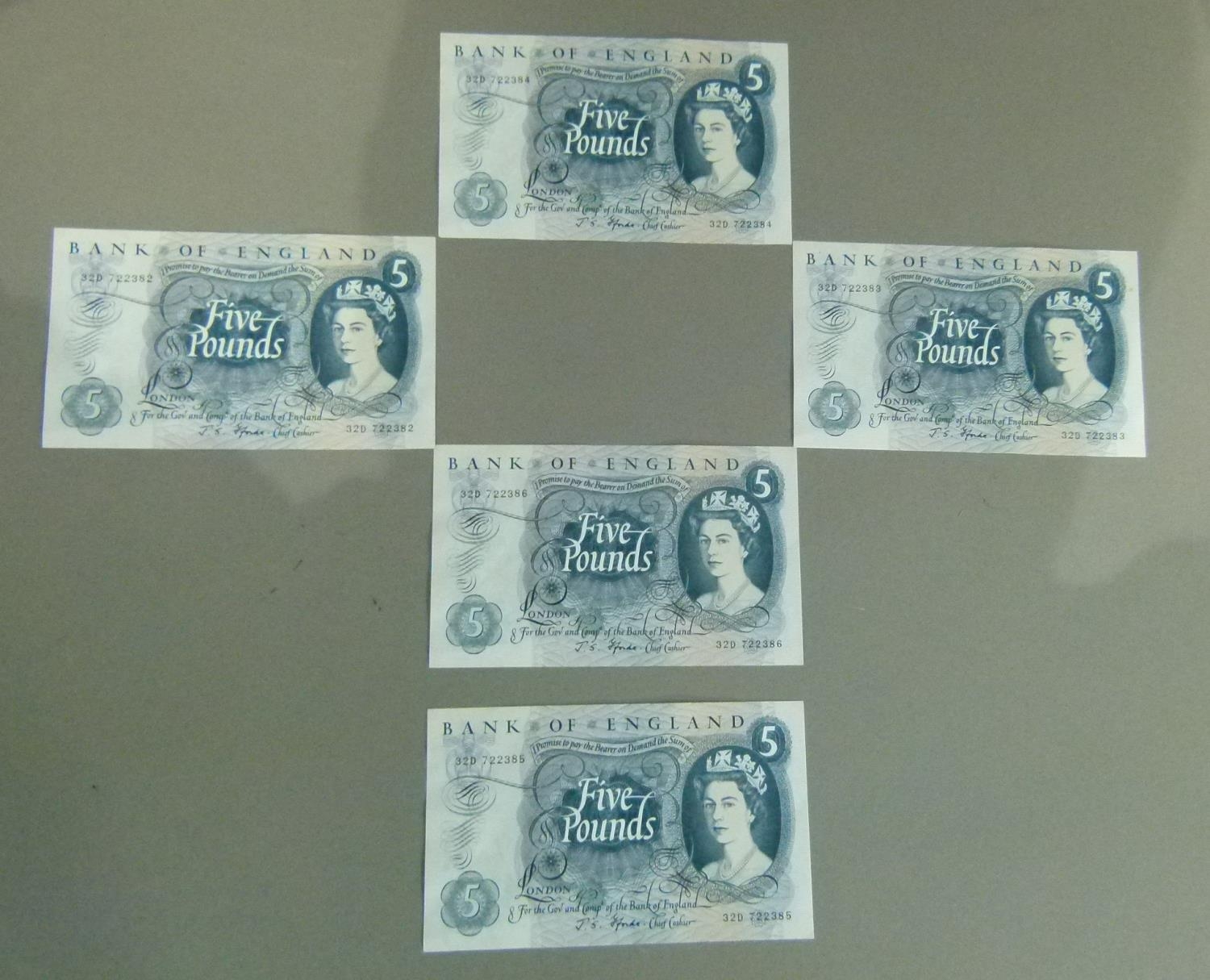 Bank of England 5 x five pound notes J.S Fforde consecutively numbered A.UNC