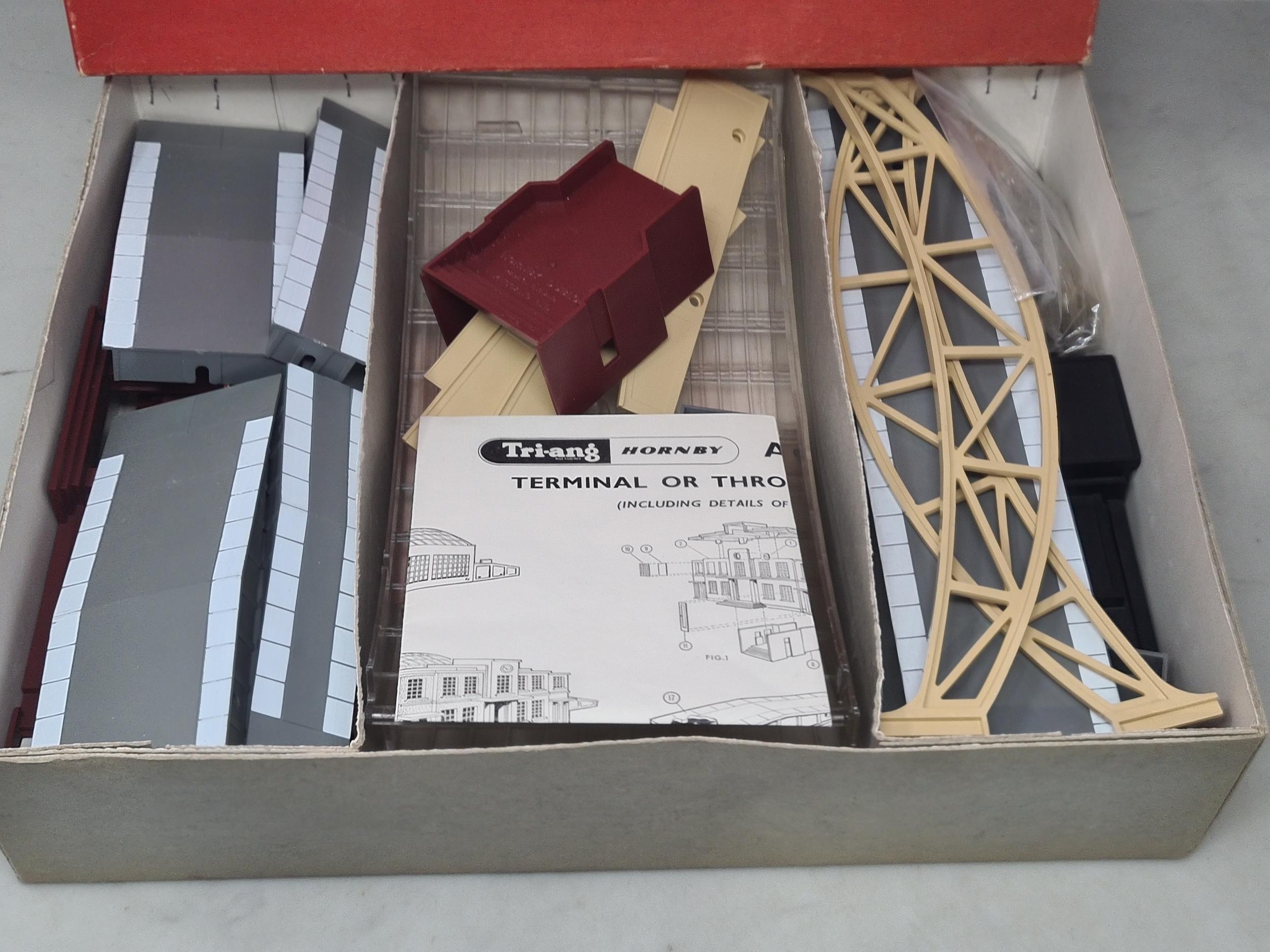 A boxed Triang Hornby 5083 Terminal Station, contents complete and appear unused, M, plastic packets are later. Triang Hornby over sticker box Ex plus with internal card dividers