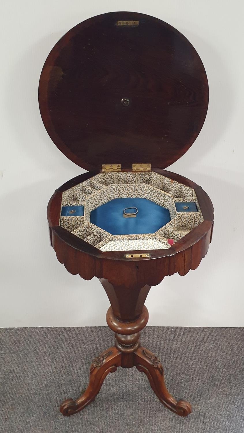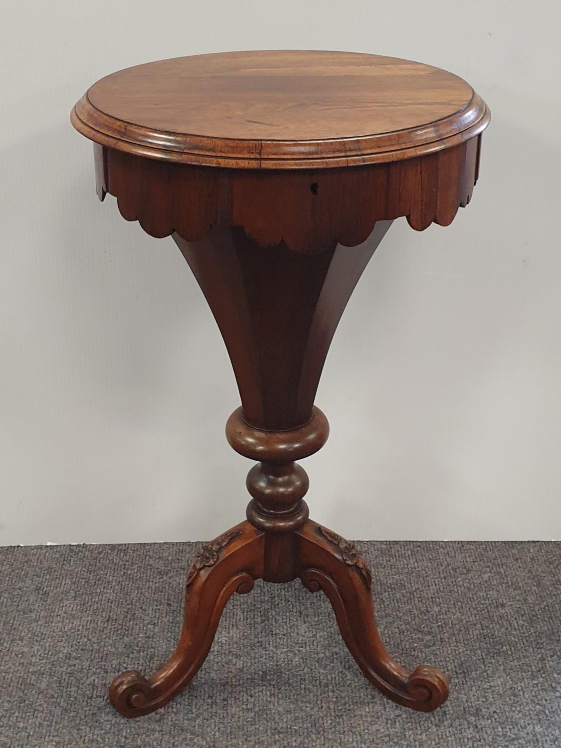 Mahogany Trumpet Sewing Box, H:73 x D:43cm