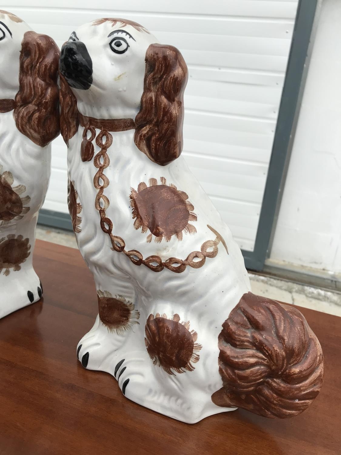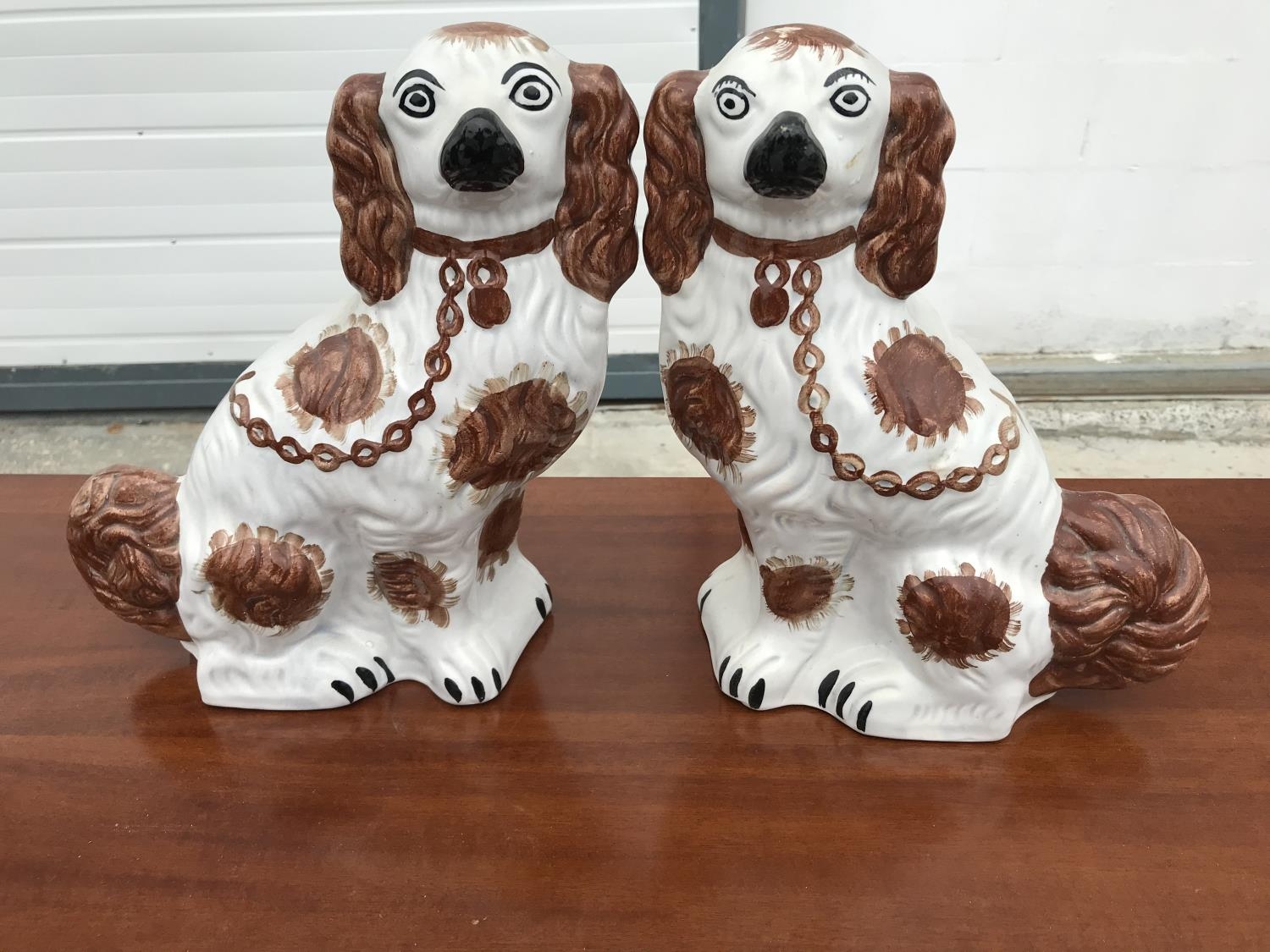 Vintage Pair of Large Staffordshire Porcelain Dog Figurines (29 H. x 50 W. x 10cm D.)