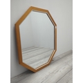 This is an octagonal wall mirror featuring a sleek wooden frame. The mirror showcases a modern design with clean lines and is suitable for various interior settings. It appears lightweight and easily mountable, making it a versatile decorative piece.