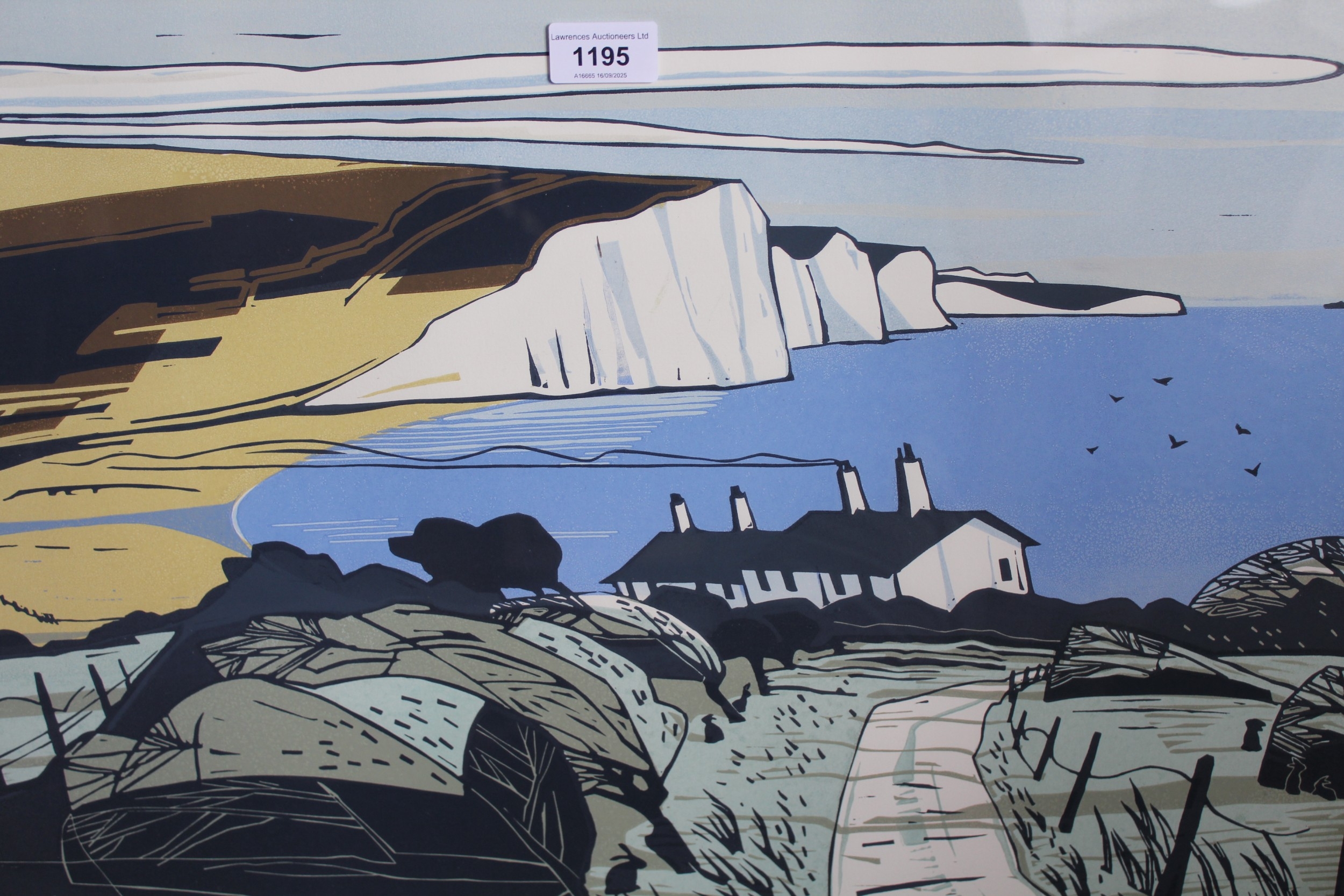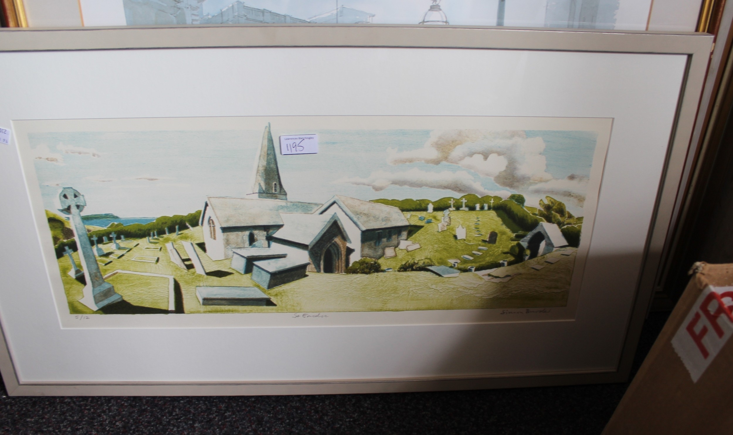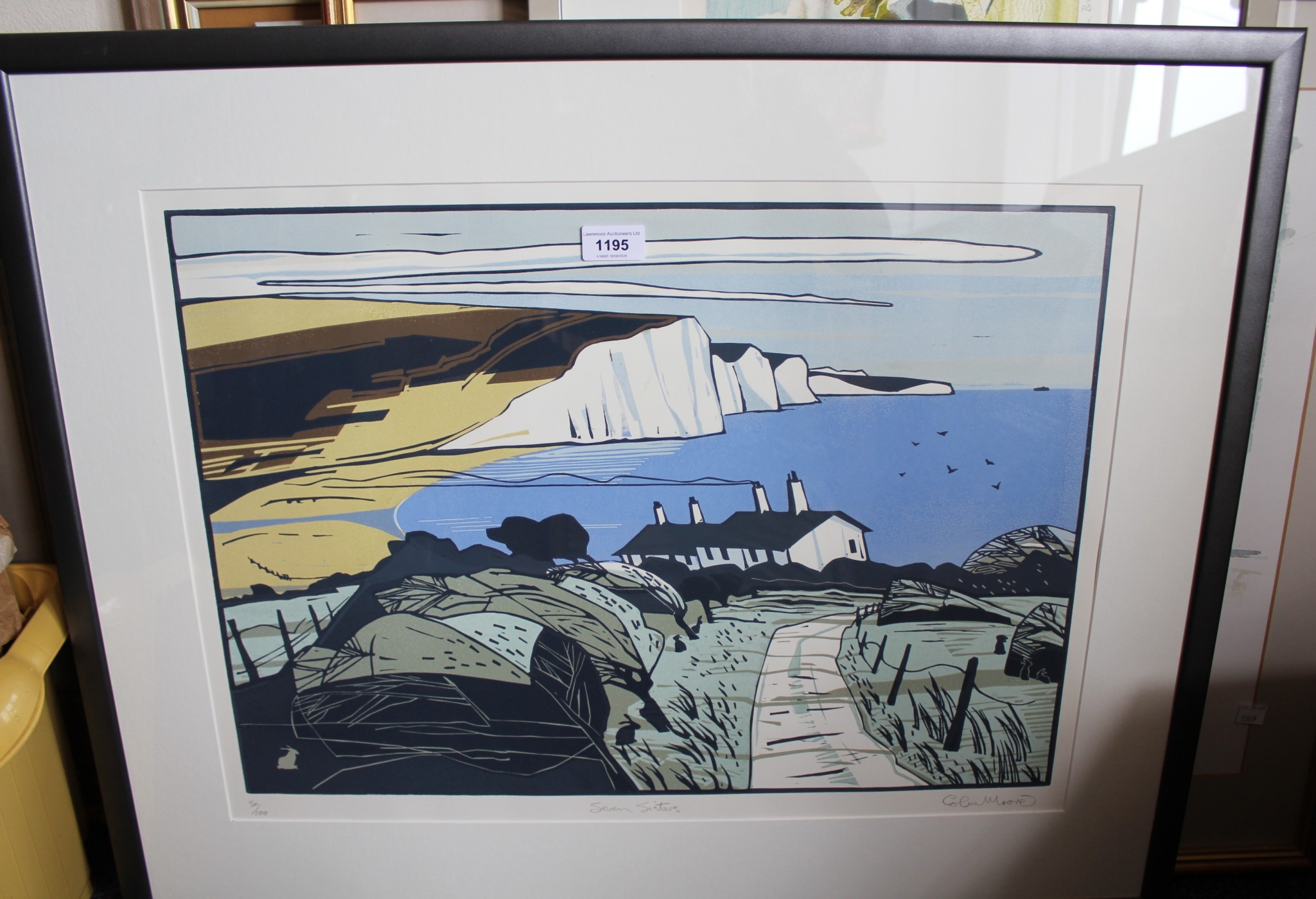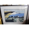 Colin Moore, signed colour print ' Seven Sisters ', No. 30 of 100, 41 x 58.5cm approximately, framed, together with another, view of St. Enodoc Church, Cornwall, signed Simon Burden? No. 5 of 12, together with three other various prints