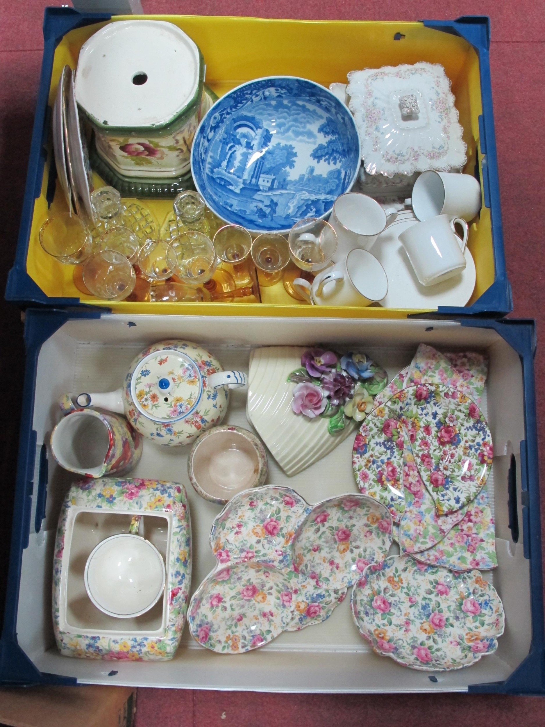 Spode Italian Bowl, Queens China coffee cups and saucers, Sylvac floral Wall pocket, chintz china etc:- Two Boxes.