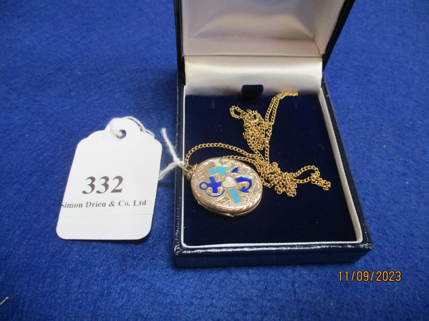 An antique 9 carat gold sweetheart cross and anchor enamelled pendant and chain