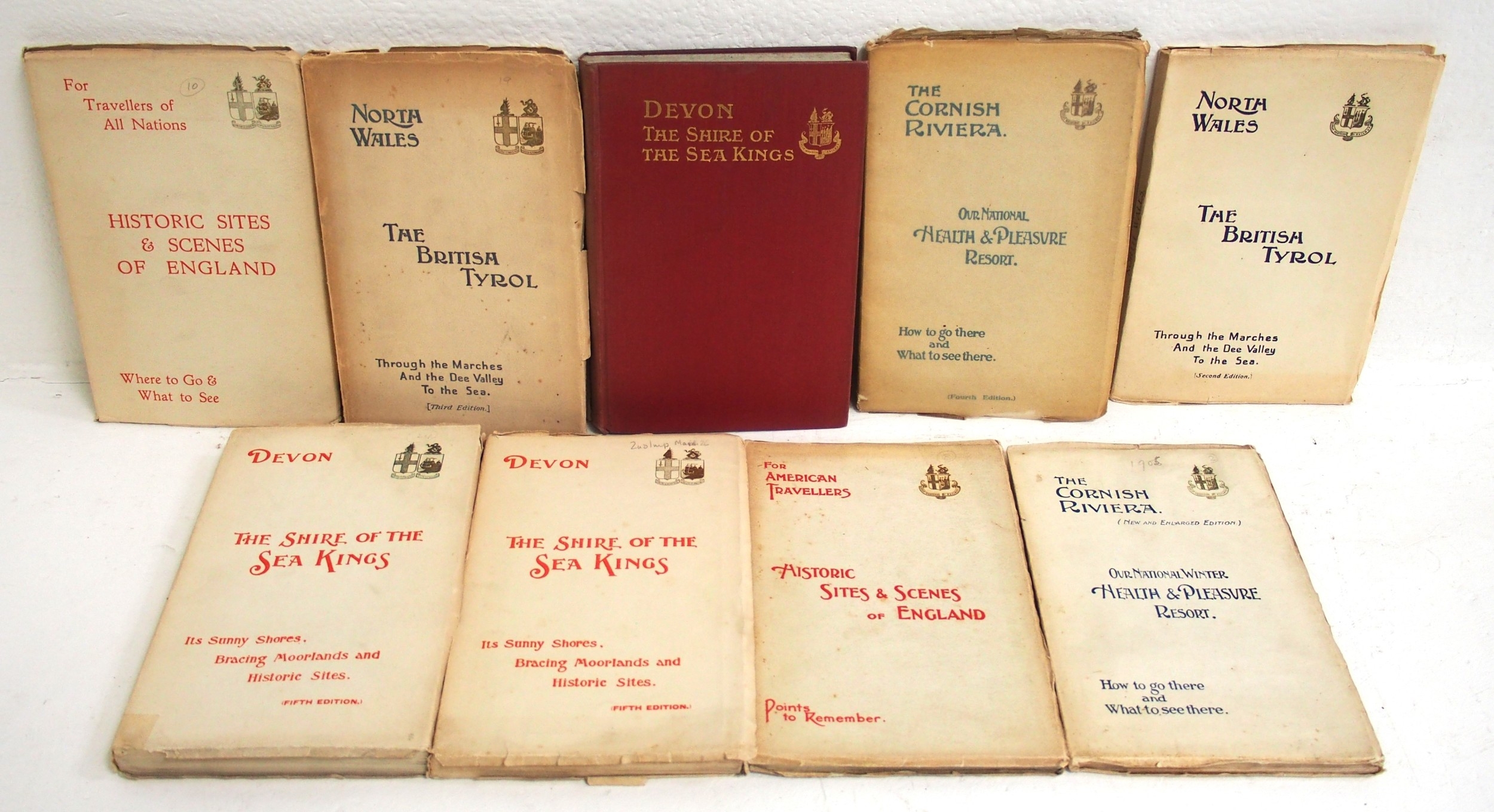 Good collection of GWR travel/area books including Historic sites of England (all nations & Americans), Cornish Riviera (2), Devon (3),North Wales, one hardbound, all in very reasonable condition. (9). (B1X) (Dispatch by Mailboxes/Collect from Banbury Depot)