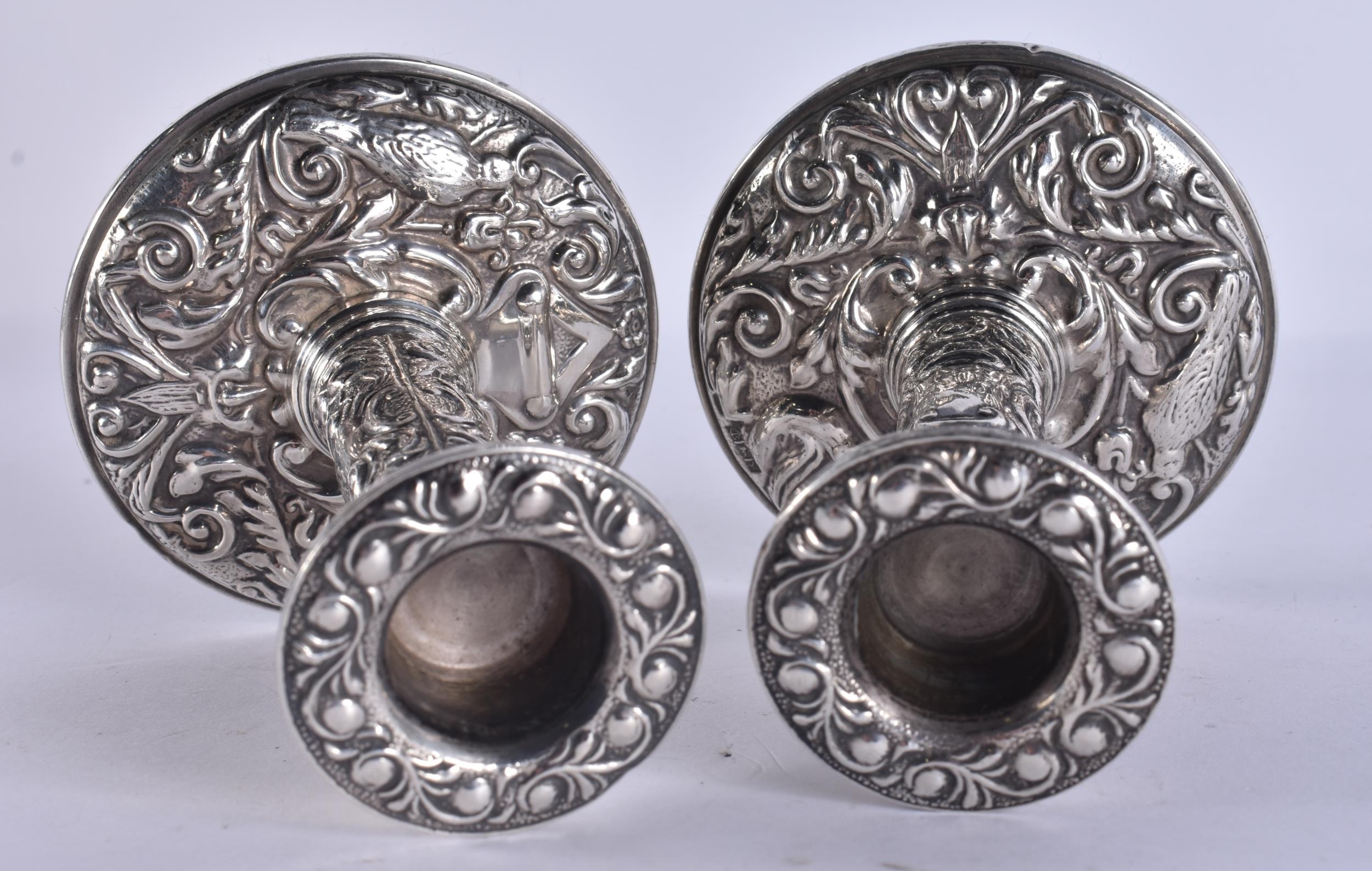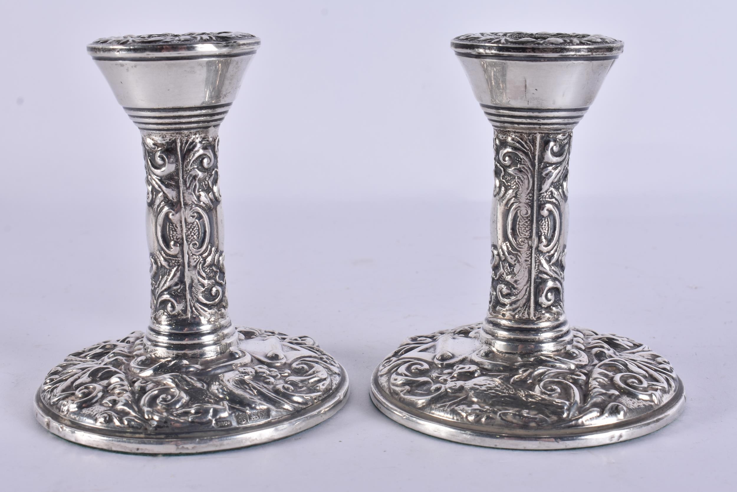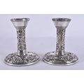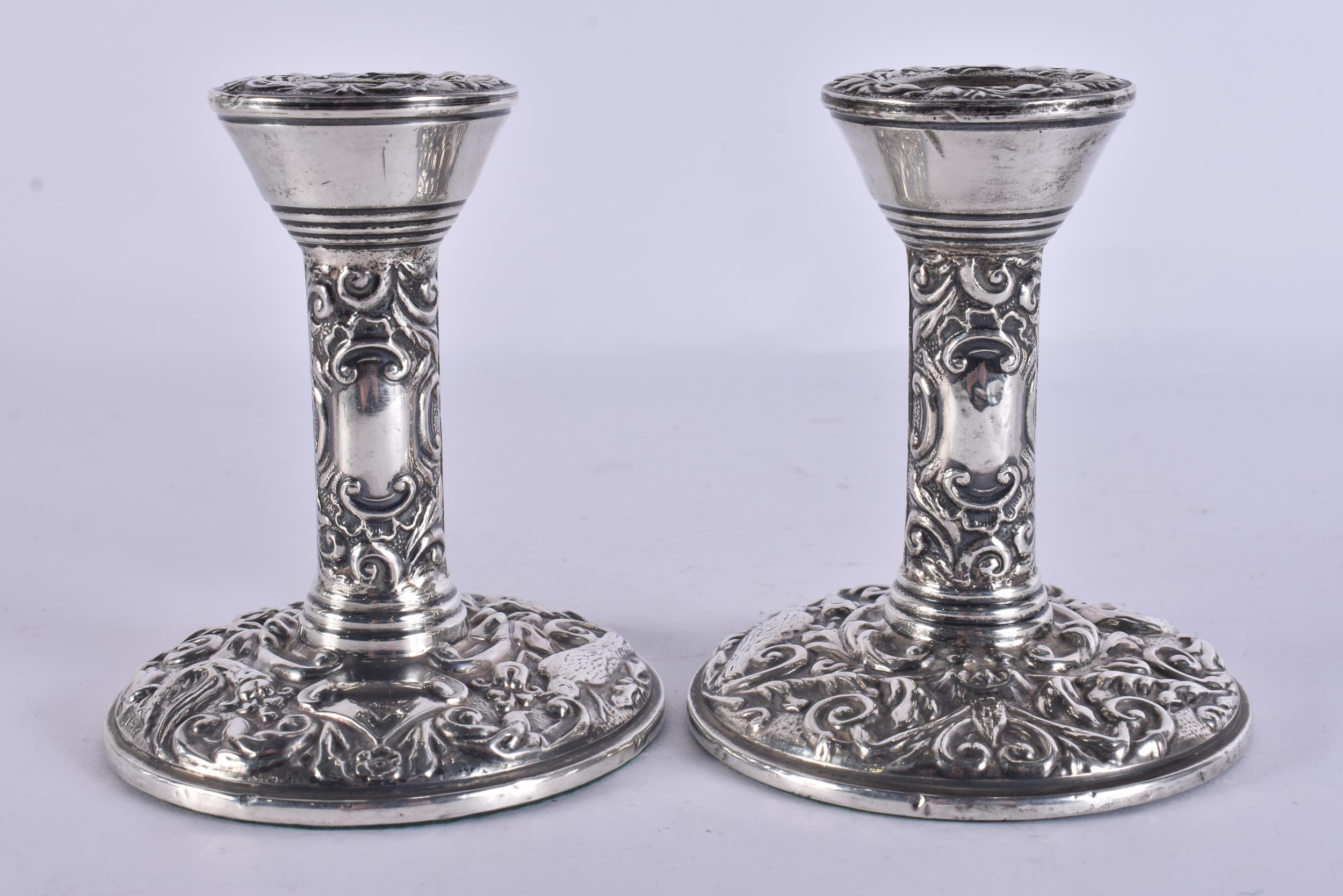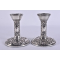 A PAIR OF SILVER CANDLESTICKS. 310 grams overall. 10.5 cm high.