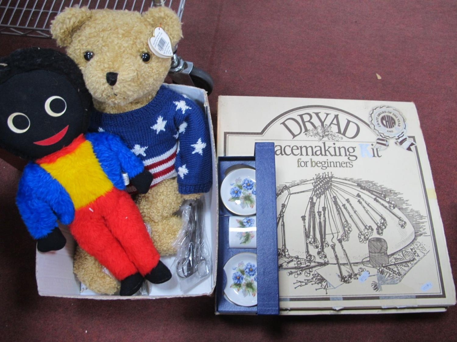 Dryas Lace Bobbin Kit, scissors, soft golly, Ty Bear, Worcester set.