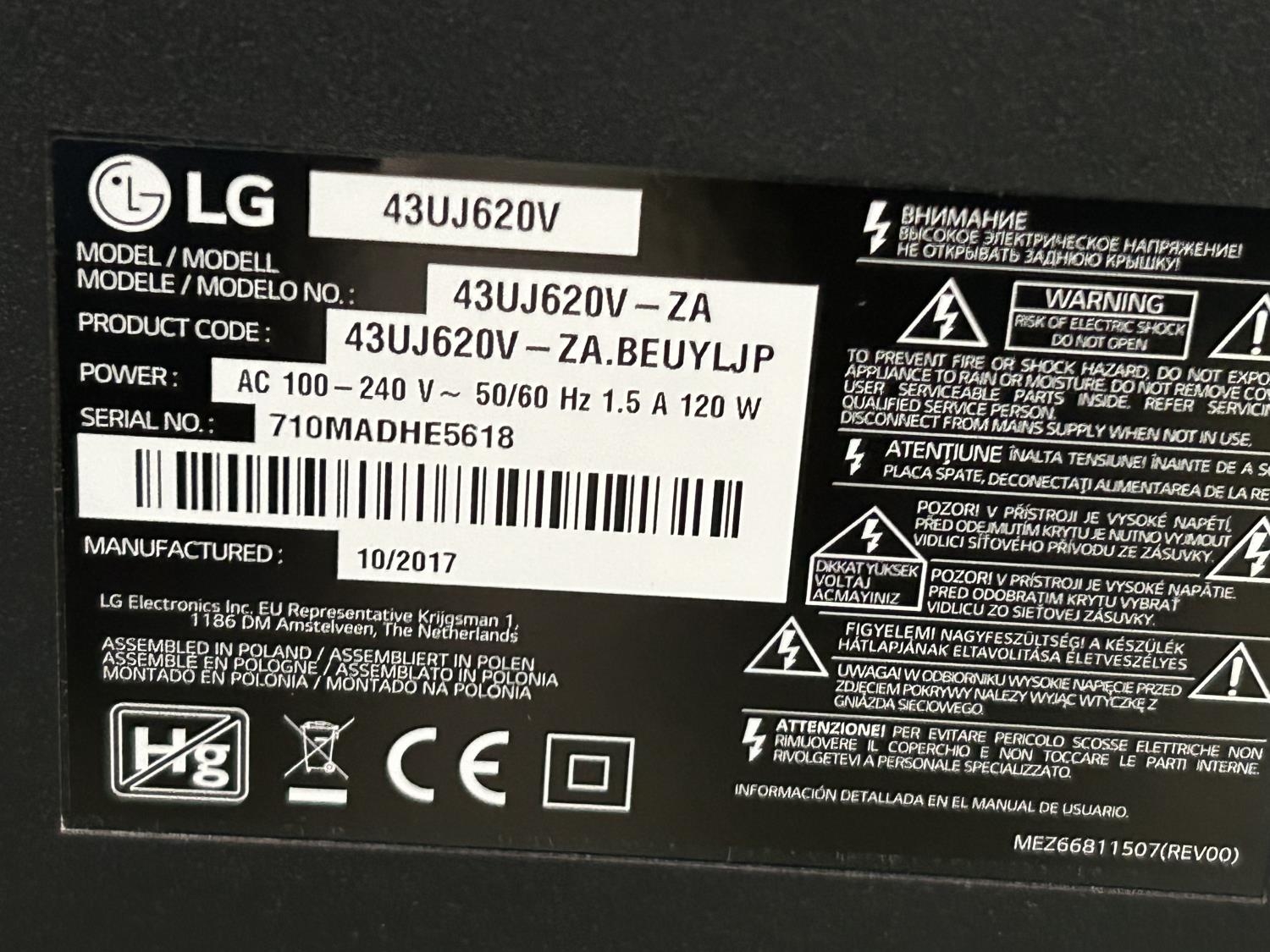 LG 43UJ620V 43" Television (No Remote)