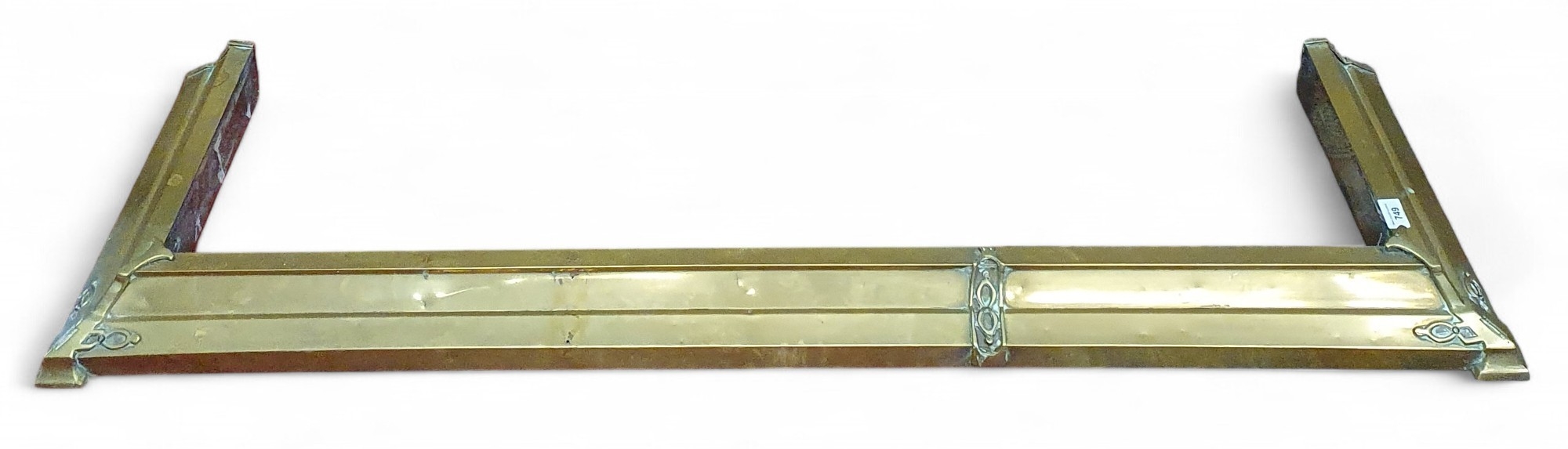 An Art Nouveau Brass Fender. L 142 x 42 cm approx.