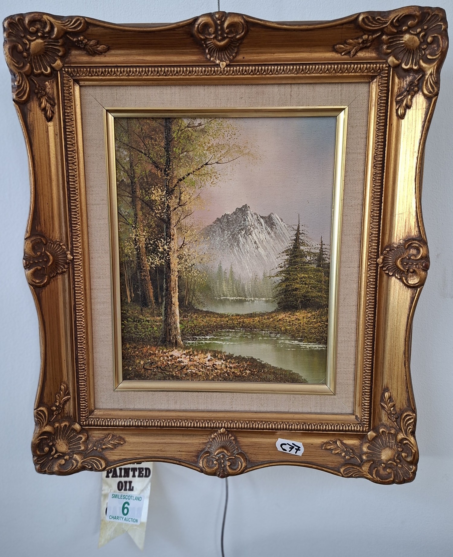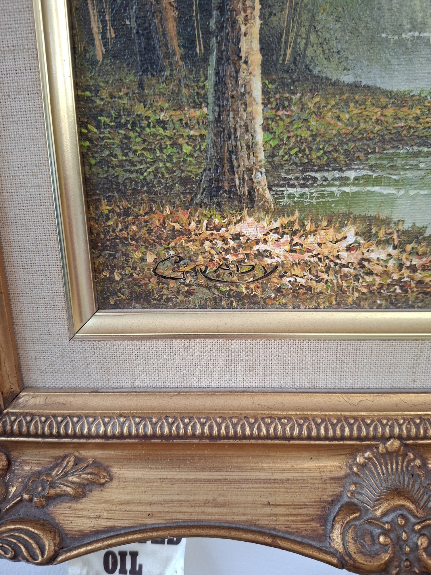 Ornate gilt framed hand painted oil on canvas 39cm x 34cm approx.
