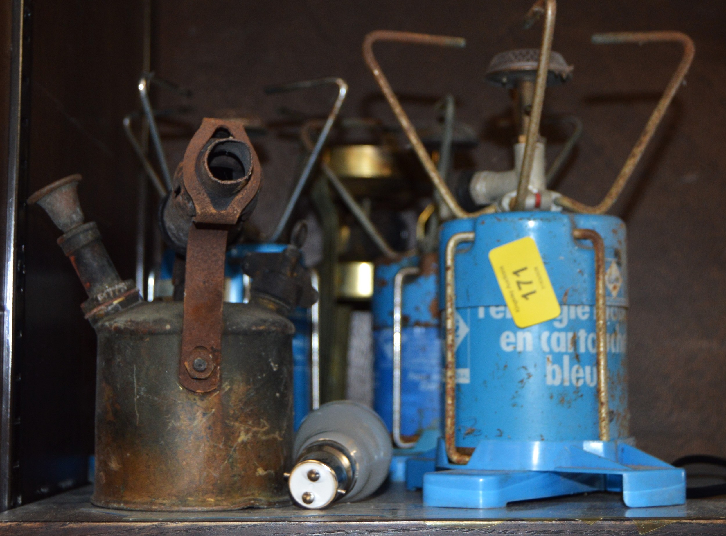 Five Assorted Camping Gaz Portable Stoves and Two Blow Lamps