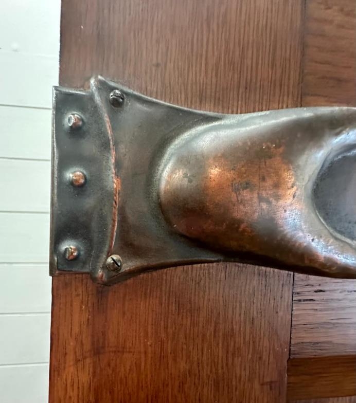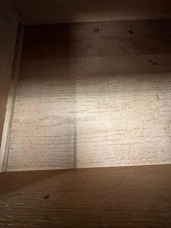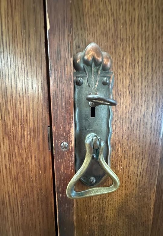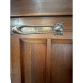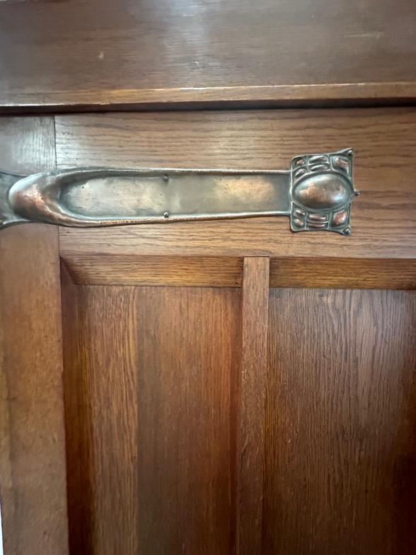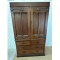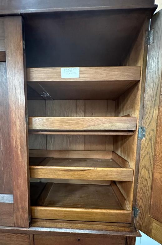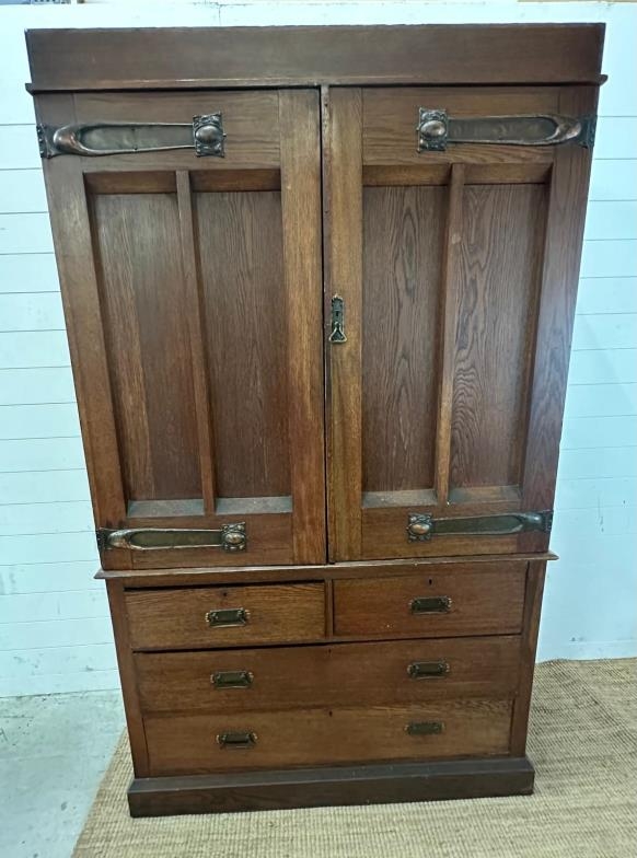 An Arts and Crafts style oak linen press, the cupboard opening to four drawers over two short and two long drawers (H206cm W130cm D50cm)