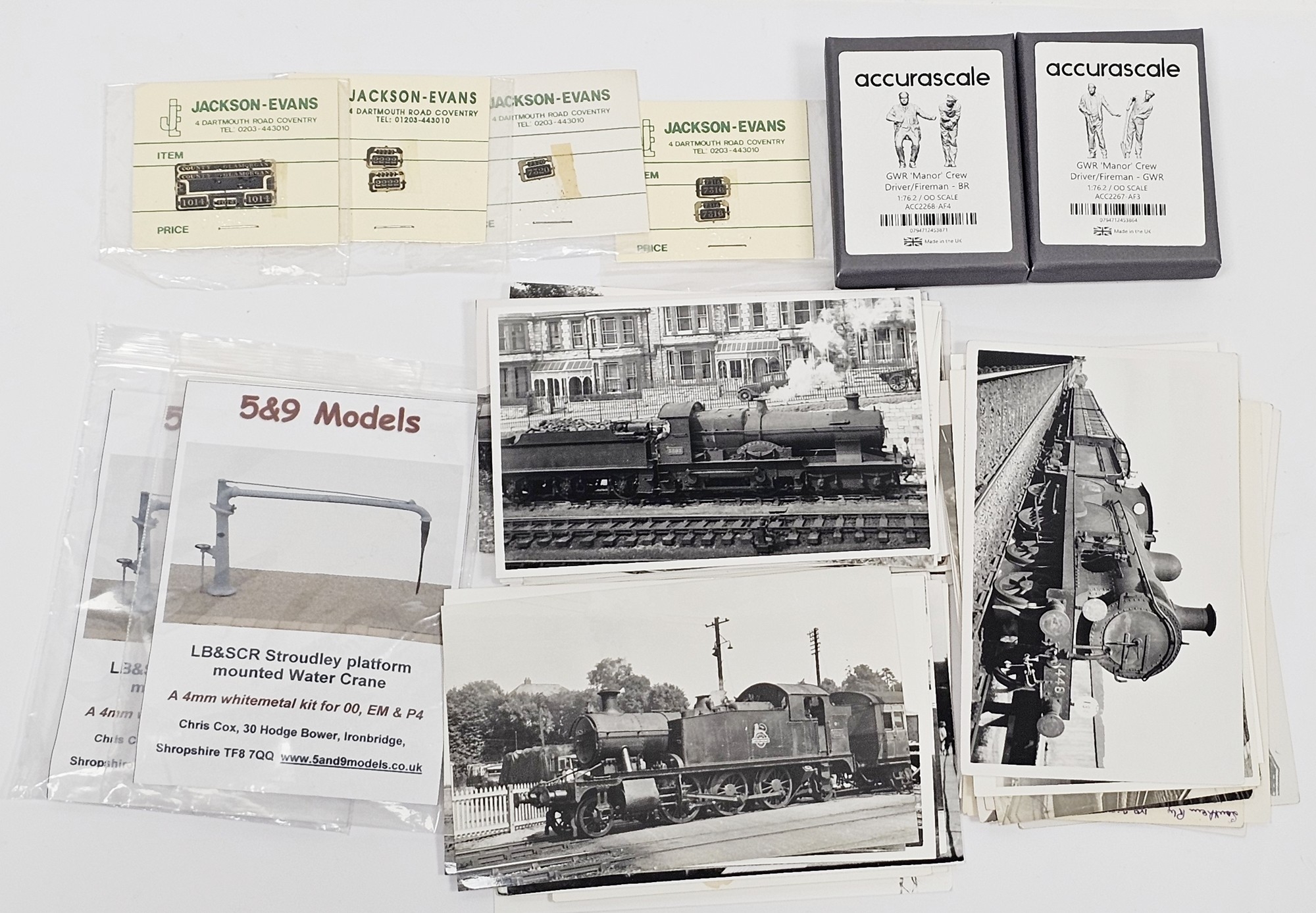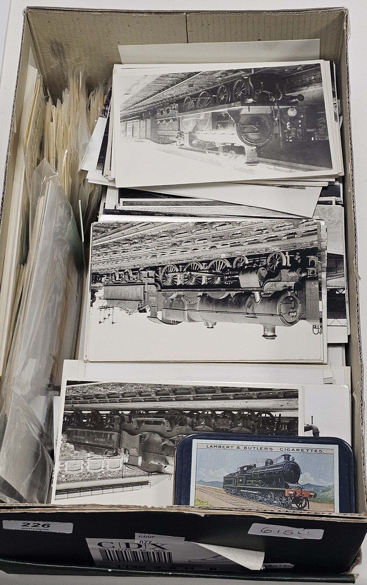 Collection of steam train locomotive postcards and photographs, mainly black and white dating from the 1950's onwards together with a few train tickets and model locomotive decals