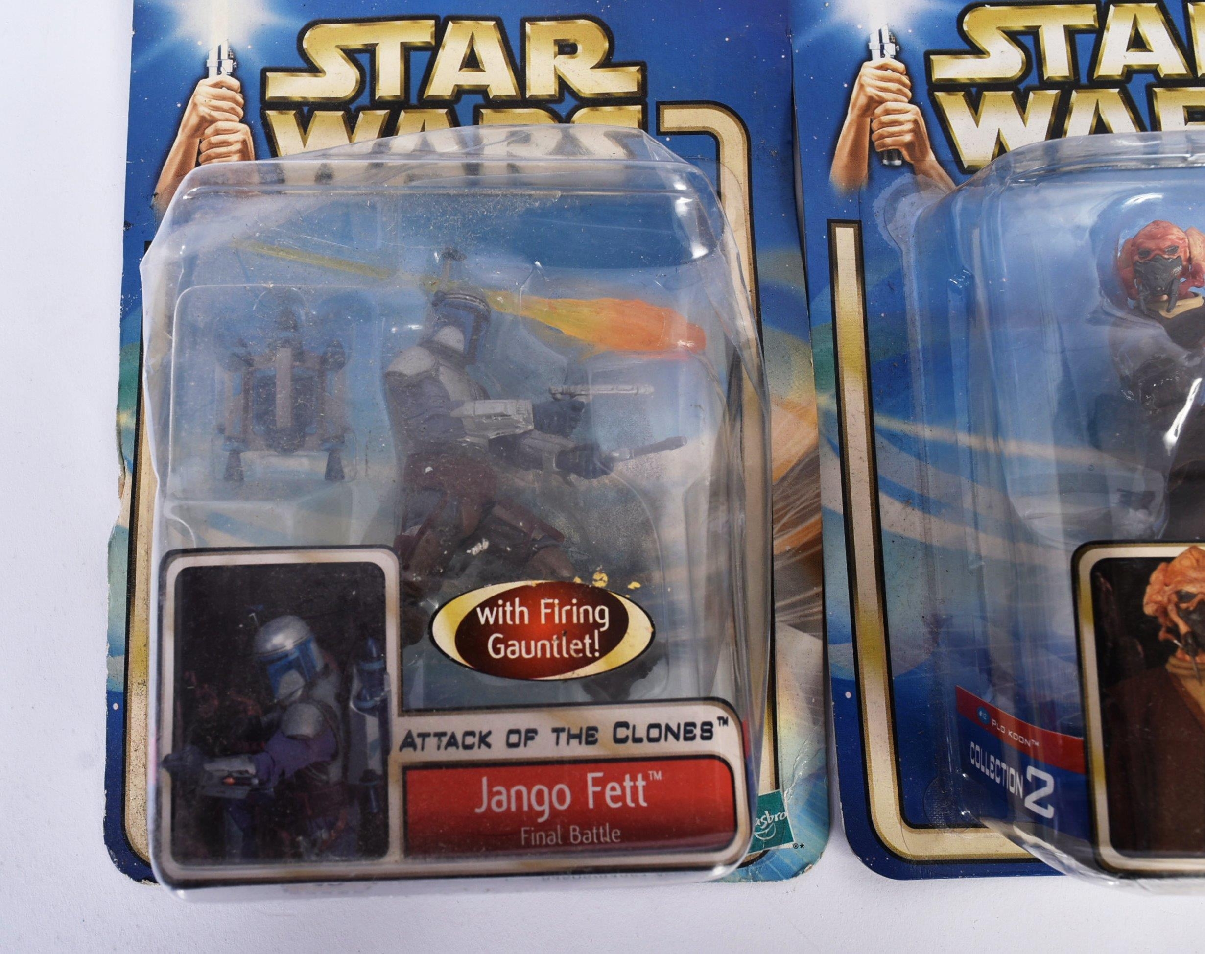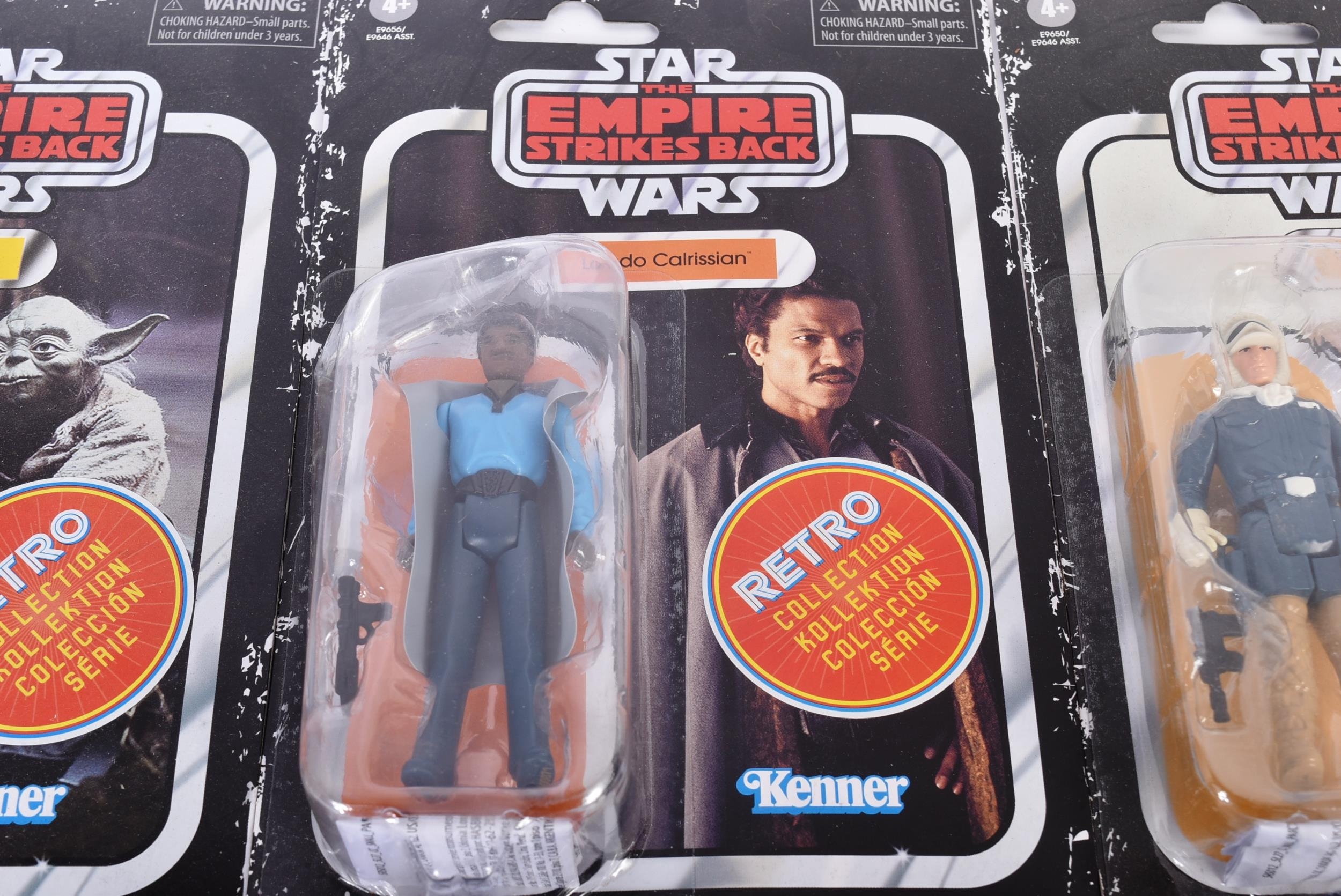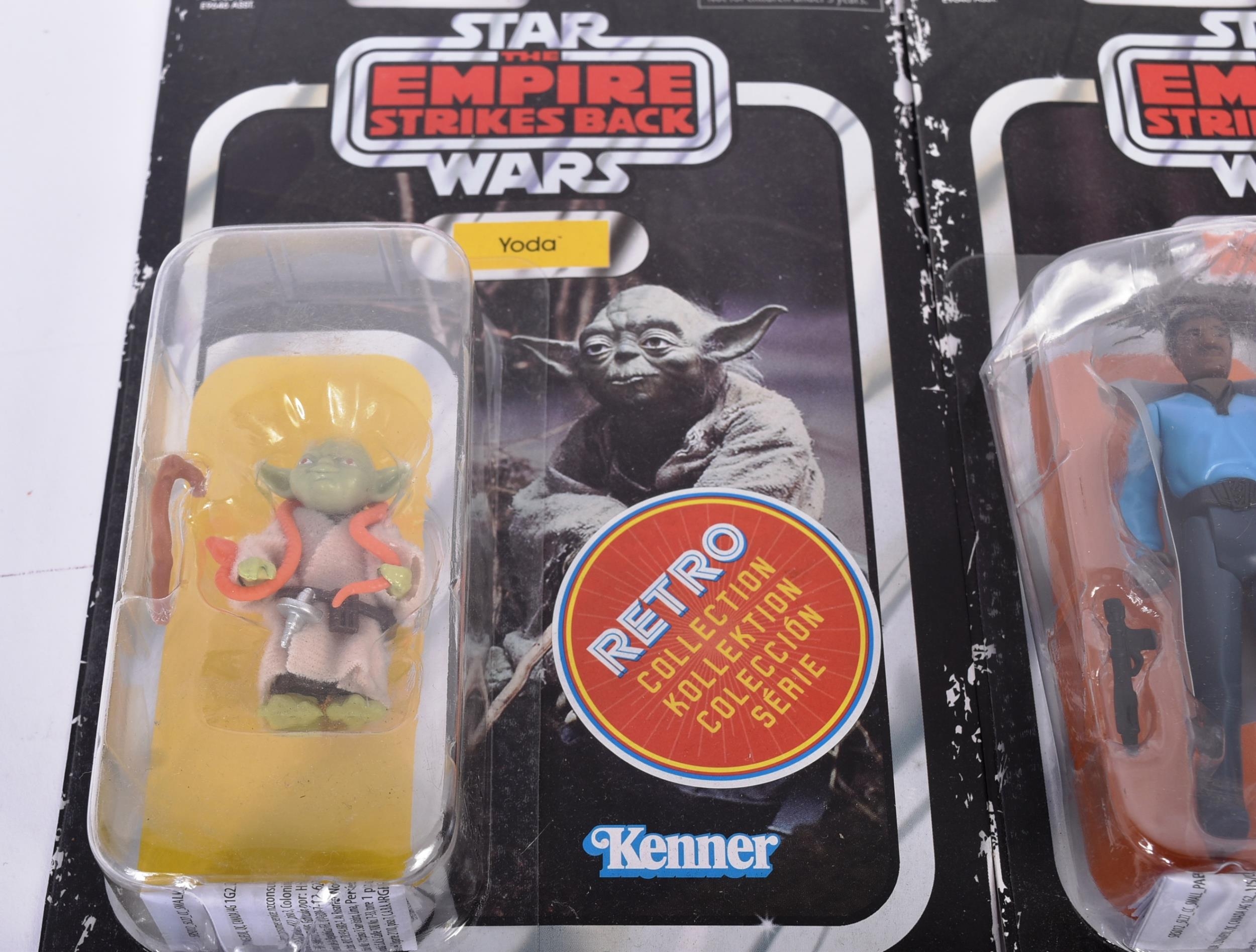 Star Wars - a collection of assorted carded Star Wars action figures to include Kenner ' Retro Collection ' (Leia Hoth, Luke Bespin, Lando, Han Solo Hoth and Yoda) and x4 Hasbro Attack Of The Clones (Jango Fett, Plo Koon, Destroyer Droid and Orn Free Taa). Contents sealed.