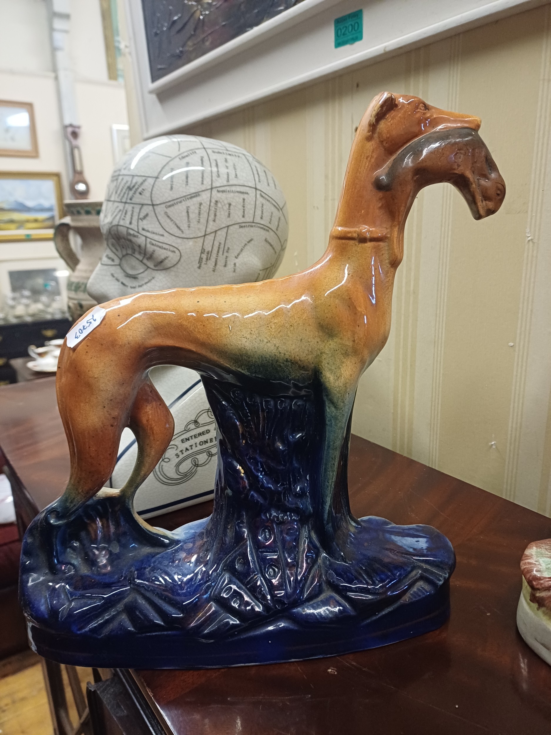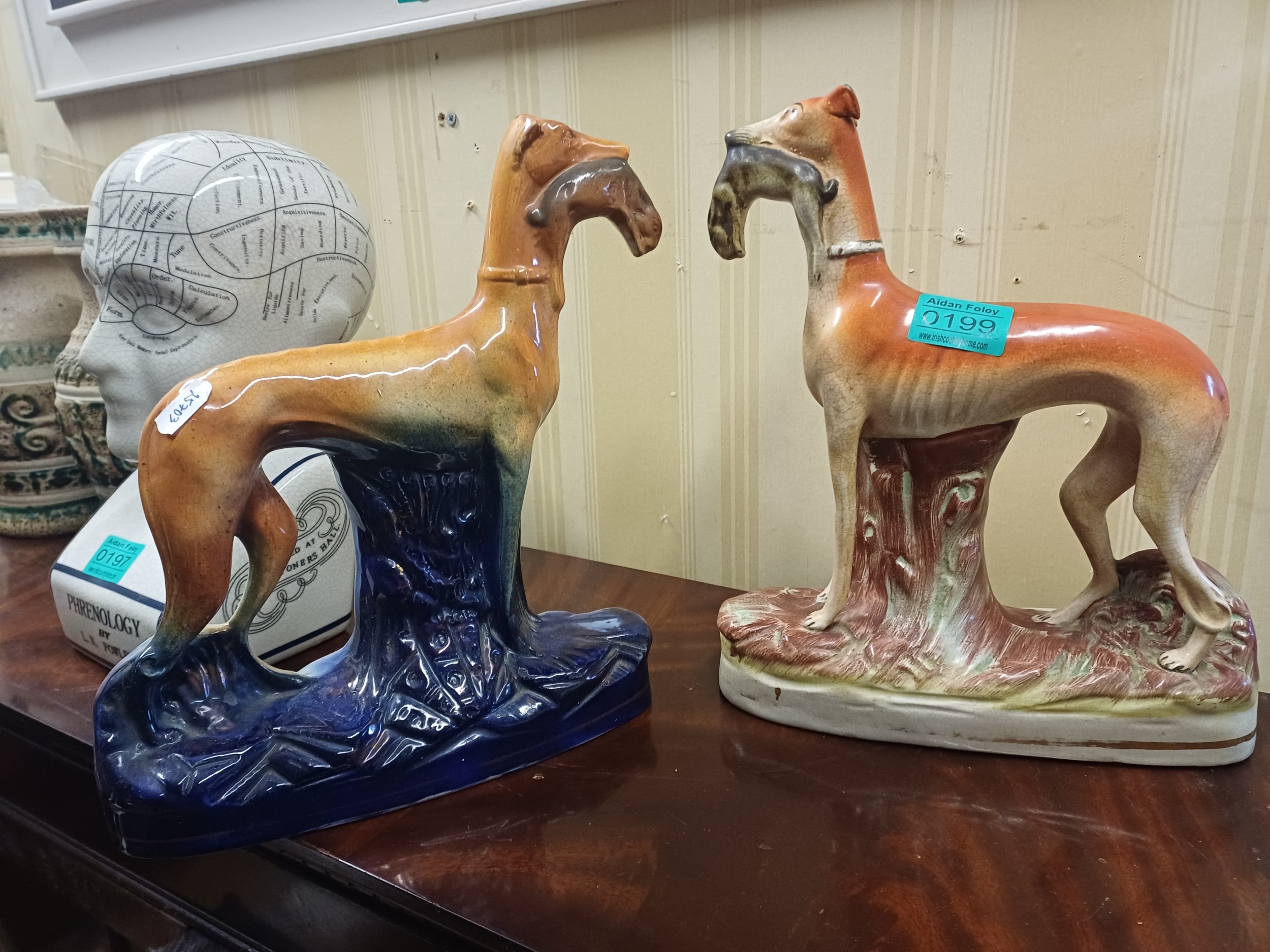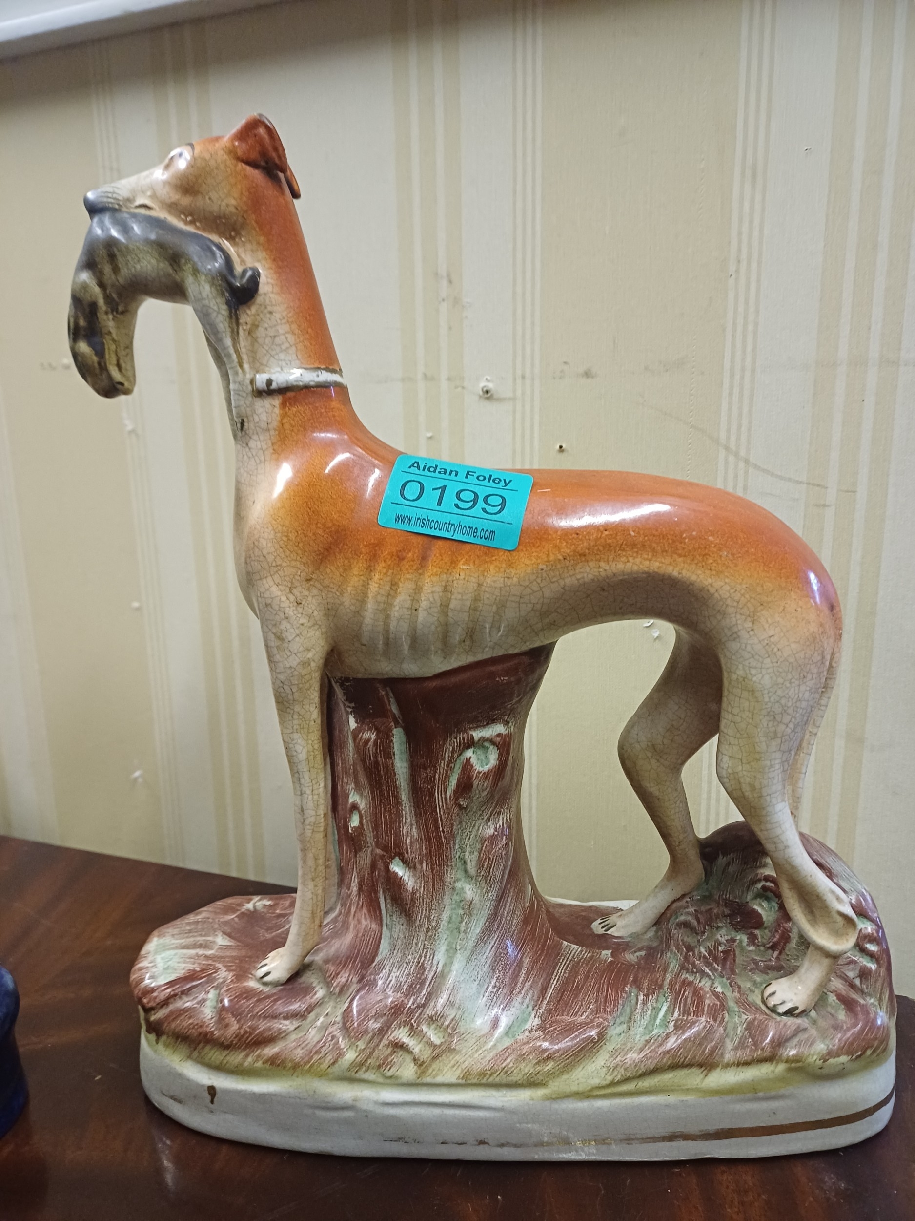 2 x 19th Century Staffordshire Pottery Greyhound Figures (Taller 30cm)