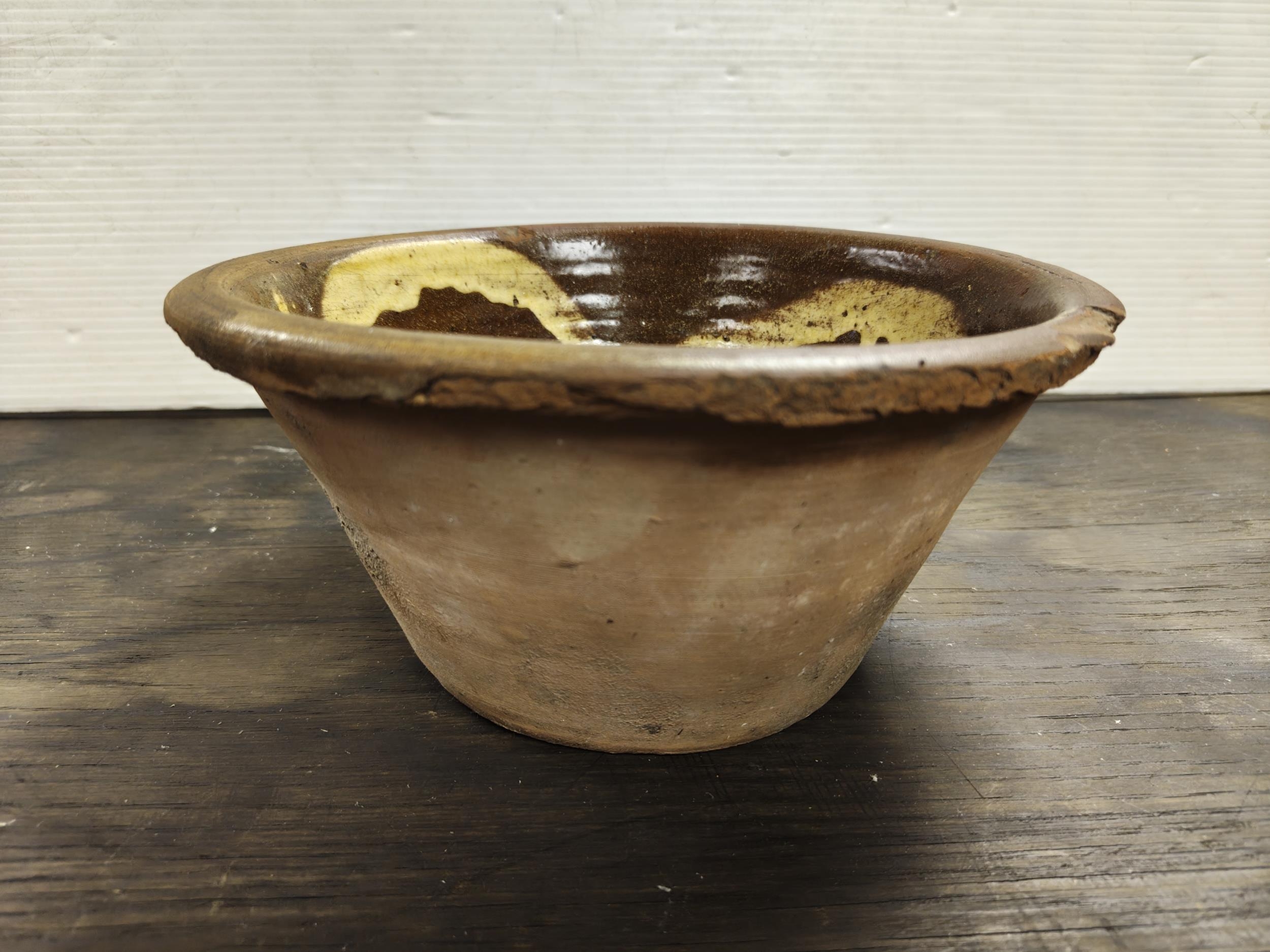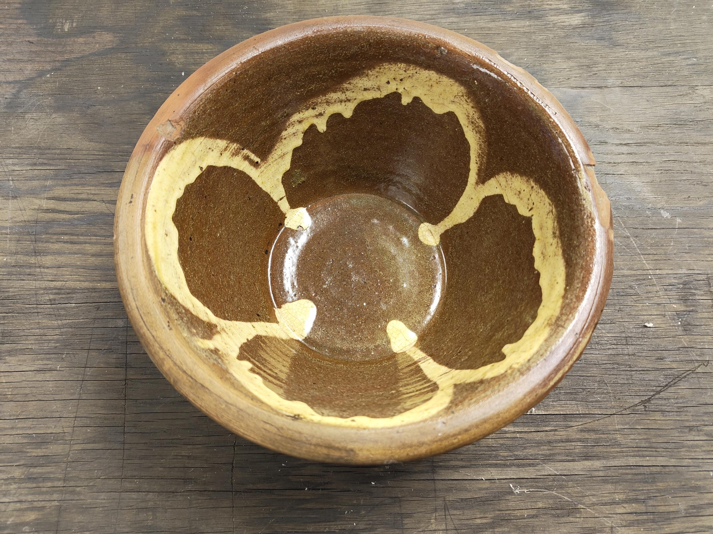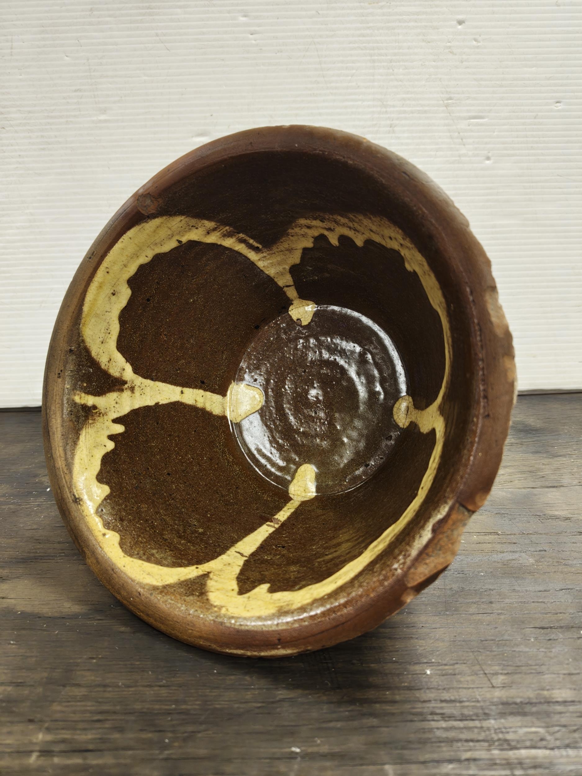 A stunning antique Coalisland crock dairy bowl. Measuring approx 25cm x 11cm