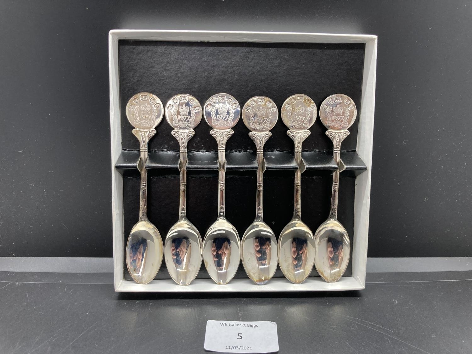 A set of six hallmarked Sheffield silver 1977 The Queen's Silver Jubilee teaspoons by P & C - approx. combined weight 99 grams