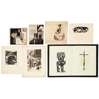 Unexamined out of frame. The sheet cockled and slightly toned in places. Two margins with evident repairs, however somewhat lost in the overall display.