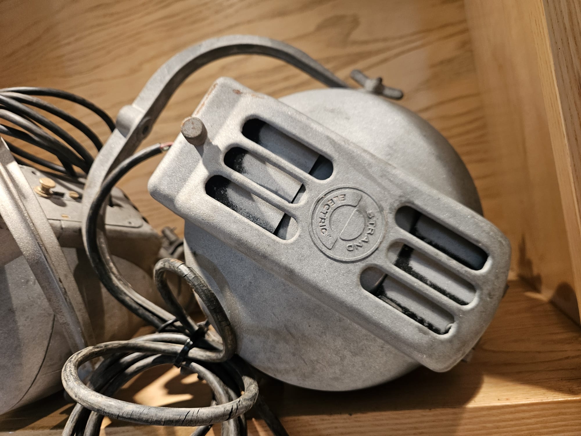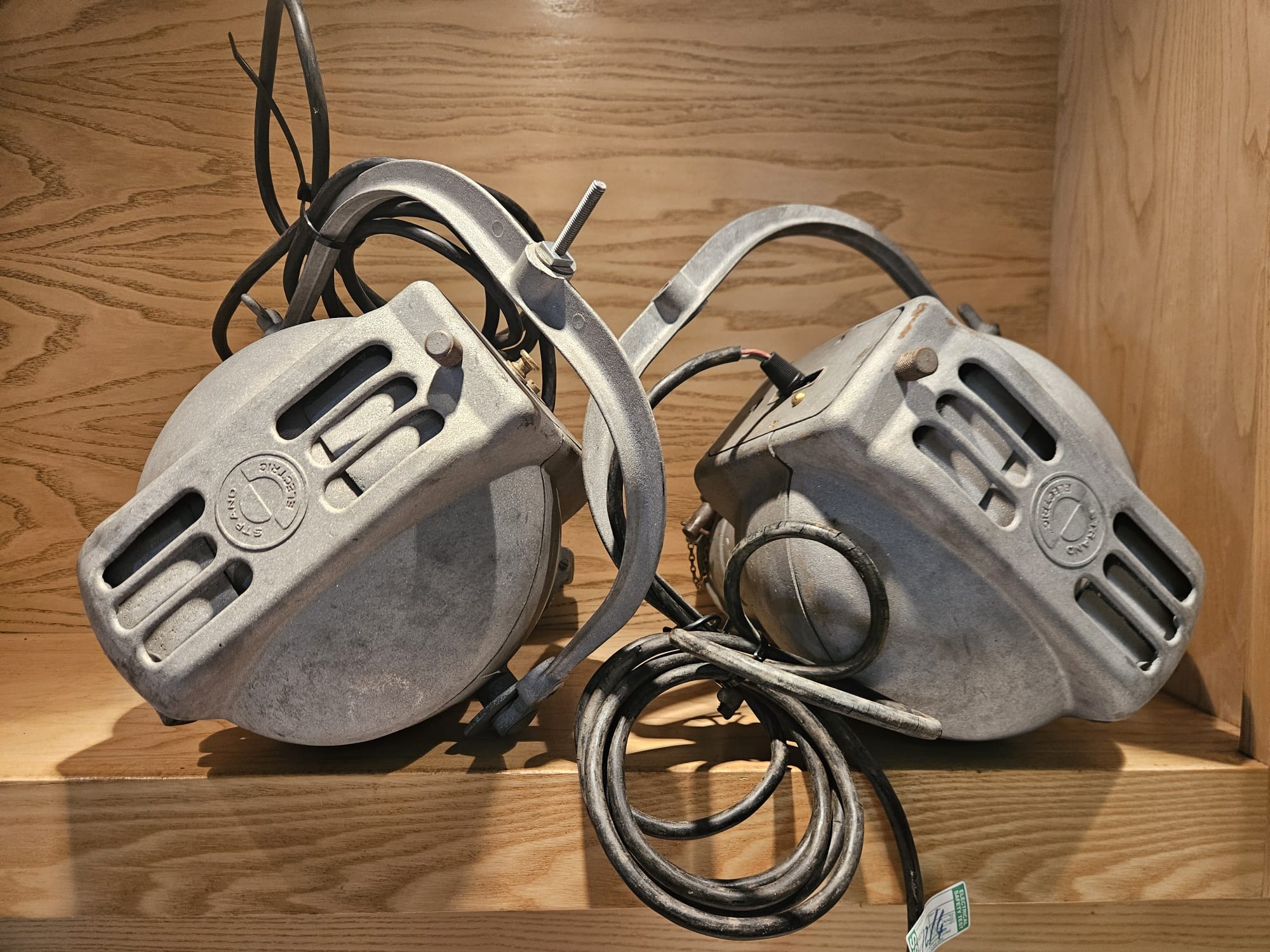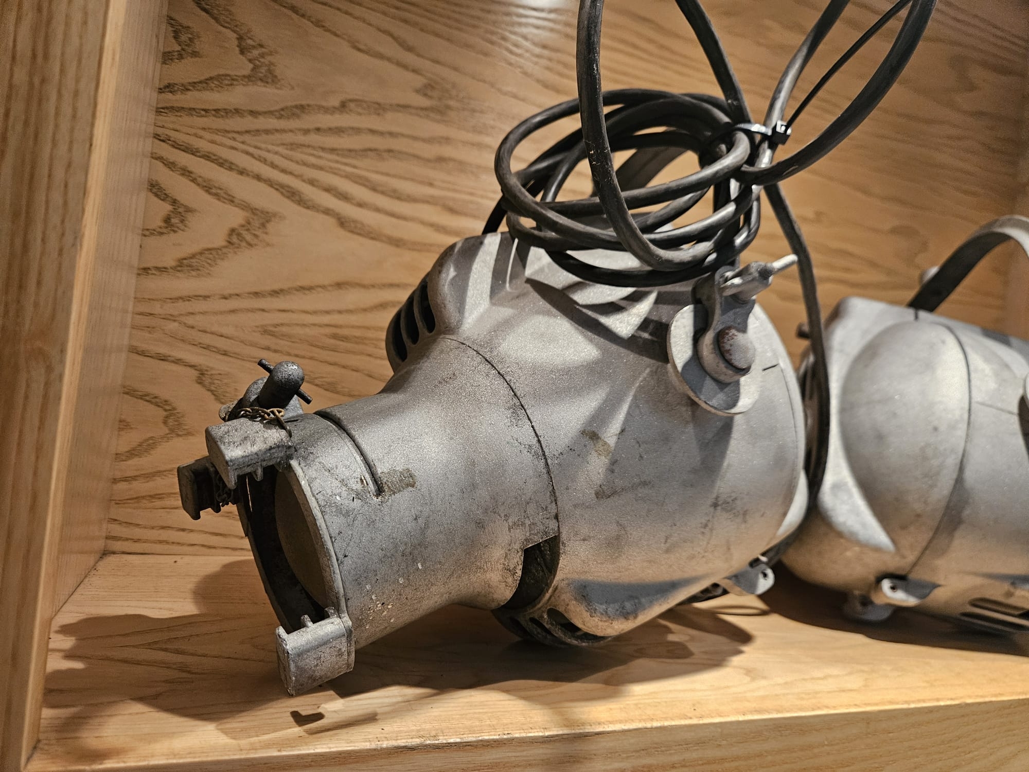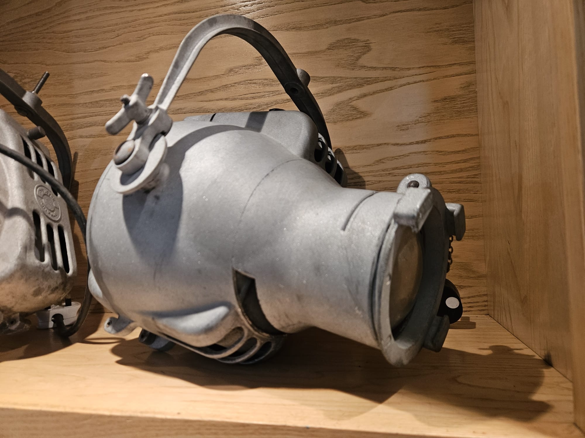 Two Strand Electric Theatre Spot Lamps, aluminium bodys, recently sandblasted.