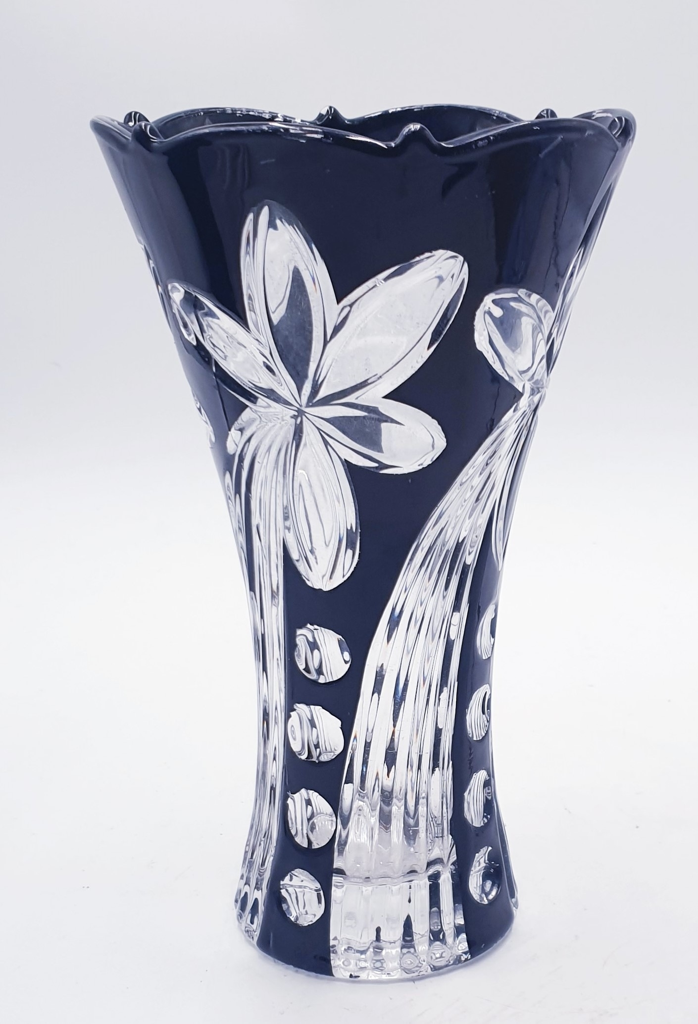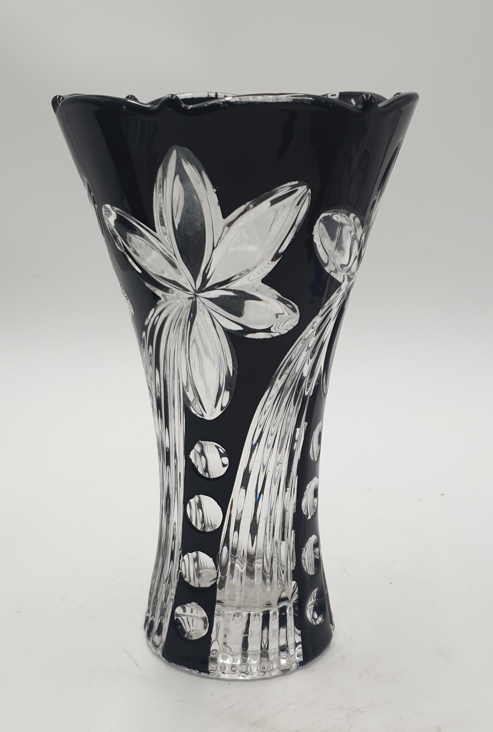 CUT GLASS Large 24cm BLACK/WHITE VASE