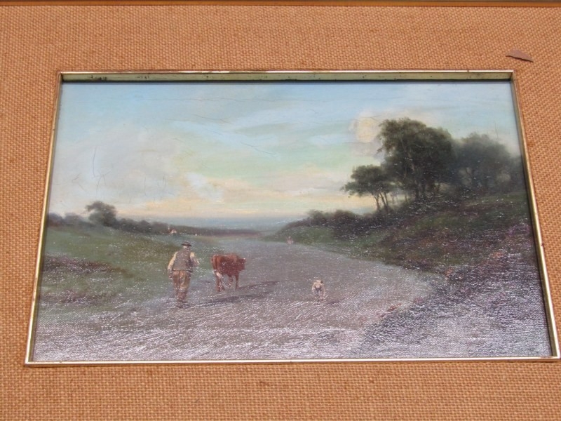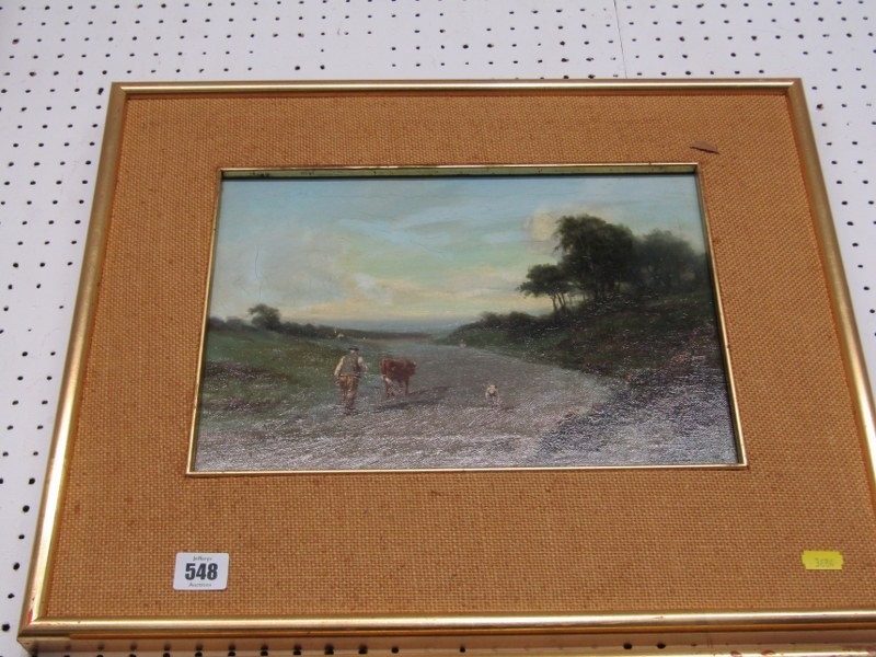 HUGH SCOTT, 19th Century oil on board "Walking home to be milked", 23cm x 33cm