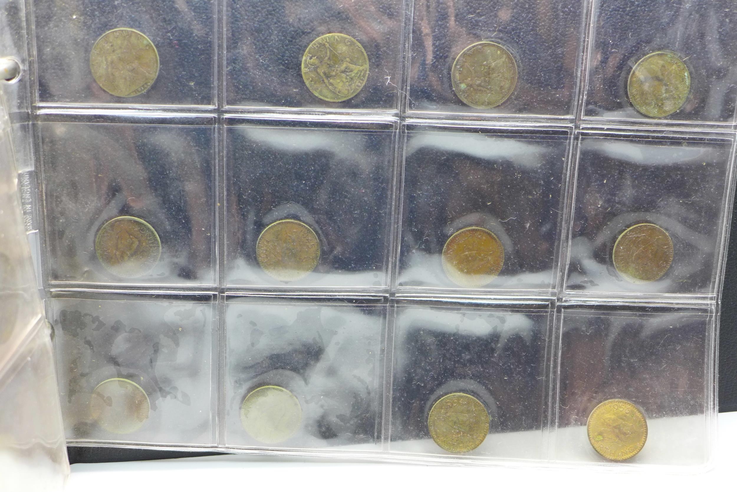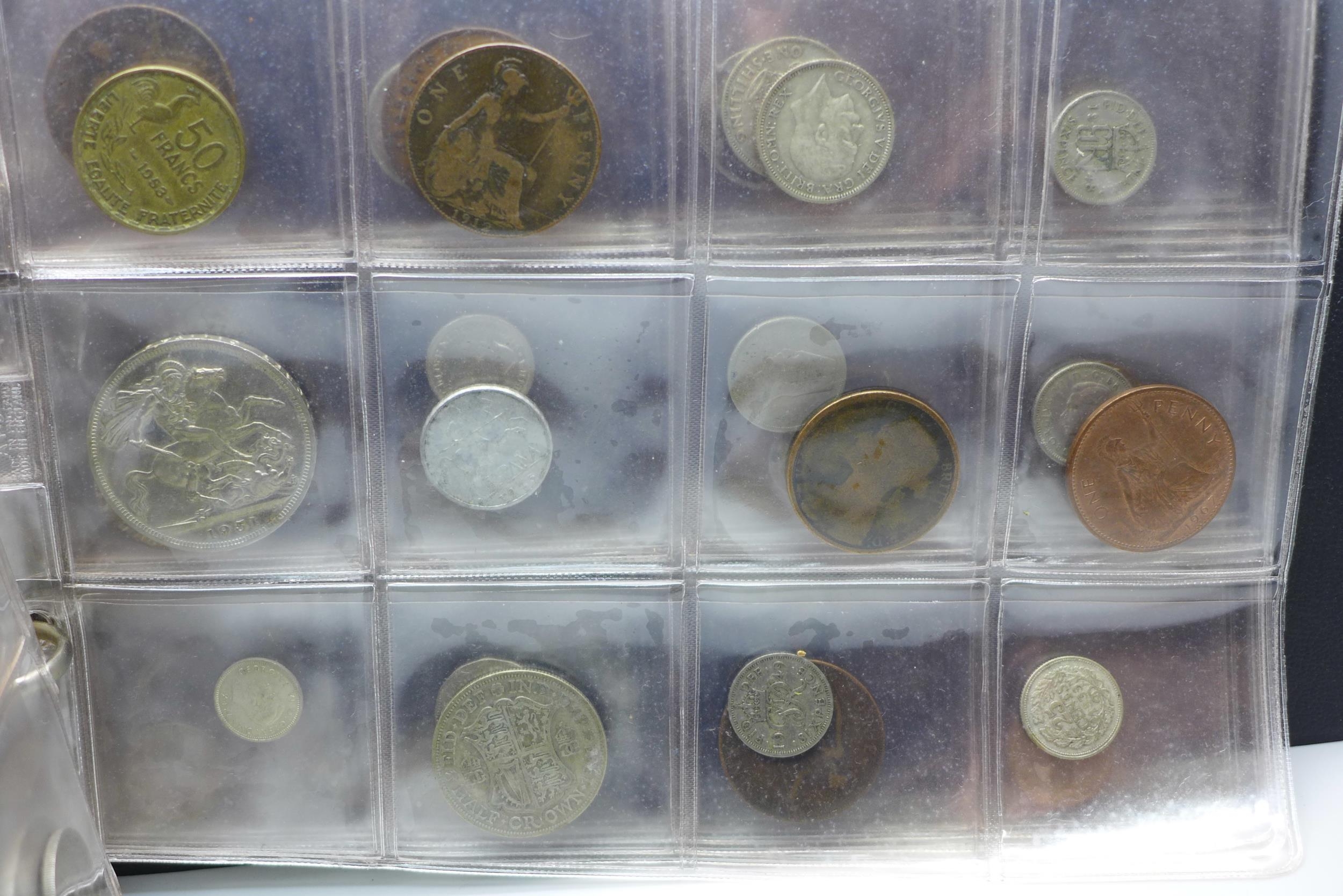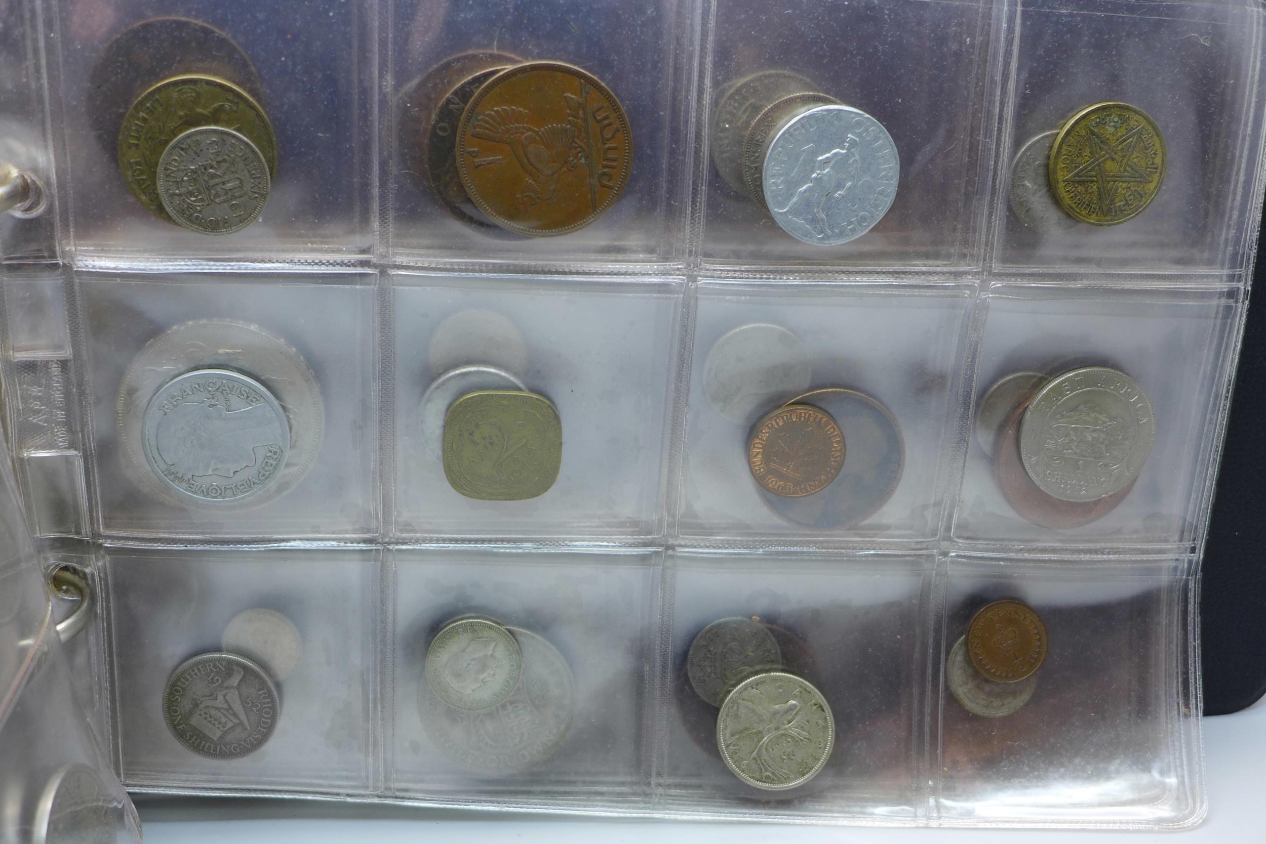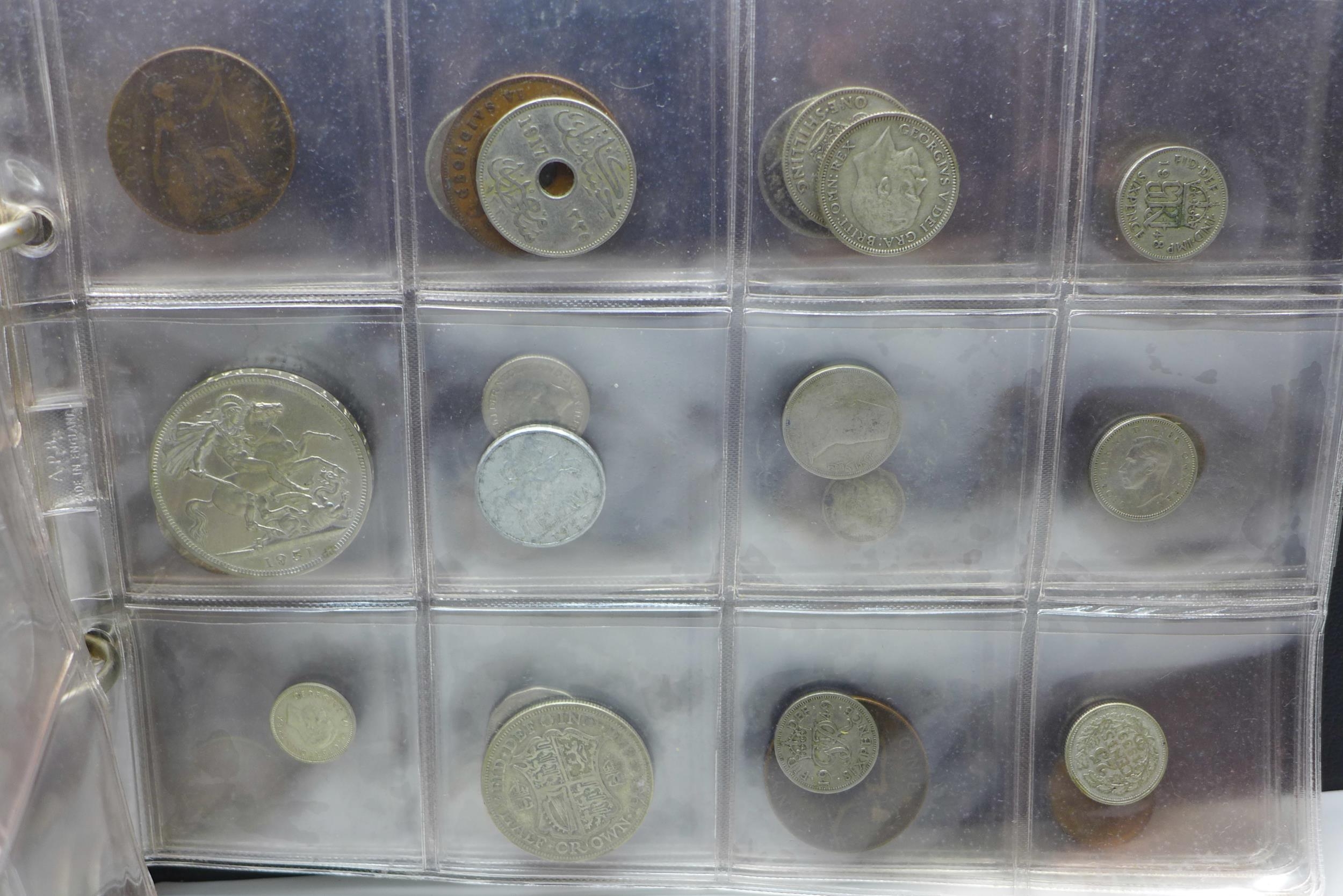 An album of assorted coins including a Victorian shilling