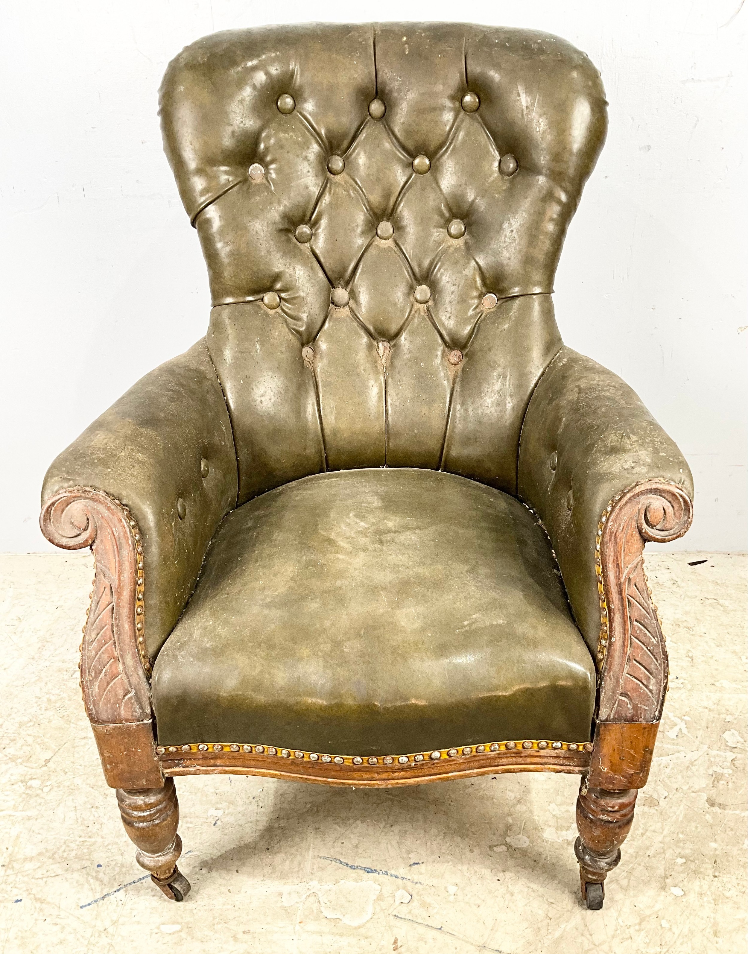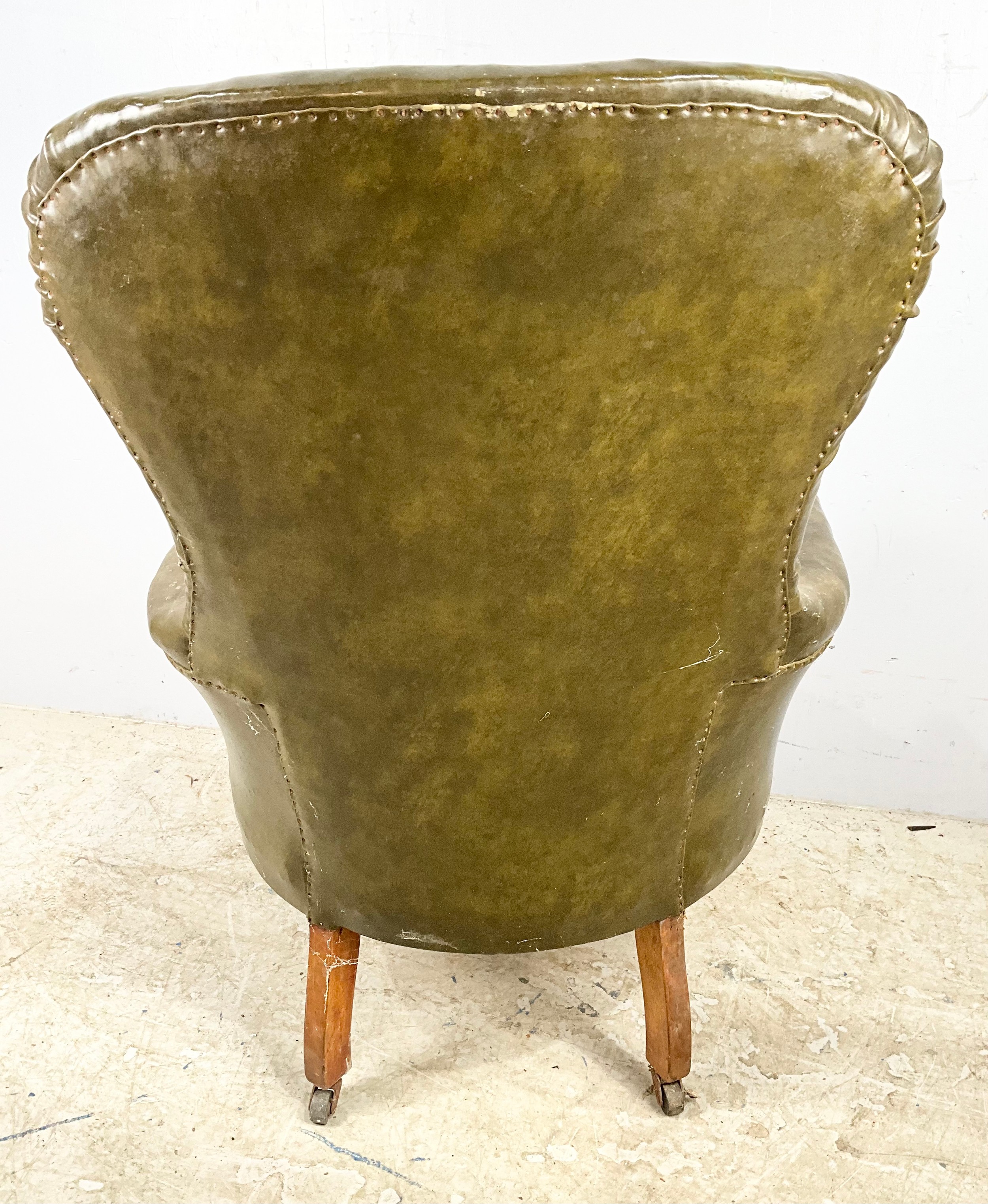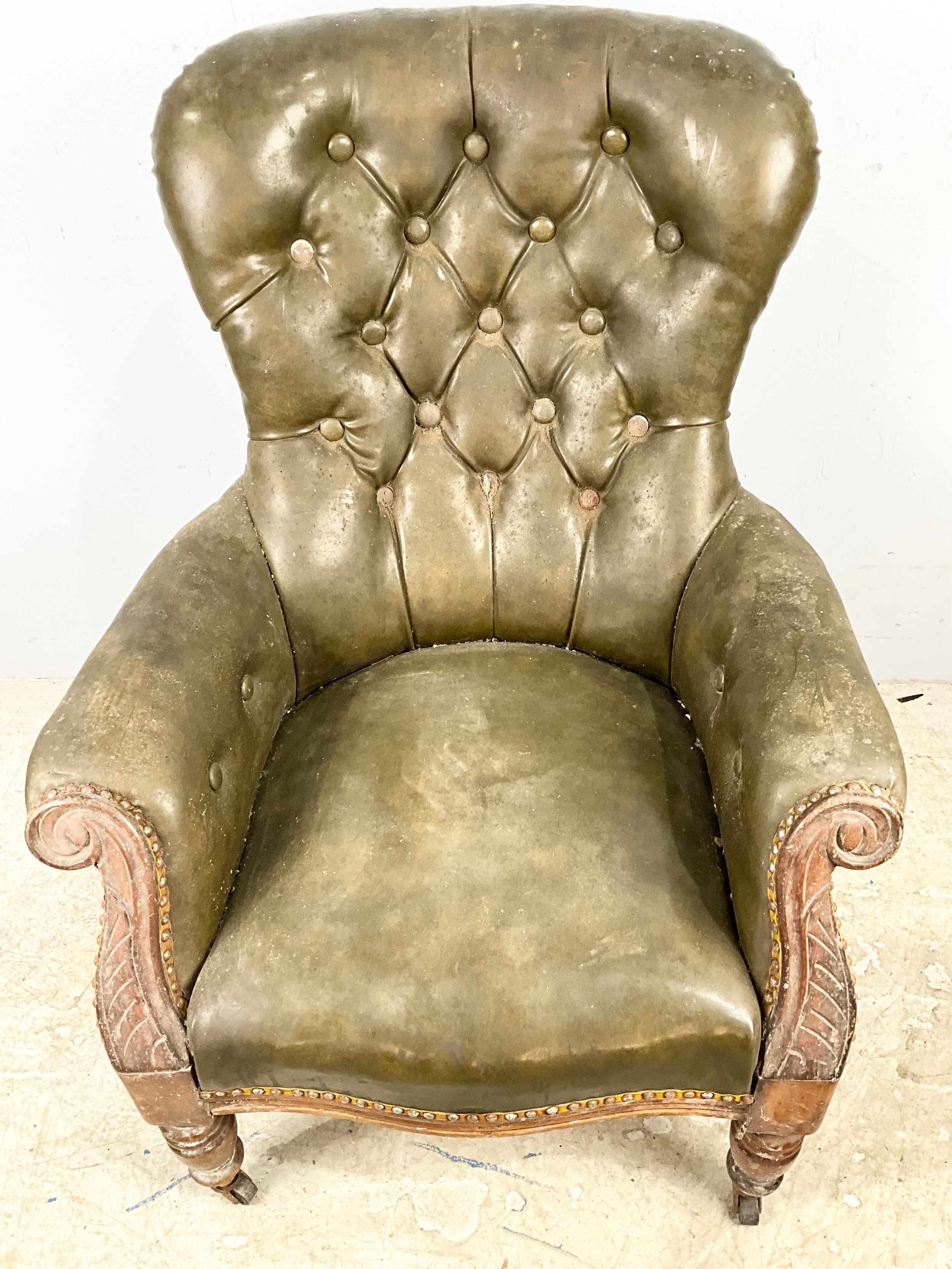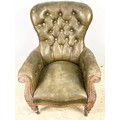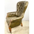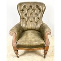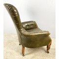 GOOD QUALITY LEATHER BUTTON BACK LIBRARY CHAIR