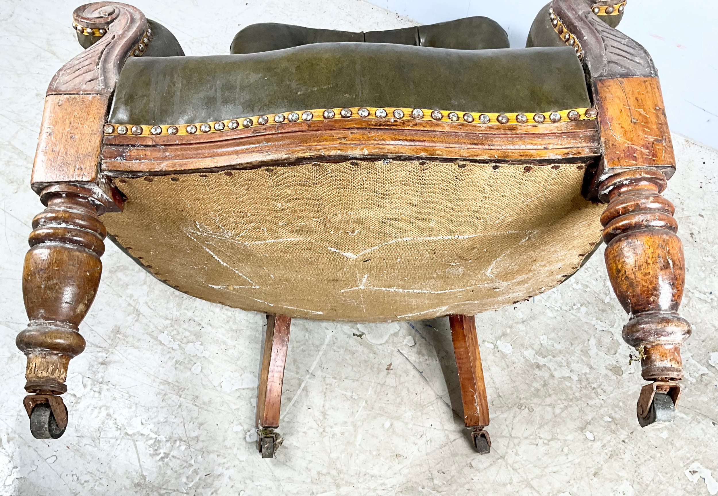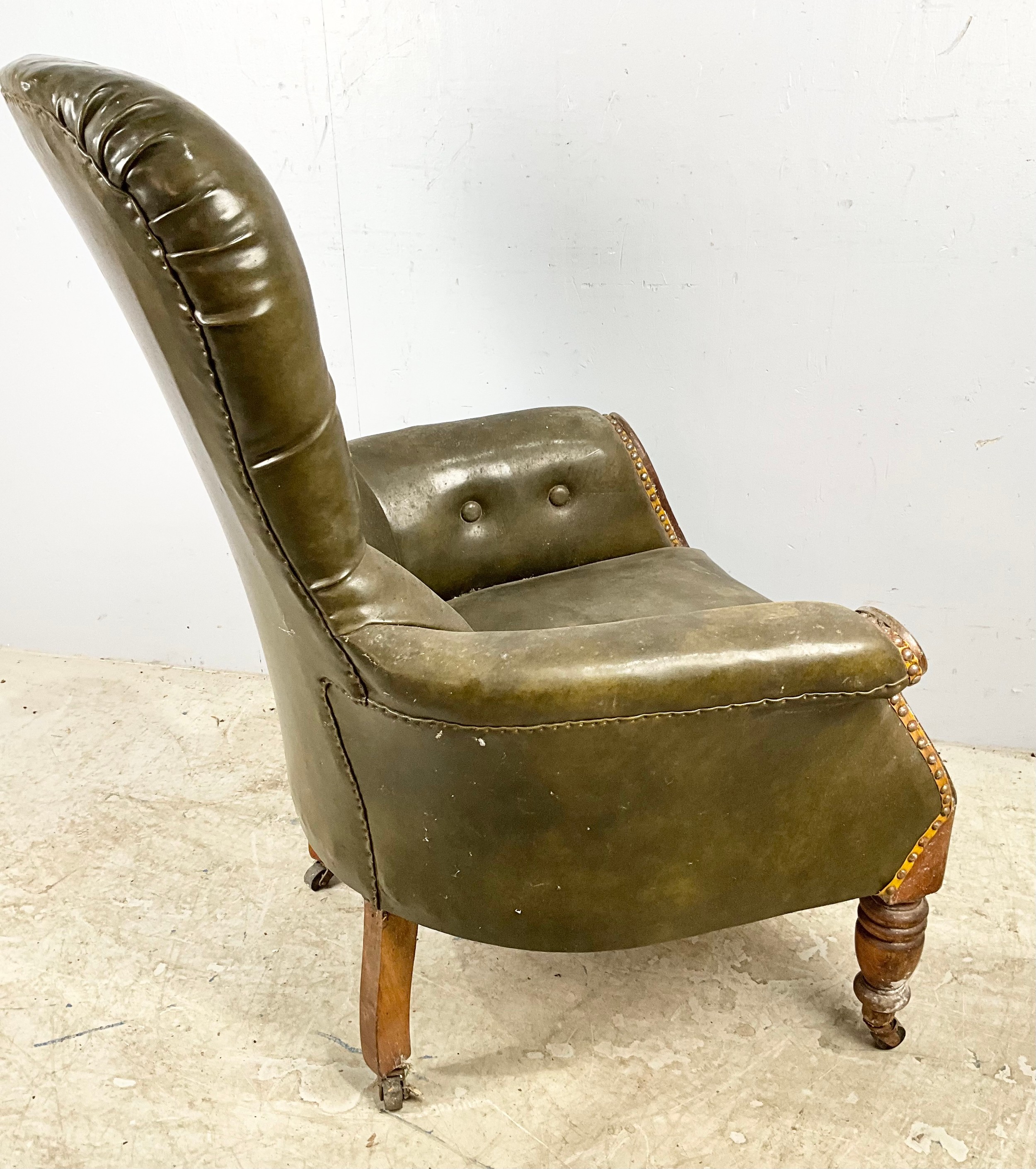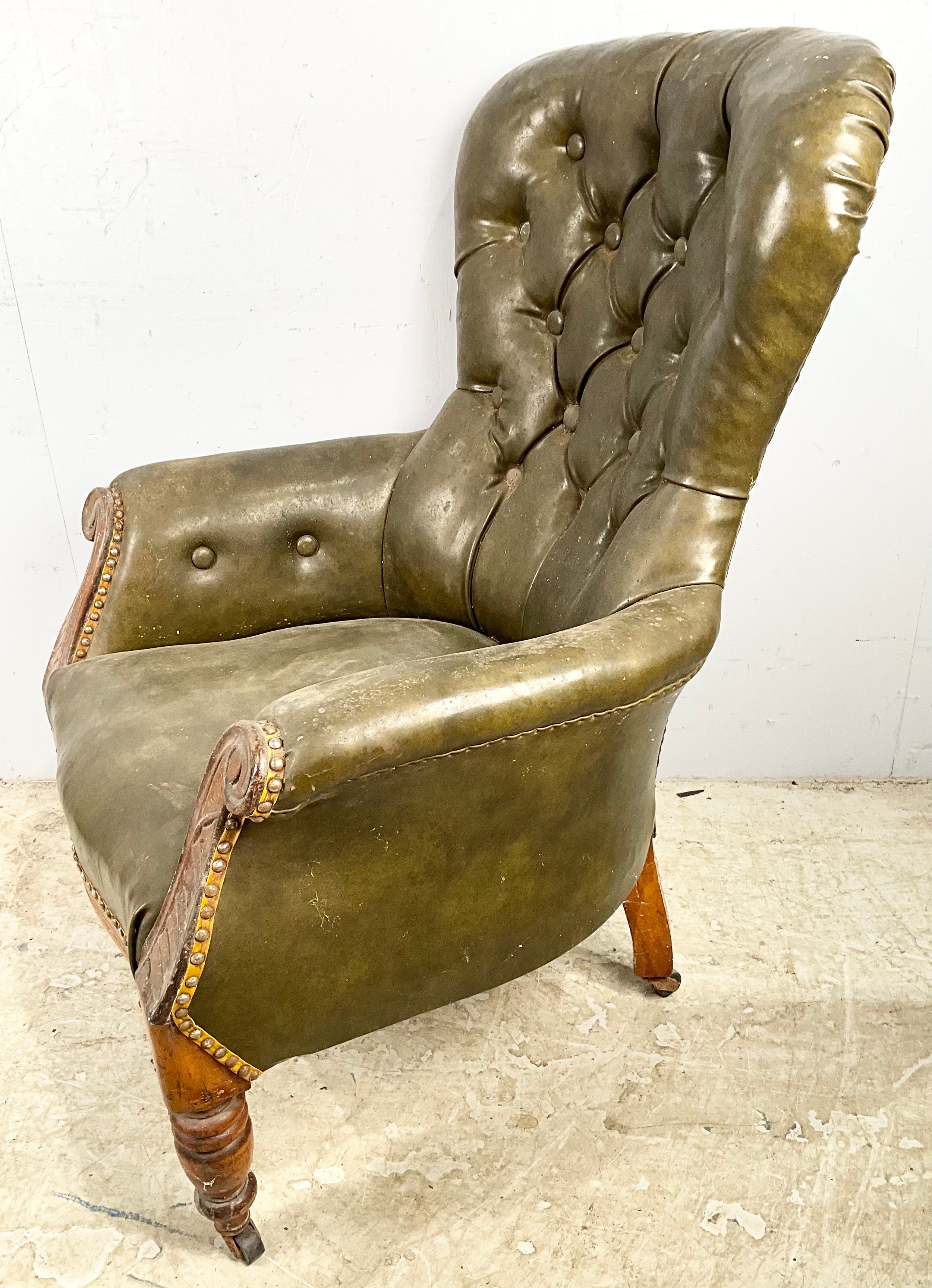 GOOD QUALITY LEATHER BUTTON BACK LIBRARY CHAIR