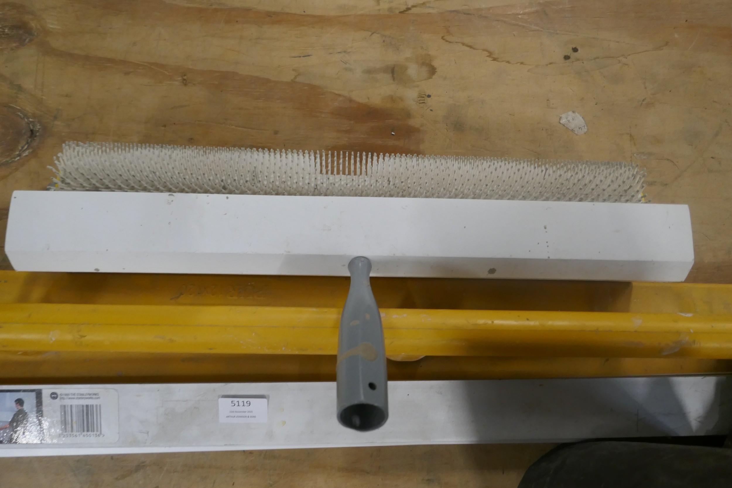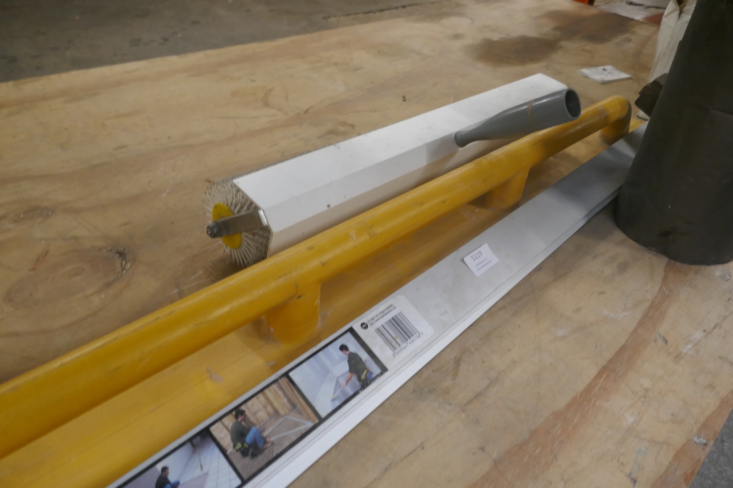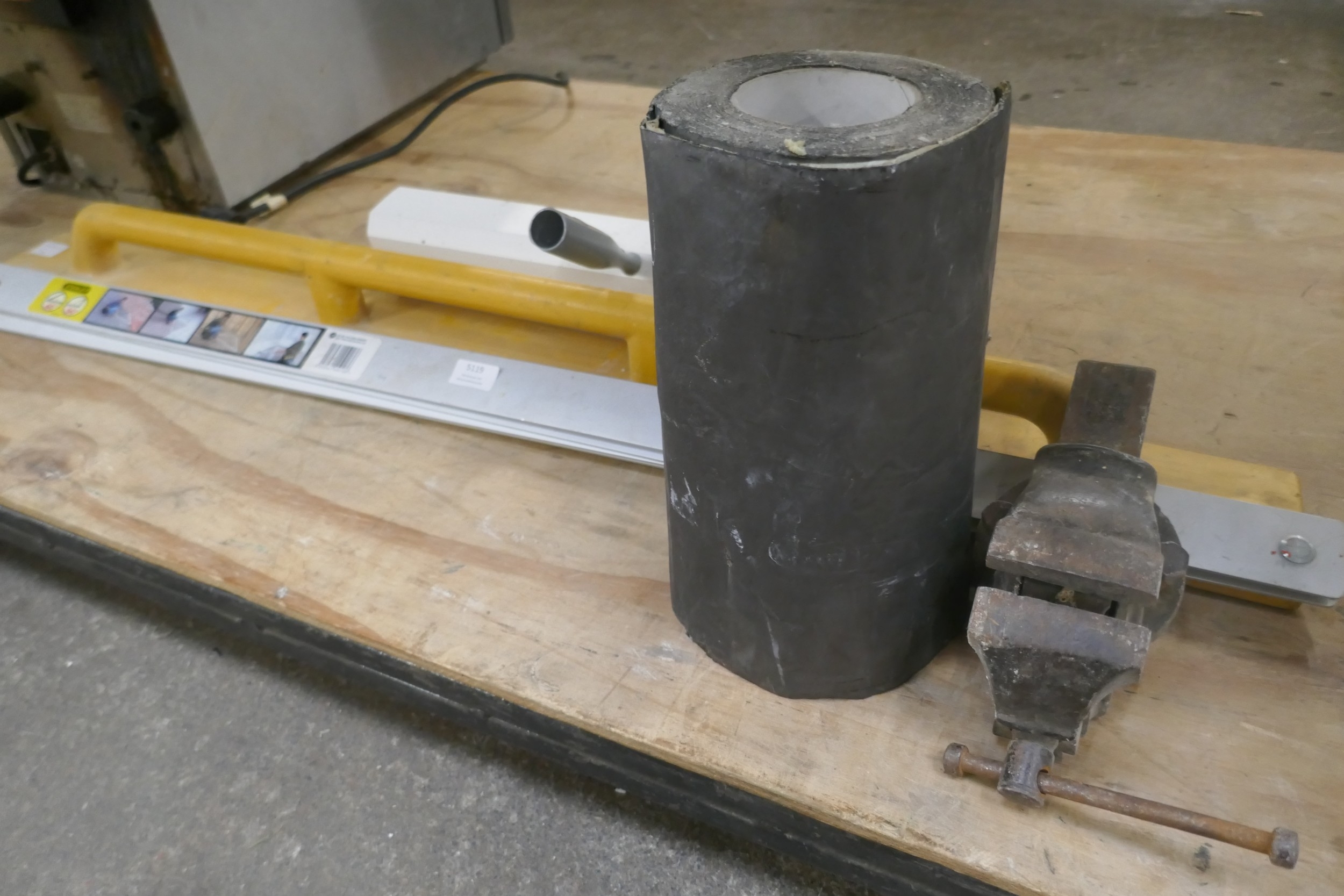 A roll of Flashband, a Stanley square spike roller and plasterers Derby and small vice