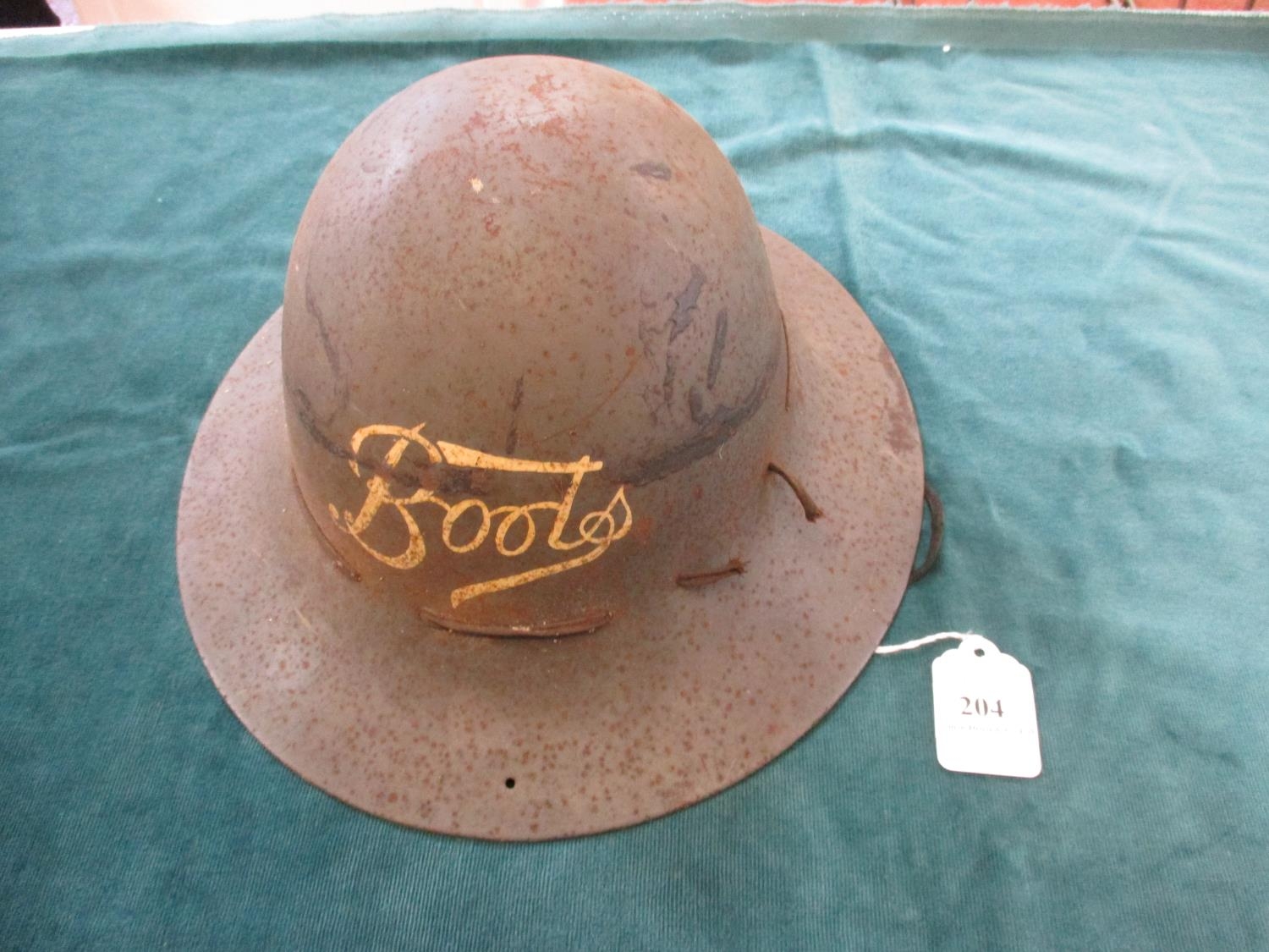 A rare World War II British Boots the Chemist Fire Guard helmet