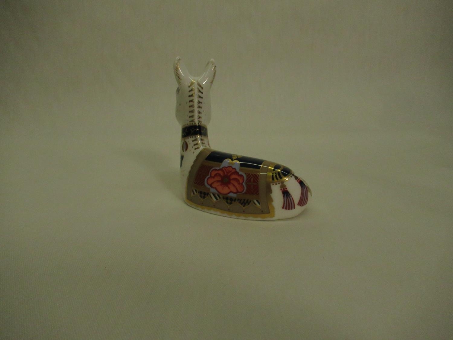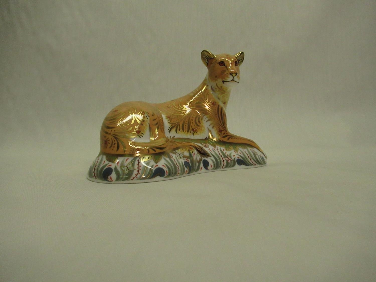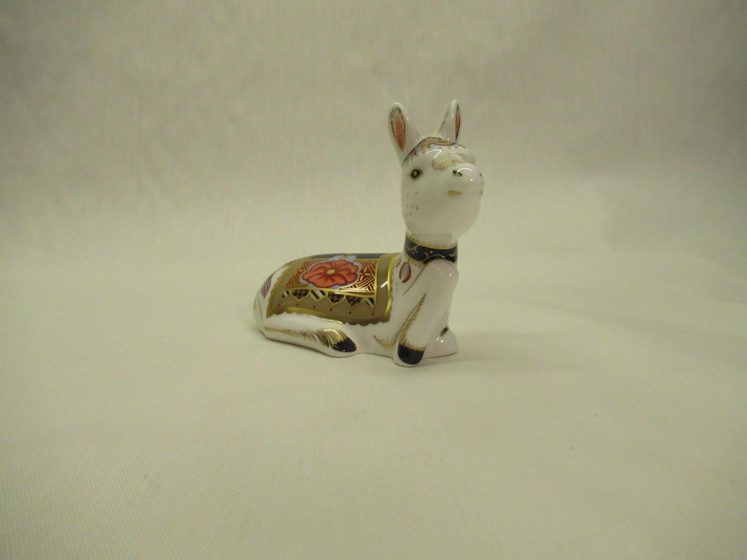 Royal Crown Derby Paperweights - Lioness L18cm and Donkey Foal H10cm, both with gold stoppers (2)