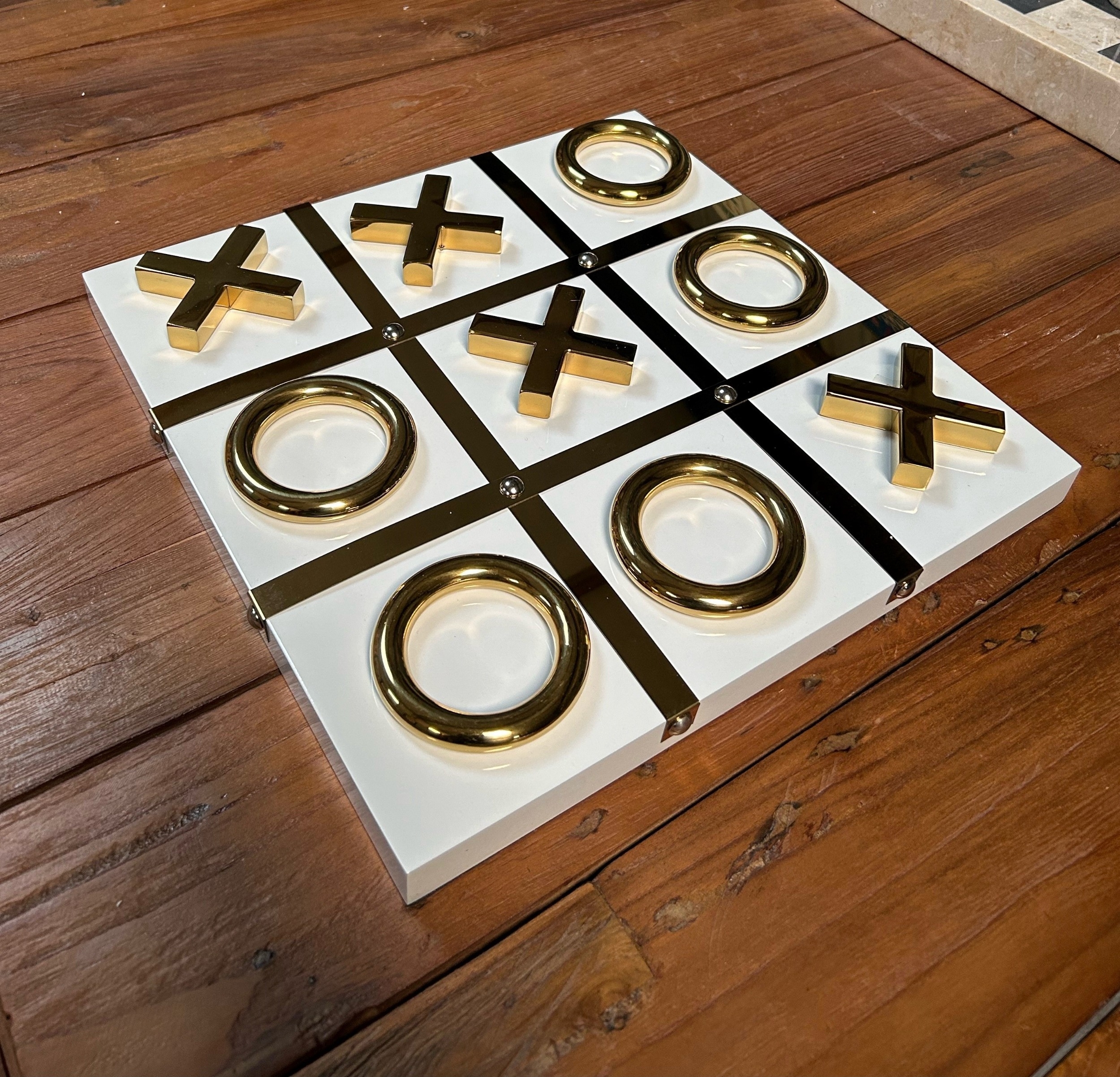 NEW BOXED QUALITY WHITE AND GOLD NOUGHTS AND CROSSES GAME SET