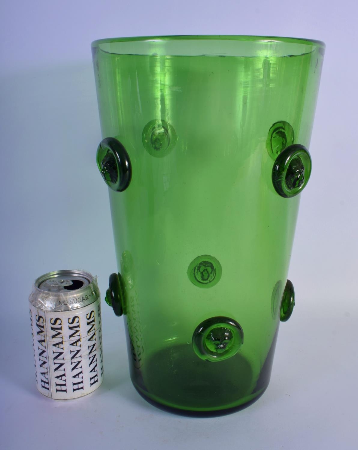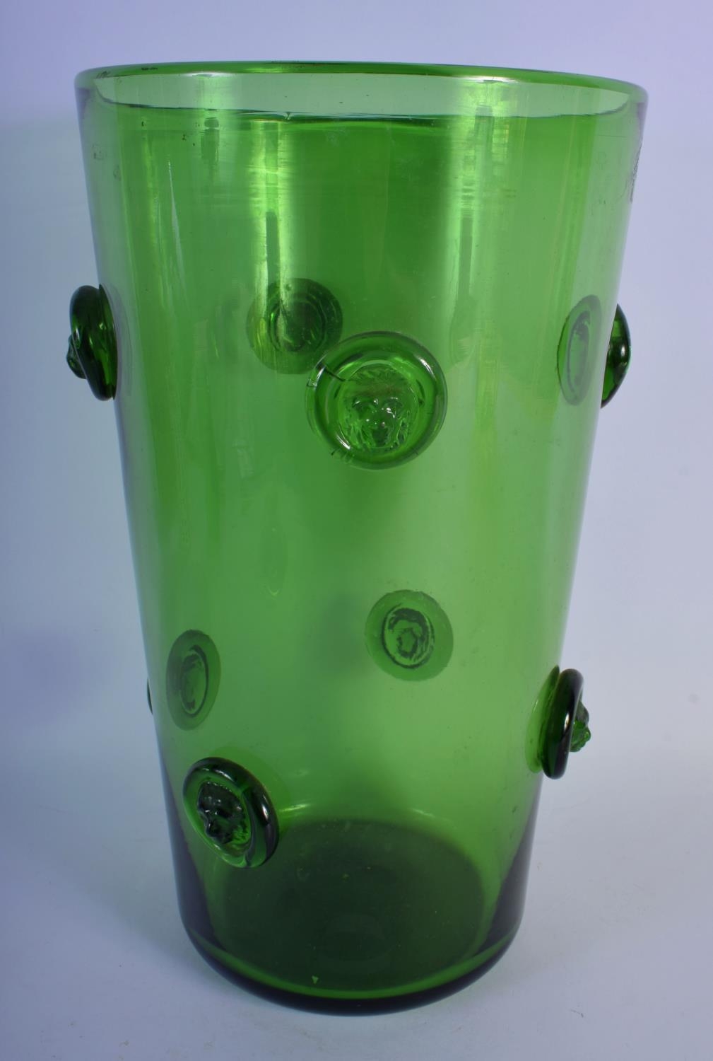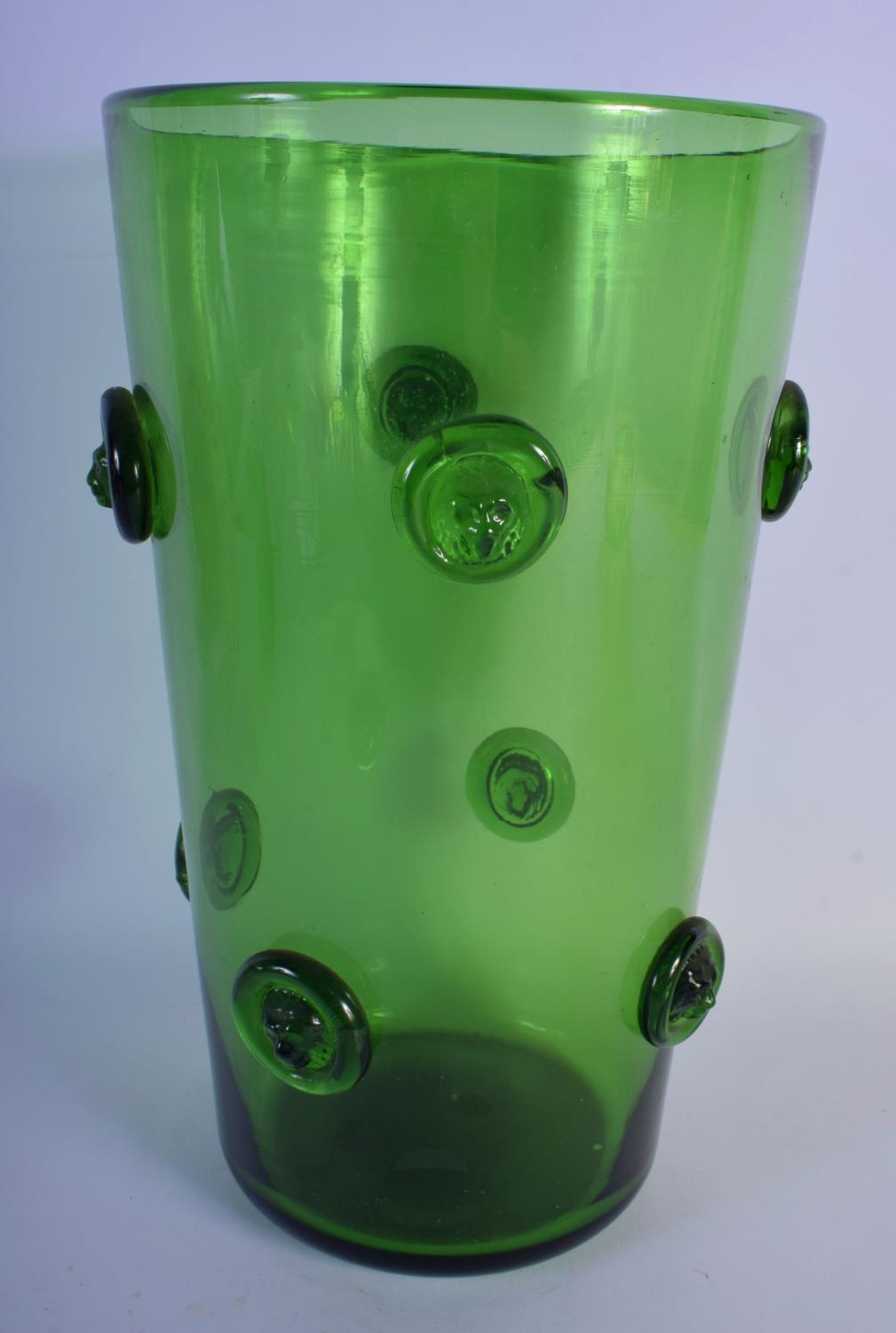 A LARGE BRITISH GREEN GLASS VASE possibly by Powell. 35 cm high.