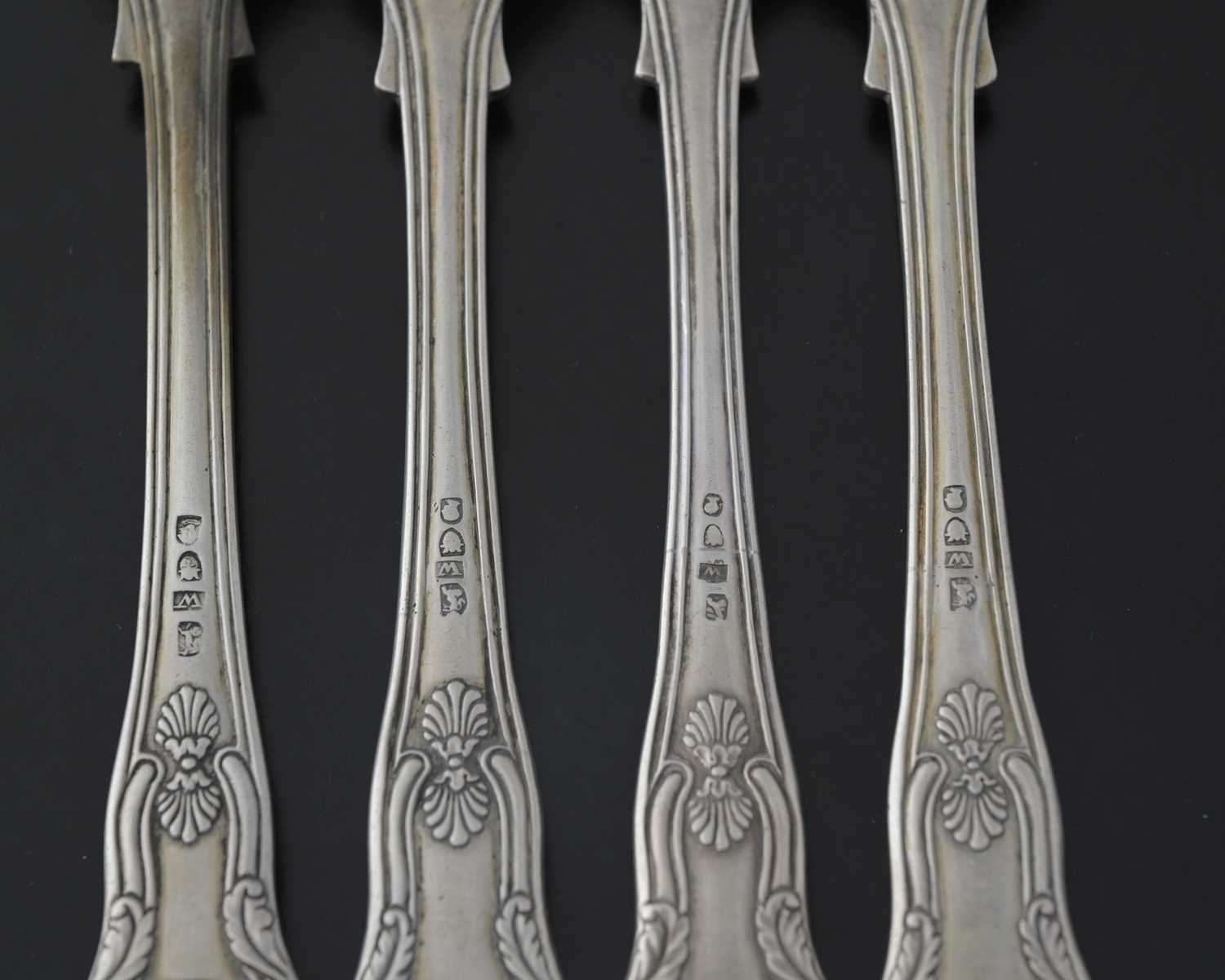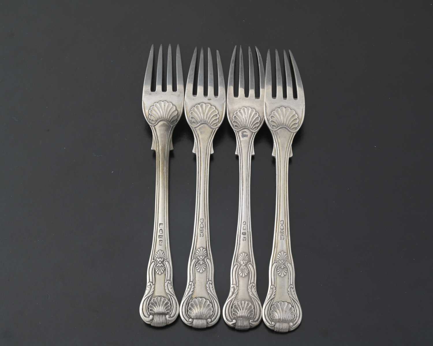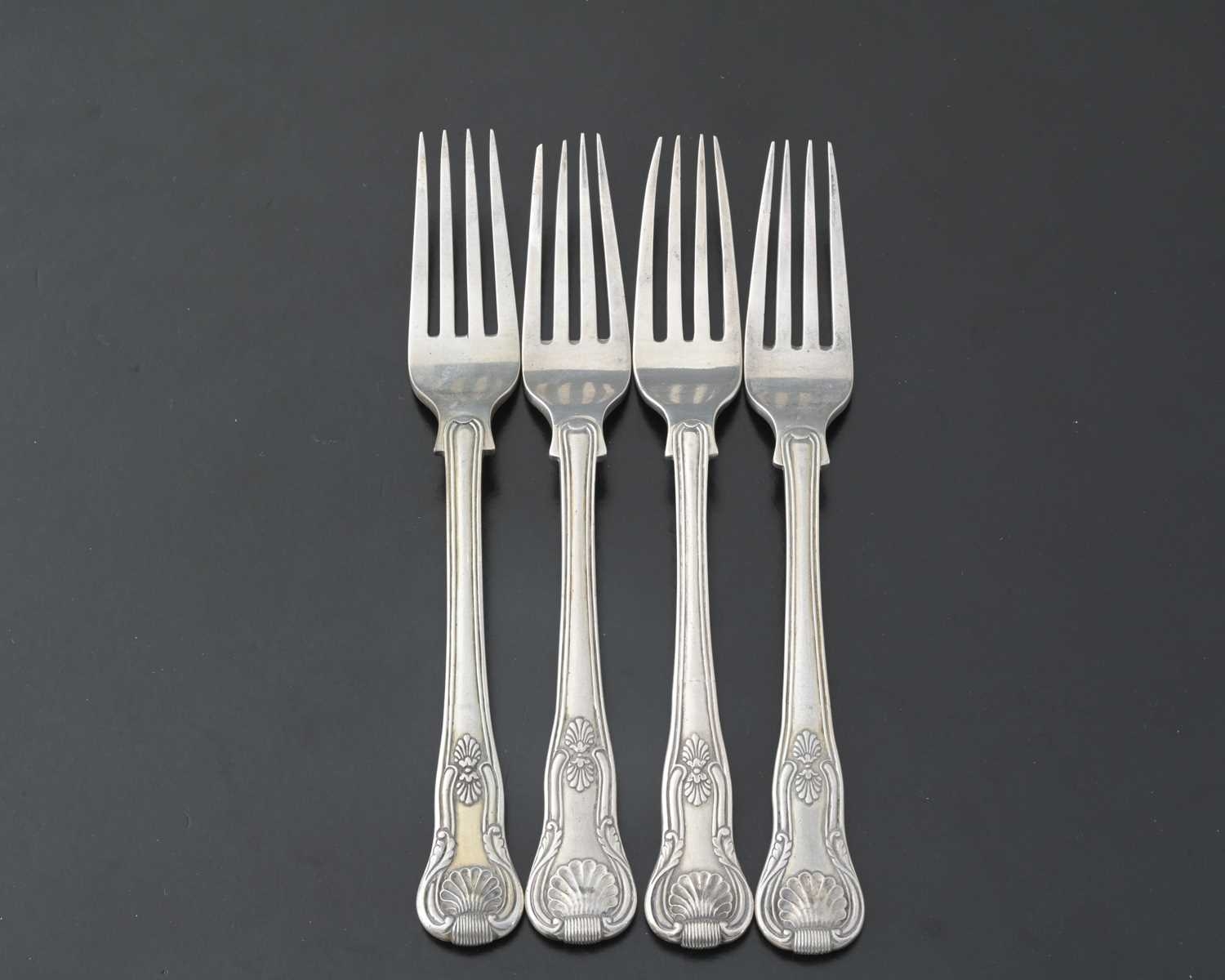 China, a set of four nineteenth-century Chinese export silver King's pattern main course forks, by Wong Shing, Canton c.1820-1860, length 20.8cm, combined weight 372g/11.96ozt approx (4)