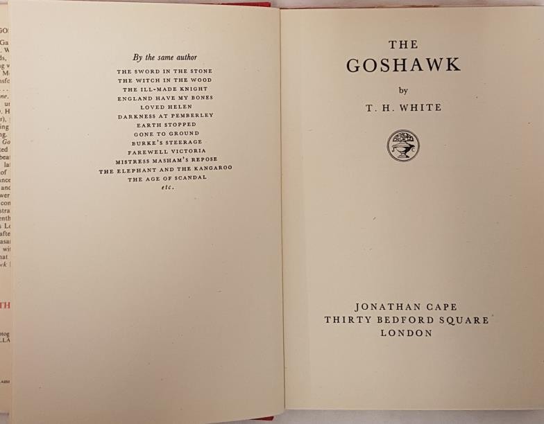 'The Goshawk' by T.H. White. First edition. Jonathan Cape, 1951.