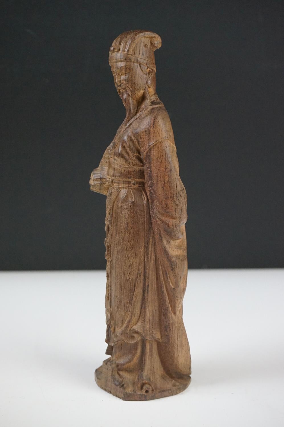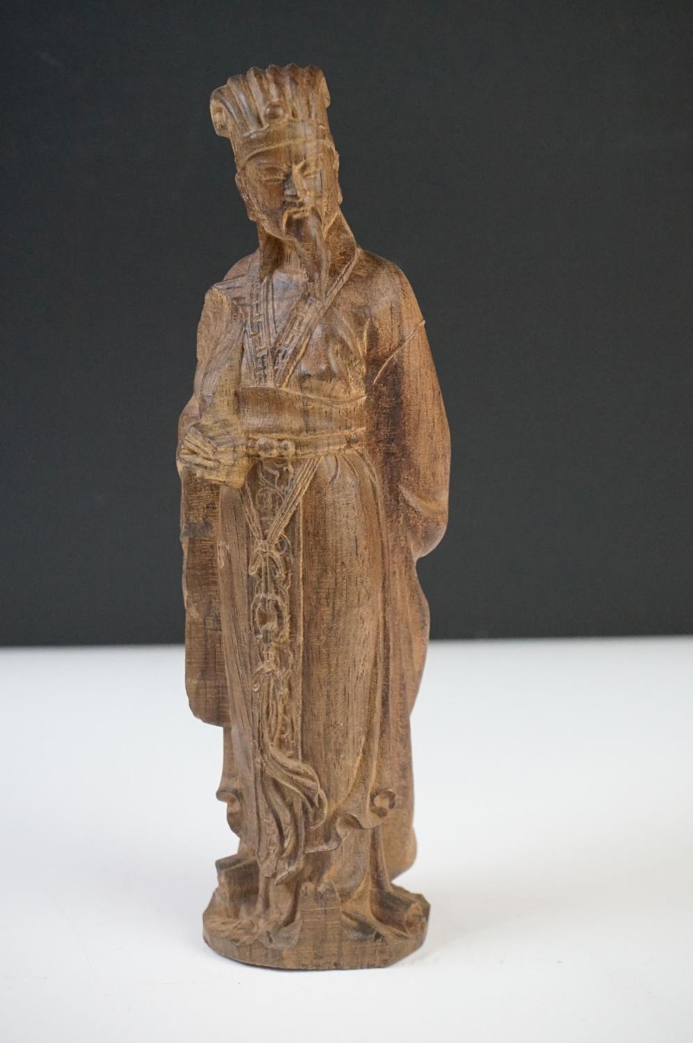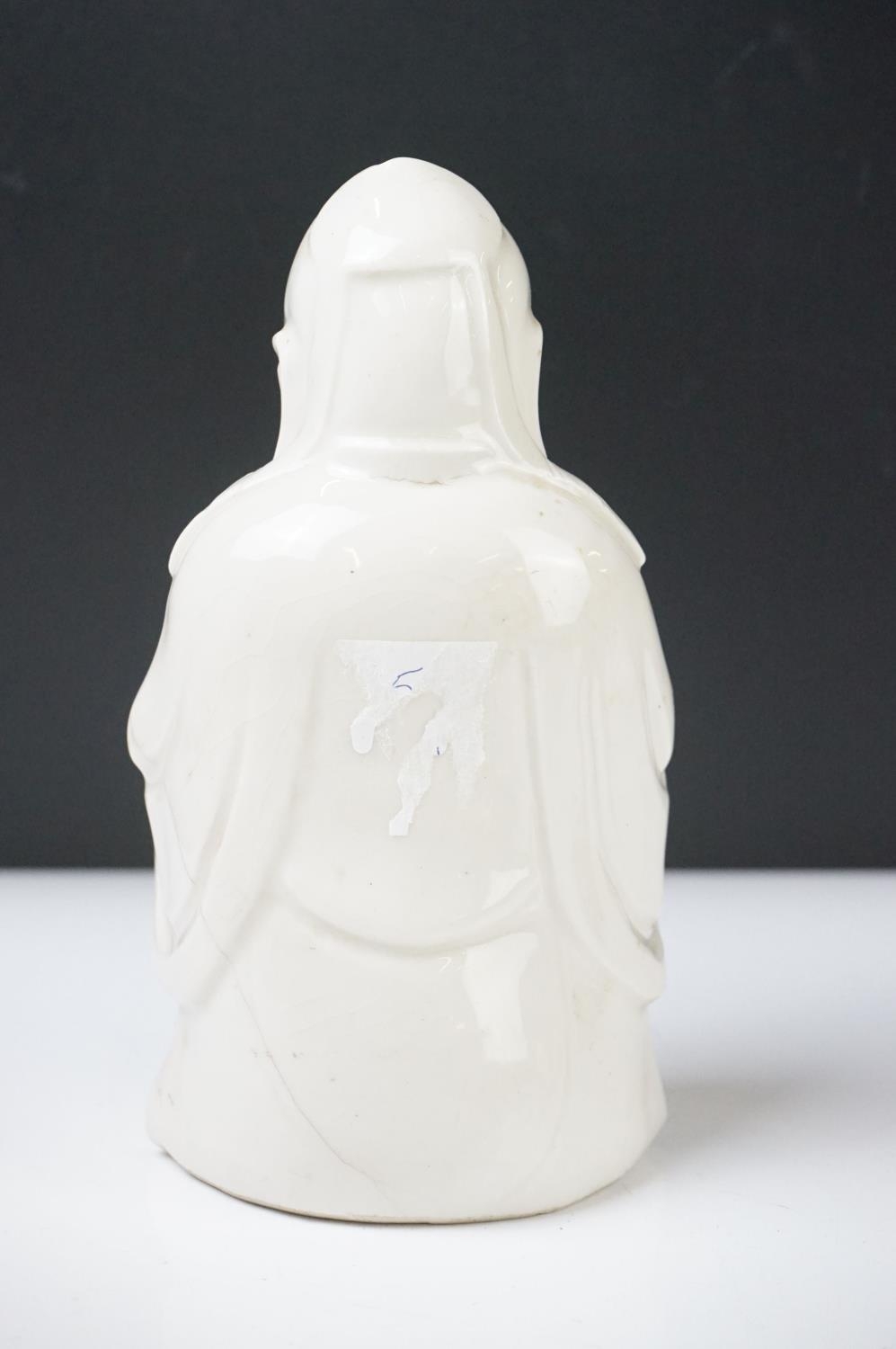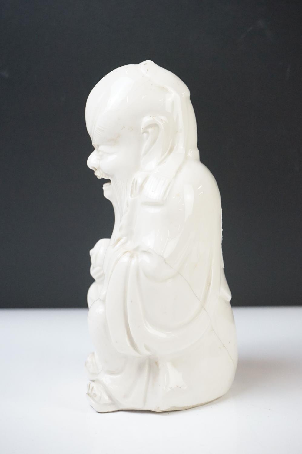 Chinese Blanc de Chine Ceramic Figure of a Seated Elder, 18cm high together with Hardwood Carved Chinese Figure, 21cm high