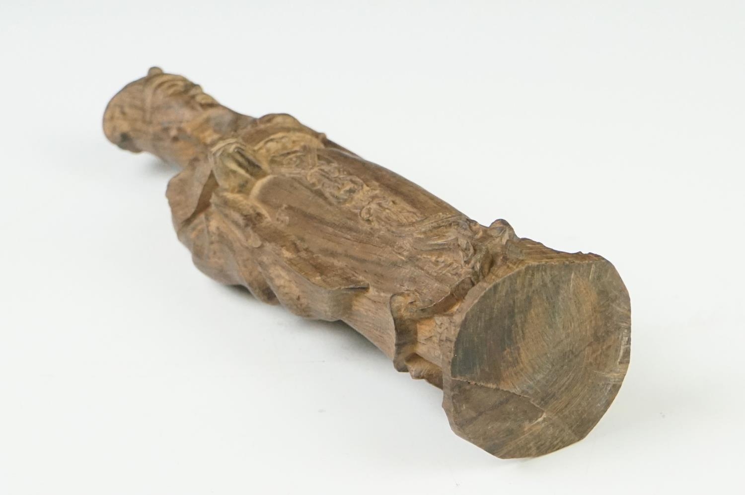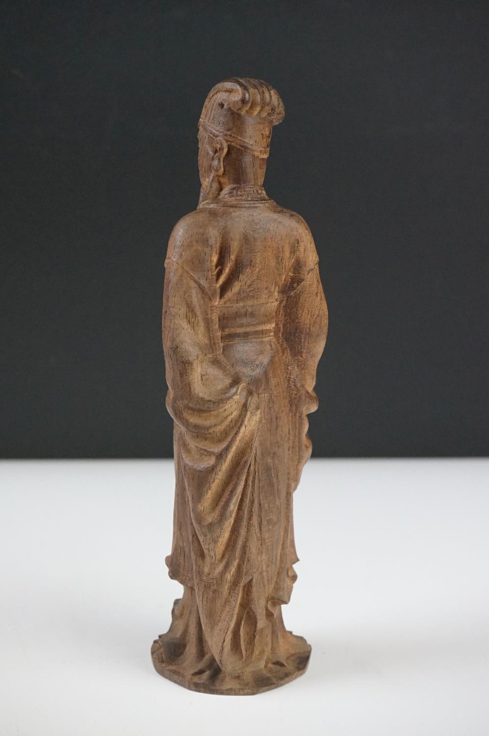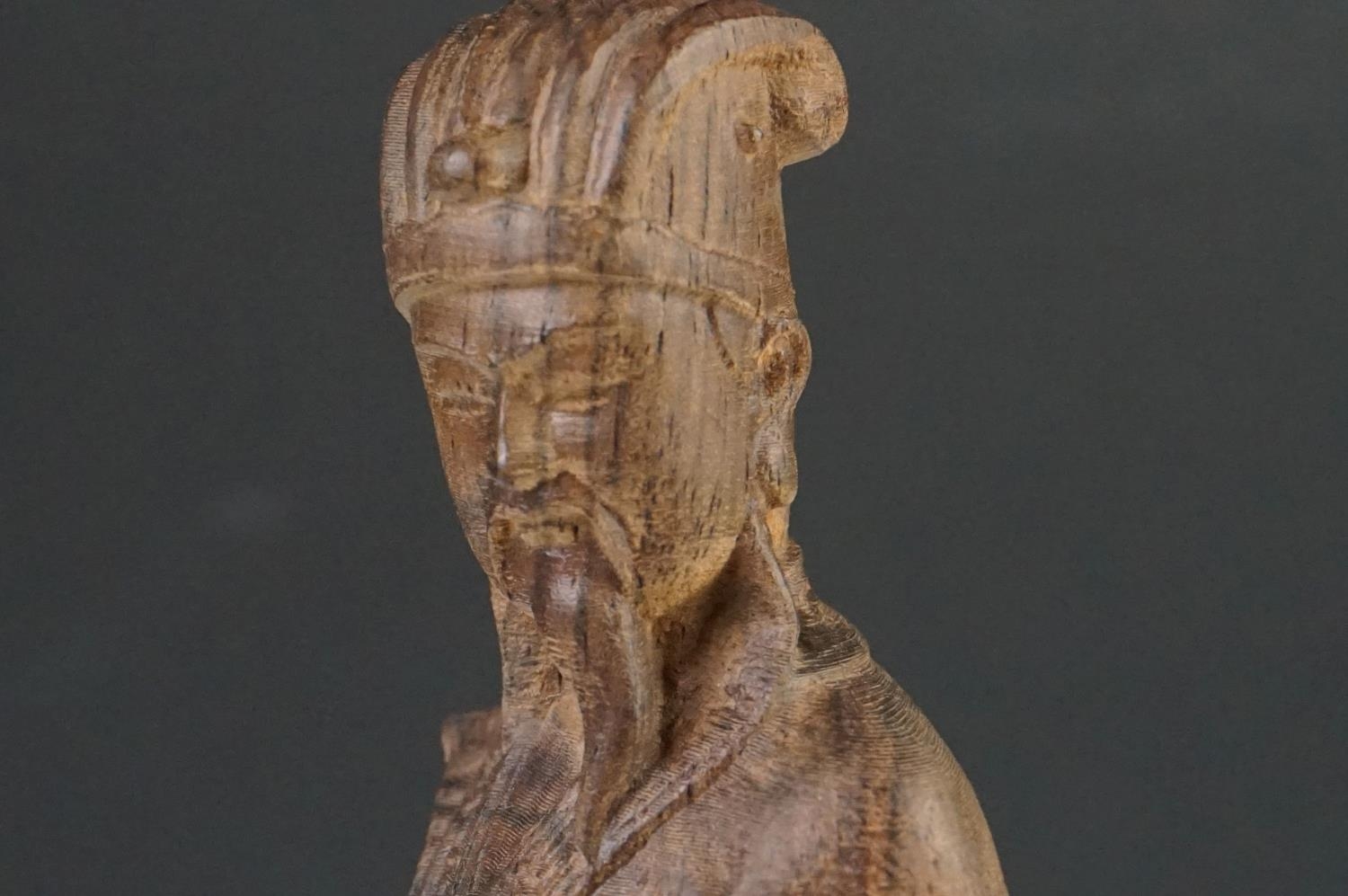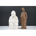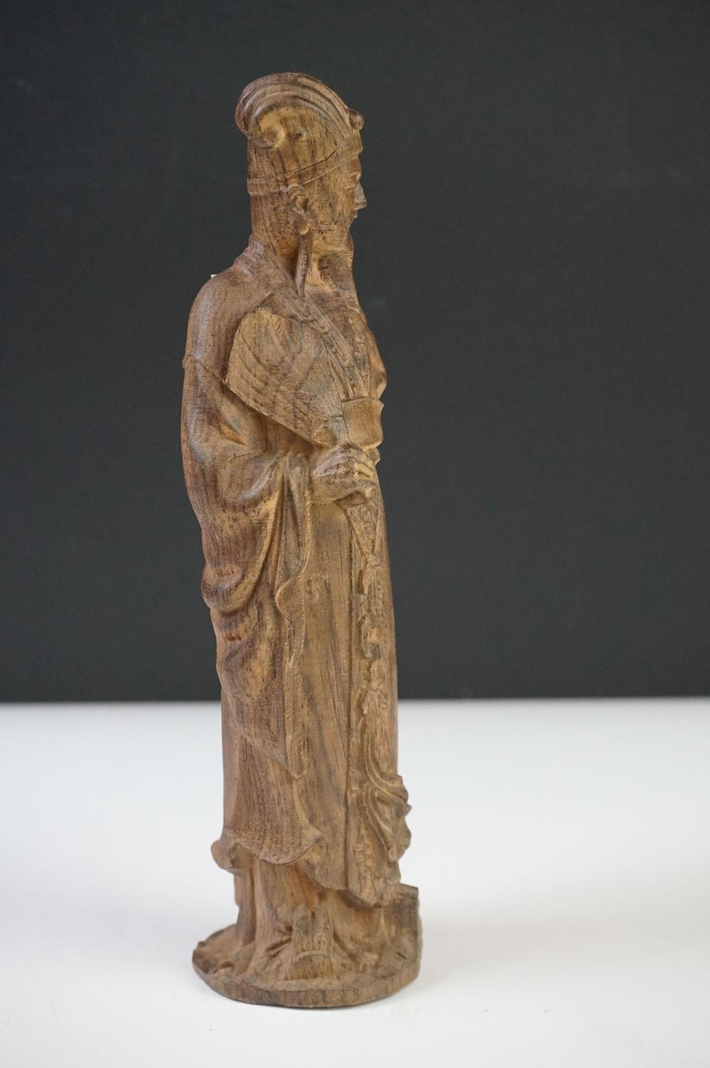 Chinese Blanc de Chine Ceramic Figure of a Seated Elder, 18cm high together with Hardwood Carved Chinese Figure, 21cm high