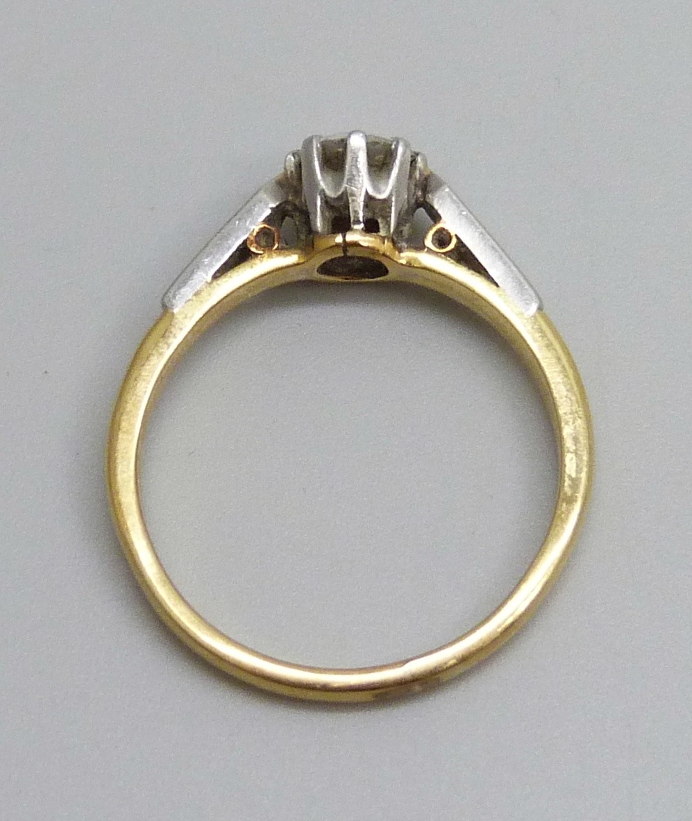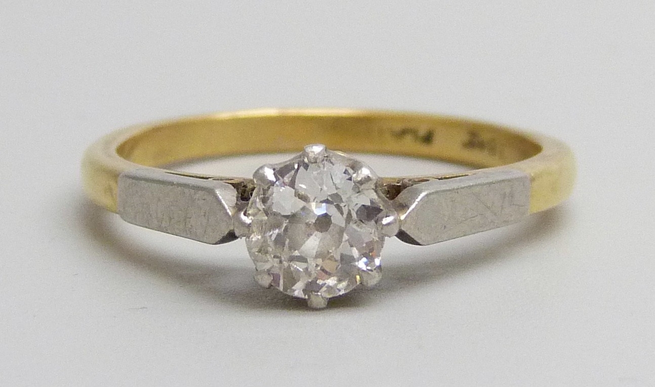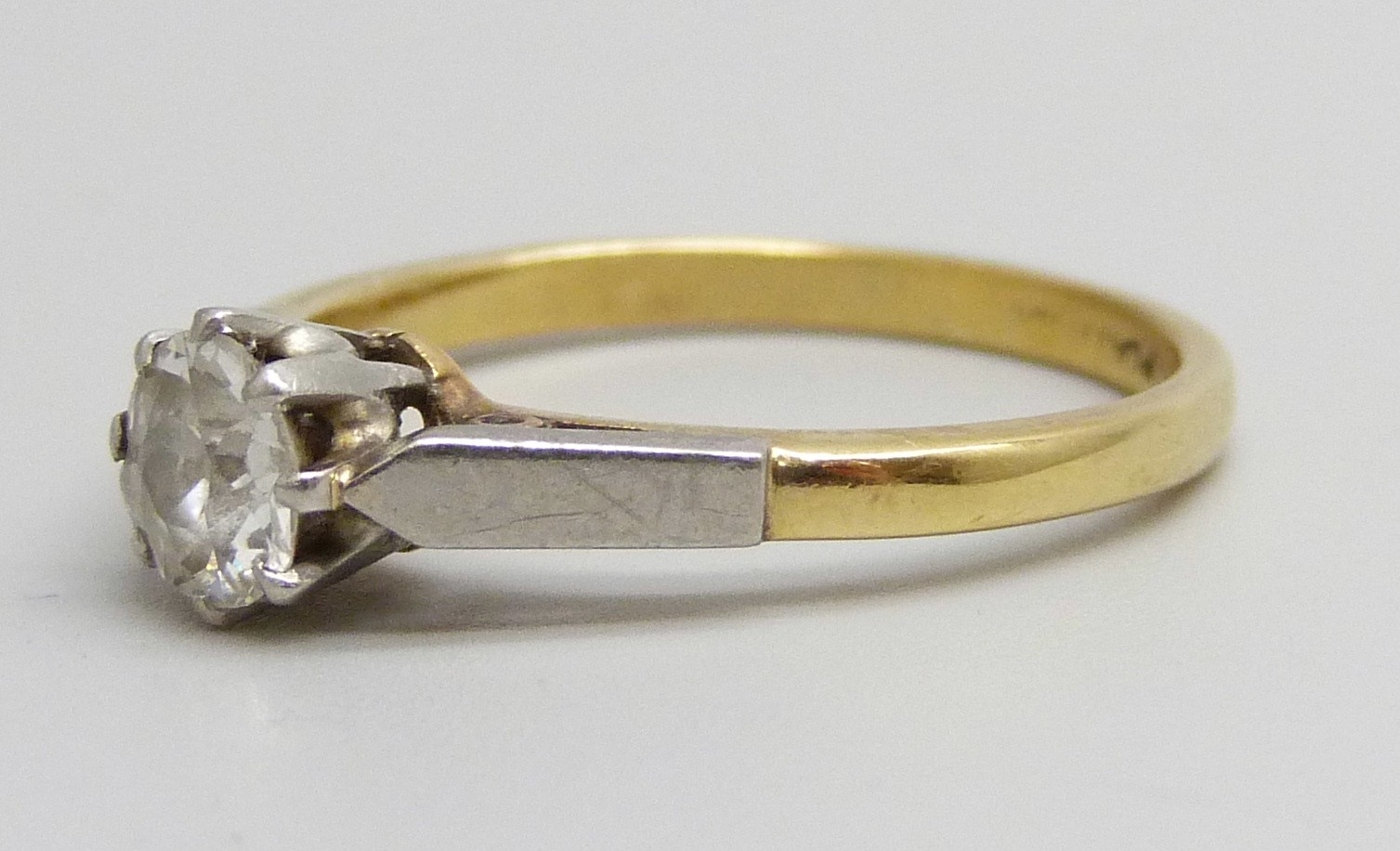 An 18ct gold and platinum diamond solitaire ring, 3.2g, N/O