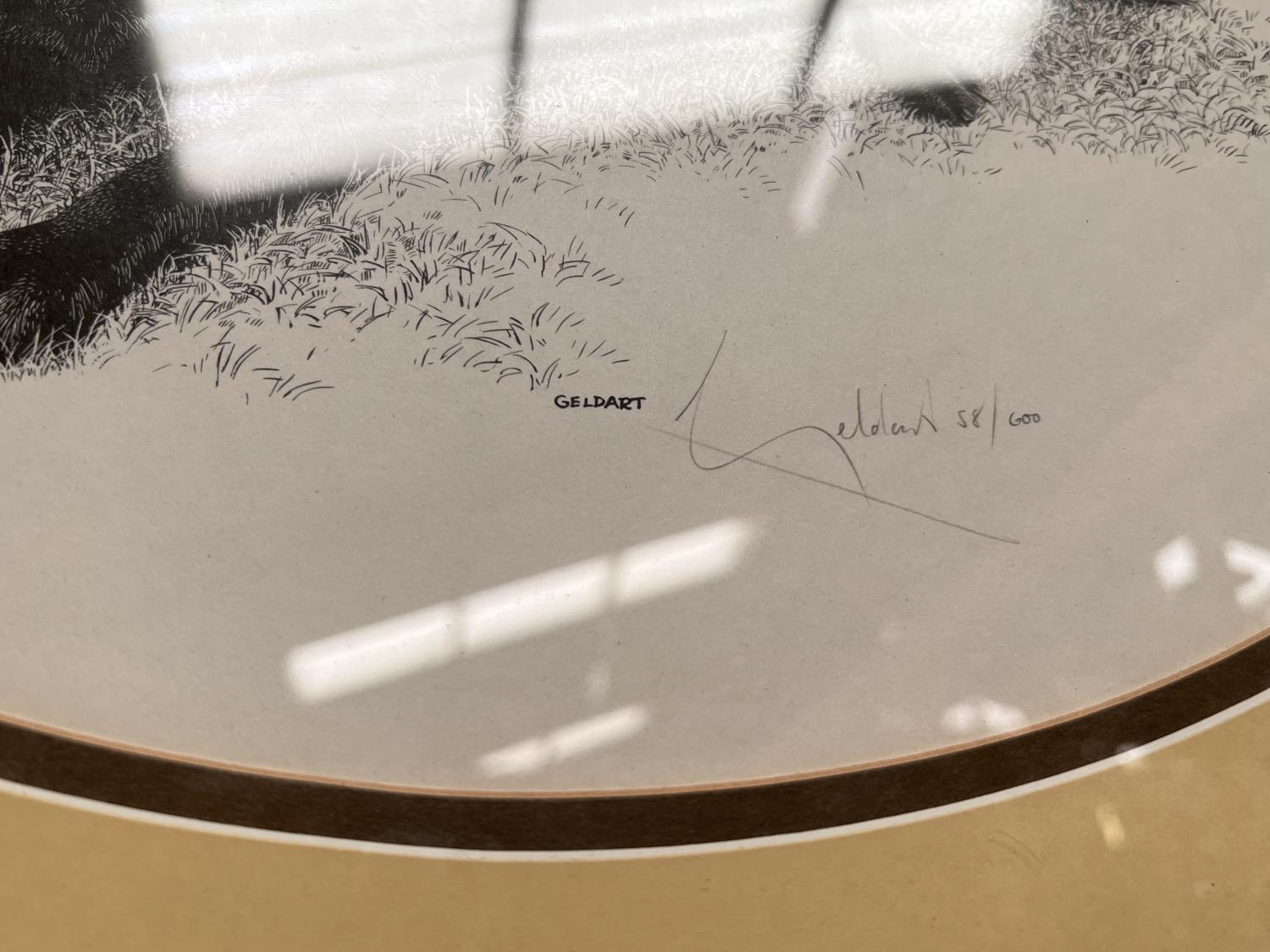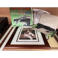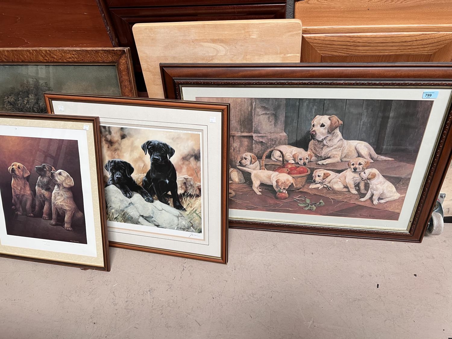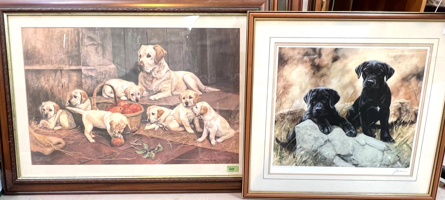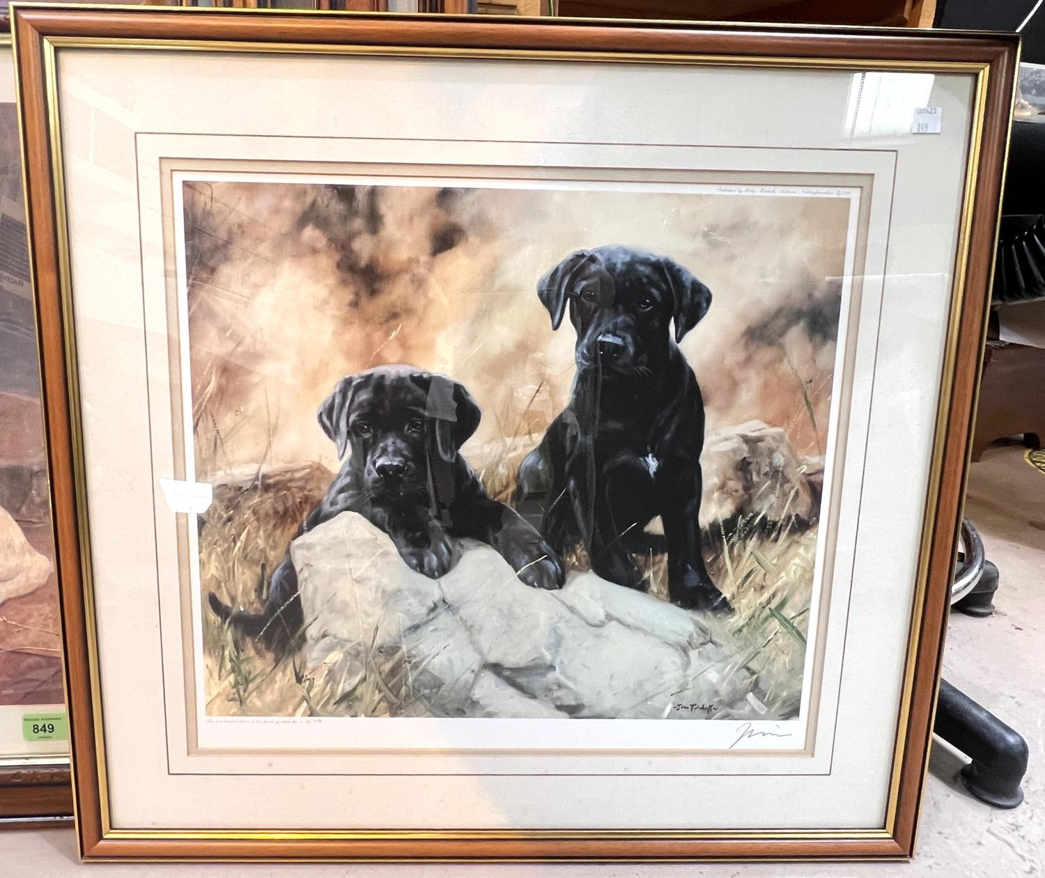 A selection of framed and glazed signed and some limited edition prints of various breeds of dogs, including by Geldart etc; A vintage Technigraph boxed TV sport console; a Montini Italian designer leather shoulder bag with studded decoration and outer bag