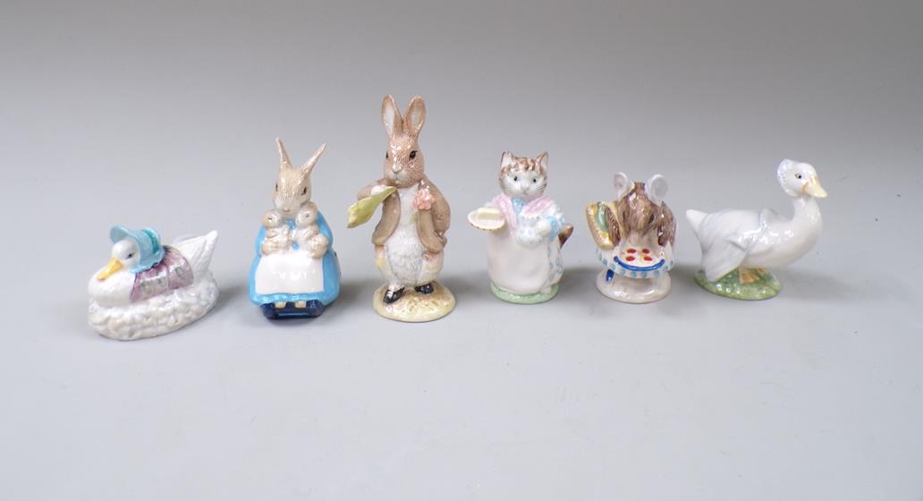 SIX BESWICK & ROYAL ALBERT BEATRIX POTTER FIGURES -LARGEST 13CM H